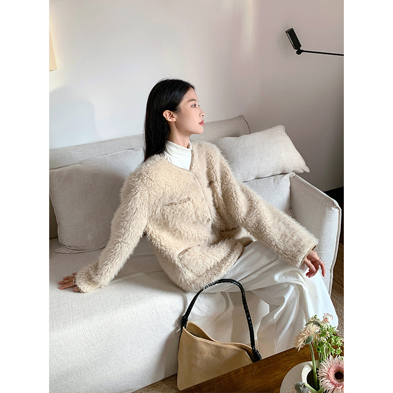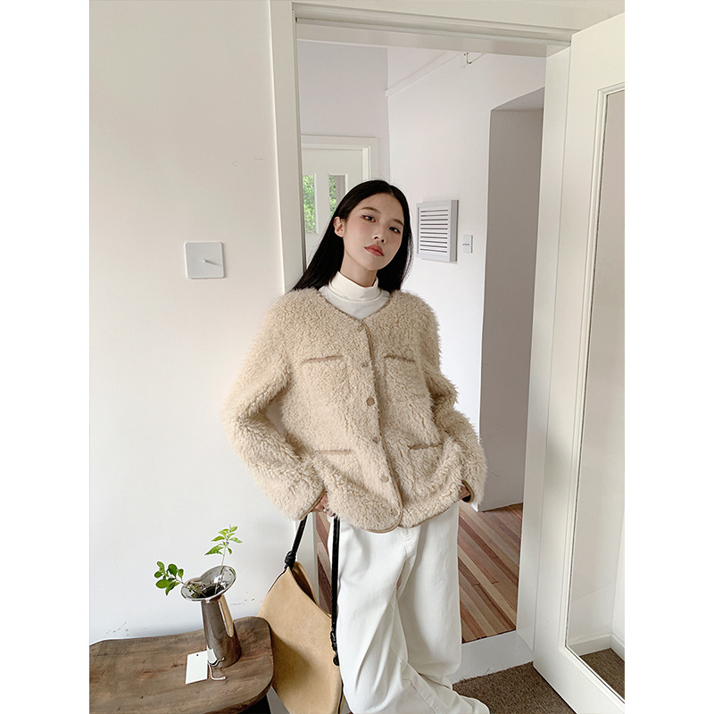 MISSLAN 2023 Winter new Korean style Chanel style lamb wool loose thickened fur coat for women