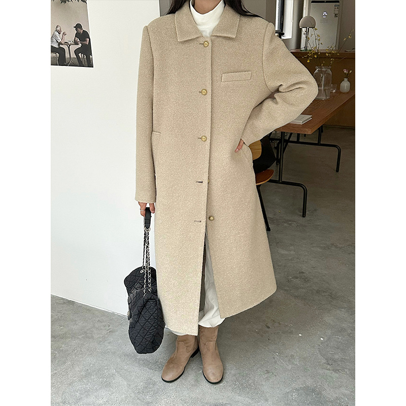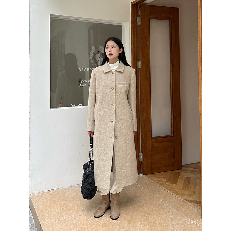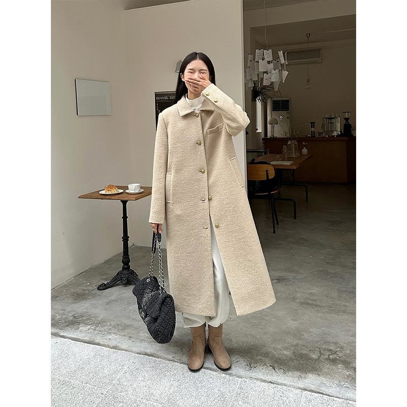 | nameOriginal | MISSLAN 2023 Winter New Ten or three lines retro simple temperament lapel over the knee long alpaca jacket |