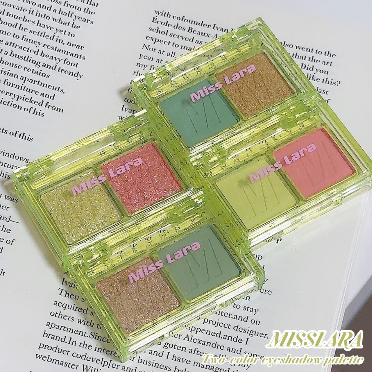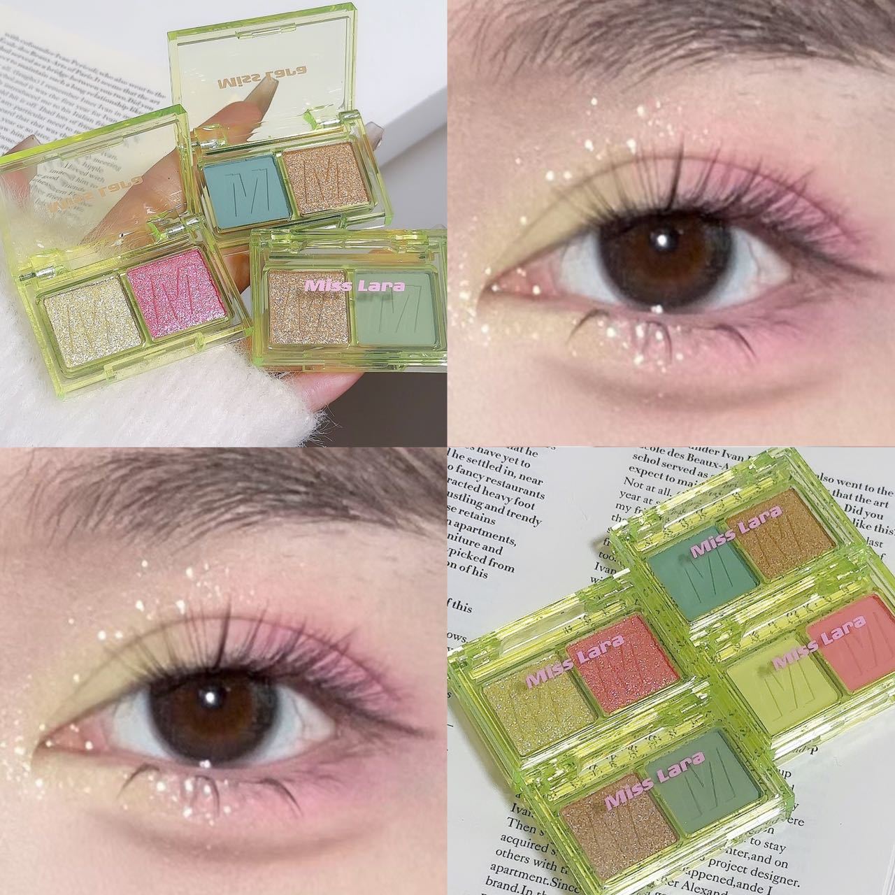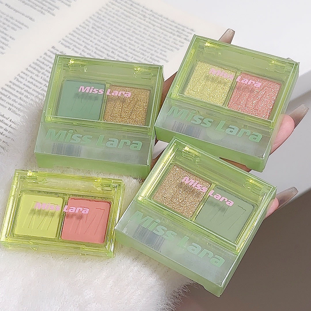 misslara New Double Color Eyeshadow Plate Summer Fresh Matte Pearlescent Eyeshadow Jasmine Green Tilt Fine Flash High Disc