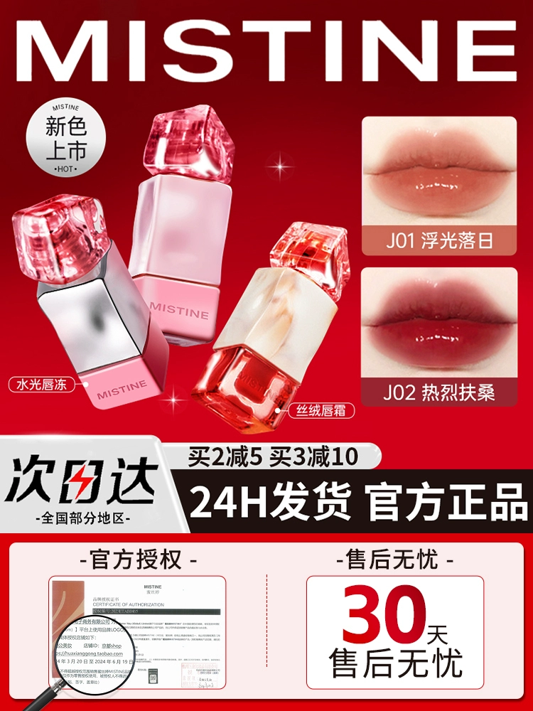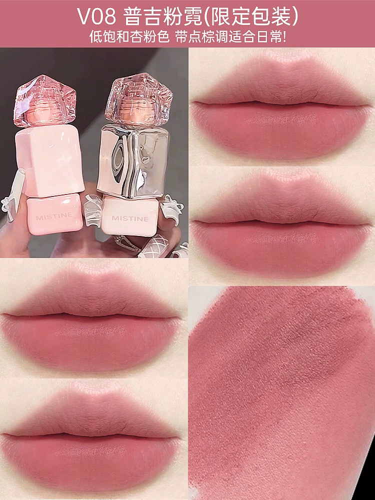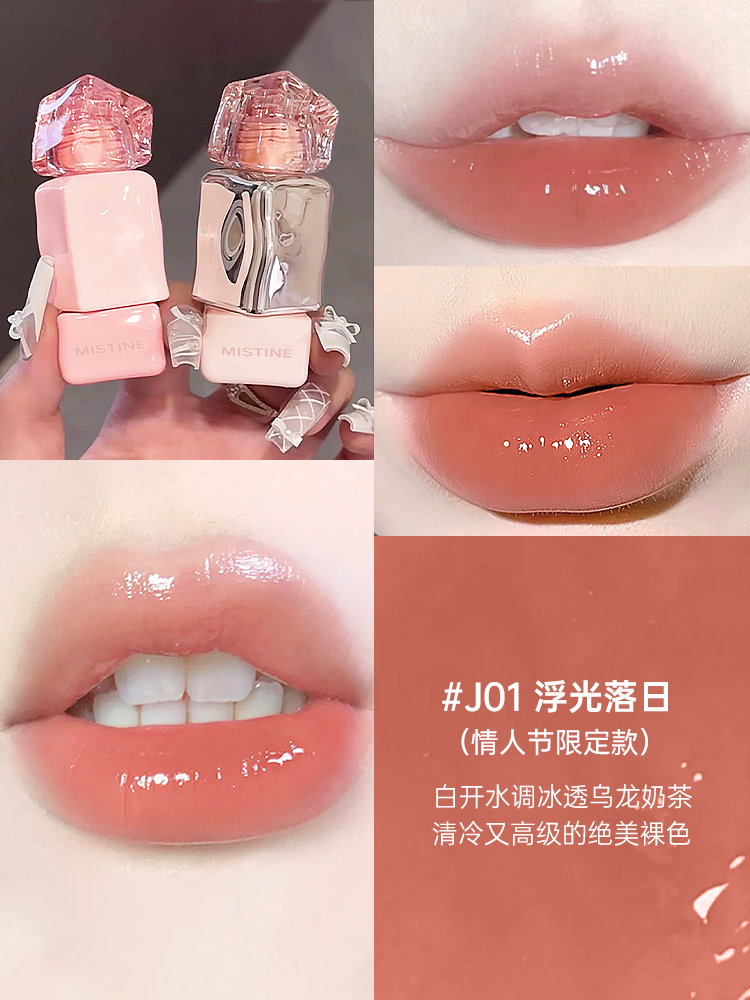 | nameOriginal | Mistine lip glaze lipstick j01 is not easy to stick to the cup and does not fade, mirror water gloss lip mud student Mistine |
