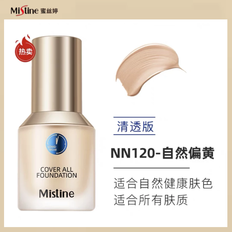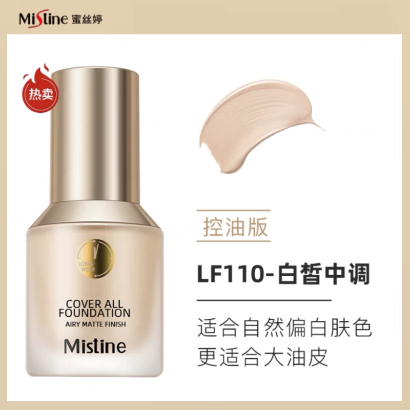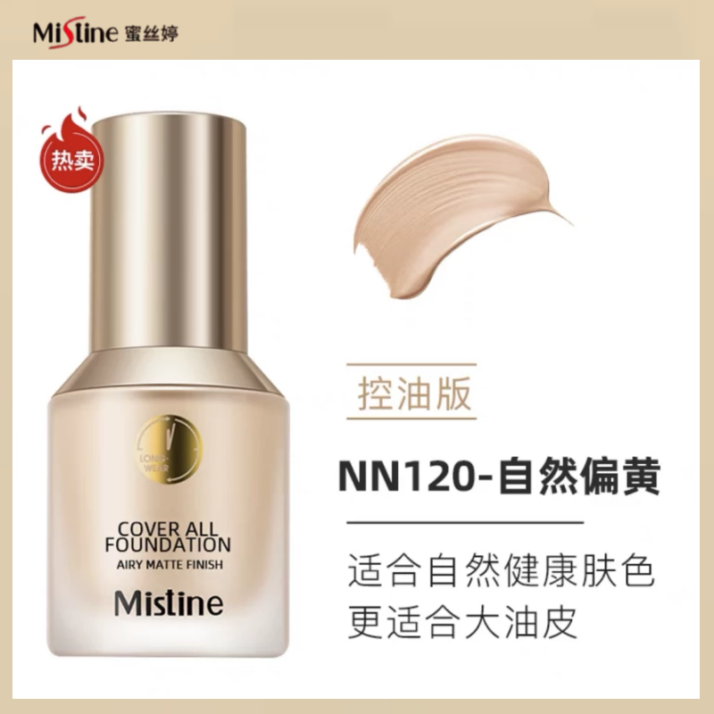 | nameOriginal | Mistine liquid foundation conceals blemishes and controls oil, long-lasting, non-removing makeup, nude makeup, dry oily skin, mixed oil gold shield blue shield |
