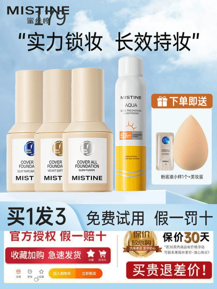 Mistine Mistine liquid foundation bb blue shield small gold shield long-lasting Mistine is not easy to take off makeup authentic official flagship