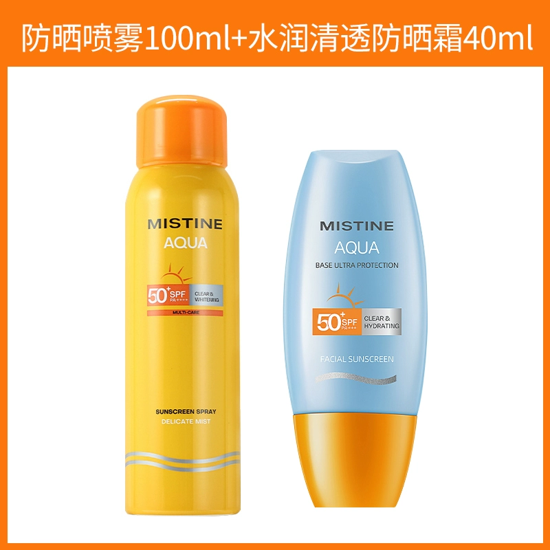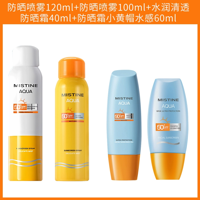 | nameOriginal | Mistine sunscreen spray cream refreshing whitening isolation women's face and body men's little yellow hat Mistine |