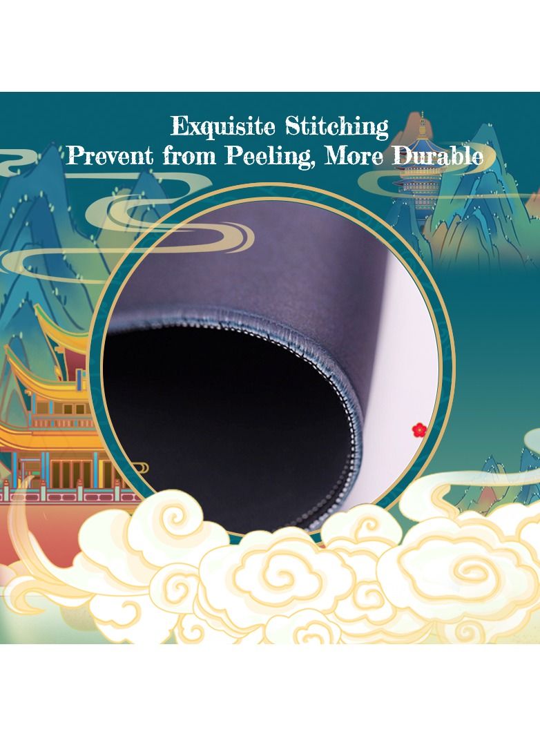 Extended Gaming Mouse Pad, MISTYBLUE Chinese Element Large Desk Pad Mat Non-Slip Rubber Base with Stitched Edges(35.4×15.7in), Waterproof Computer Keyboard Desk Pad for Work, Game, Office, Home
