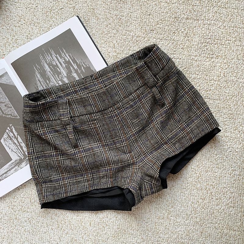 | nameOriginal | miu hot girl wool plaid high waist hip shorts |