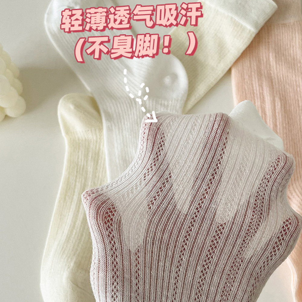| nameOriginal | Miu style white socks women's socks summer thin solid color boneless mesh breathable stockings summer piled socks |