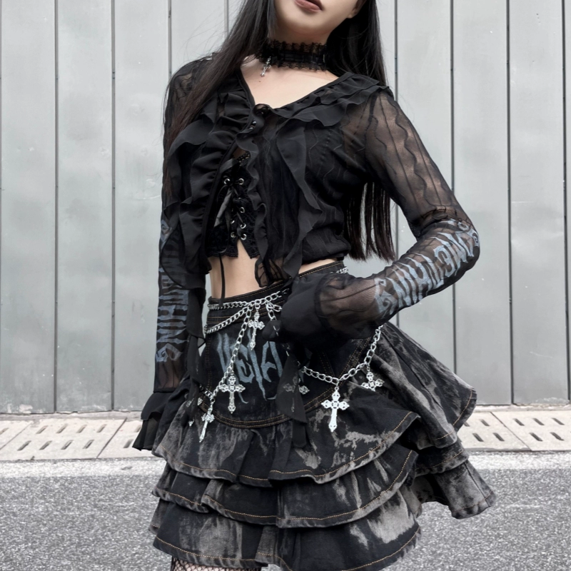 | nameOriginal | Miub V-neck niche rock long-sleeved chiffon shirt |