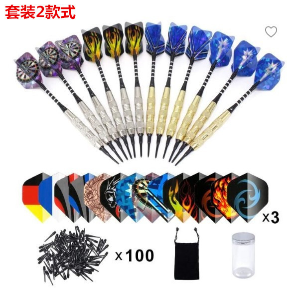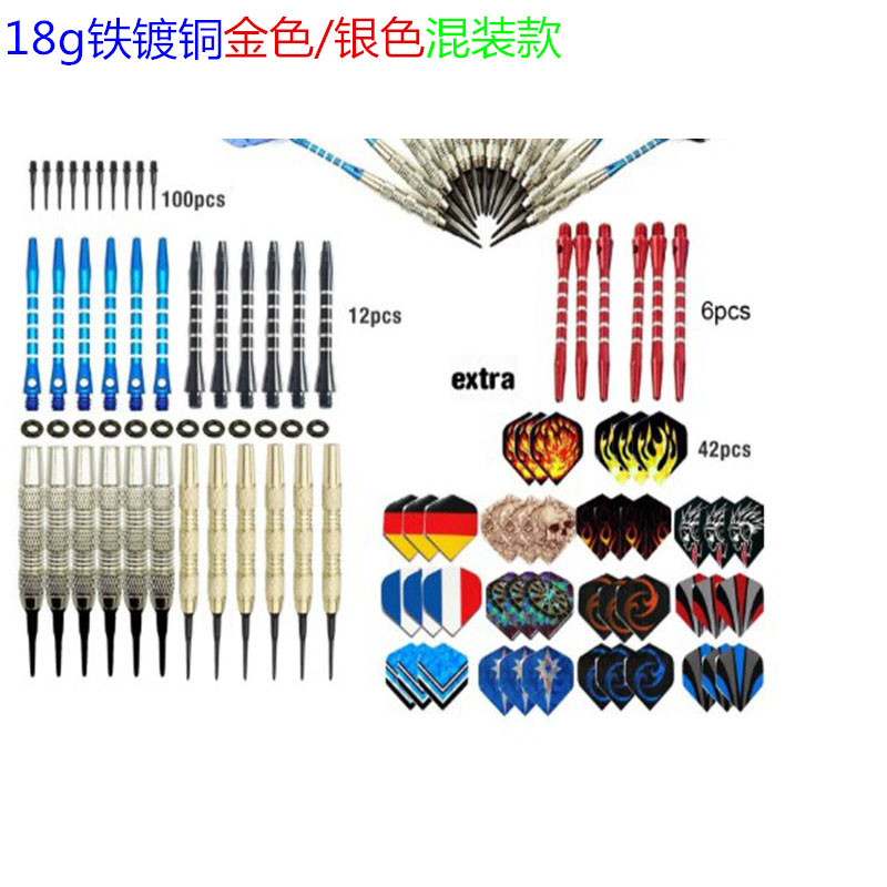 | nameOriginal | Mixed 18g iron copper-plated safety soft darts 12 darts +42 tail wings +100 Heads +6 aluminum rods for free |