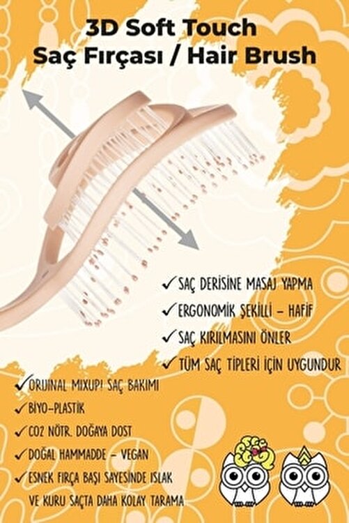 Original mıxup hair care Bio-plastic Co2 neutral. Nature friendly Natural raw materials – vegan Easier combing on wet and dry hair thanks to the flexible brush head Massage the scalp Ergonomically shaped- lightweight Prevents hair breakage Suitable for all hair types