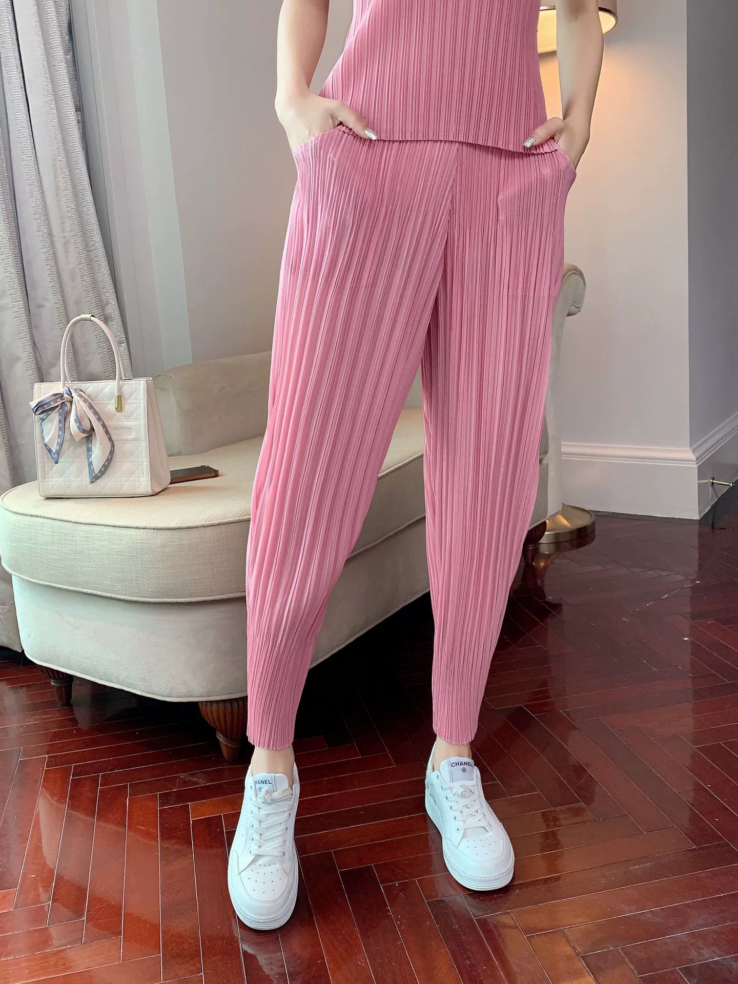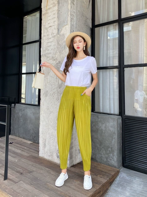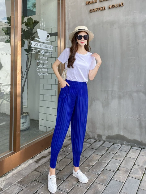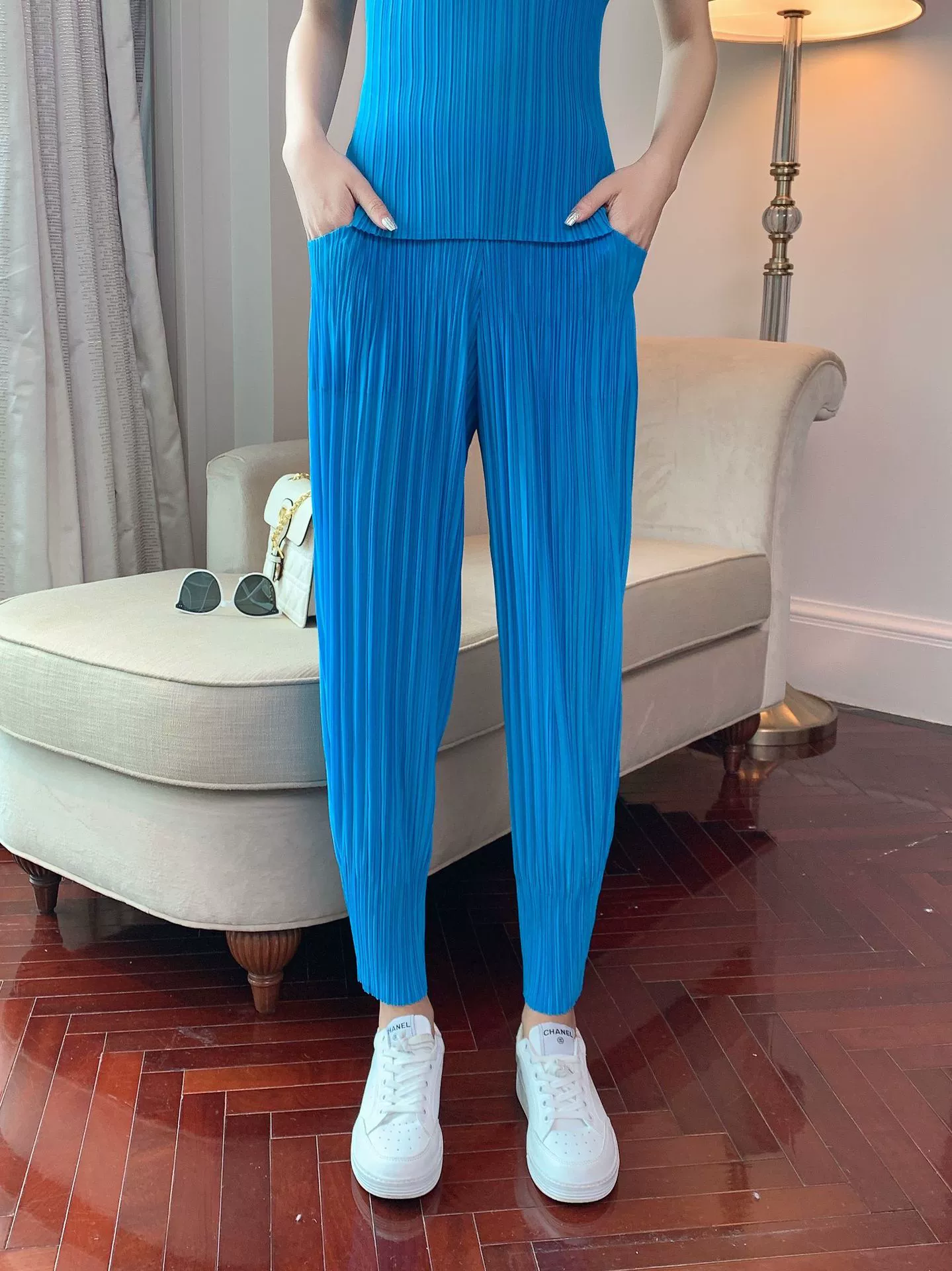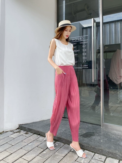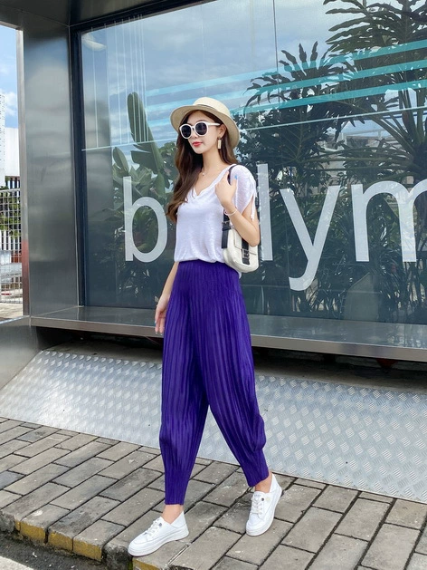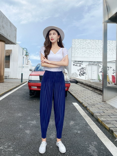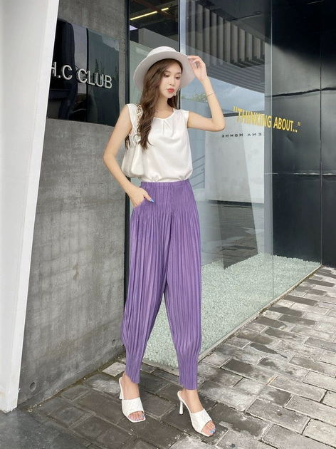 Miyake 2024 new summer pleated large size loose casual harem pants for women slimming and thin nine-point bloomers