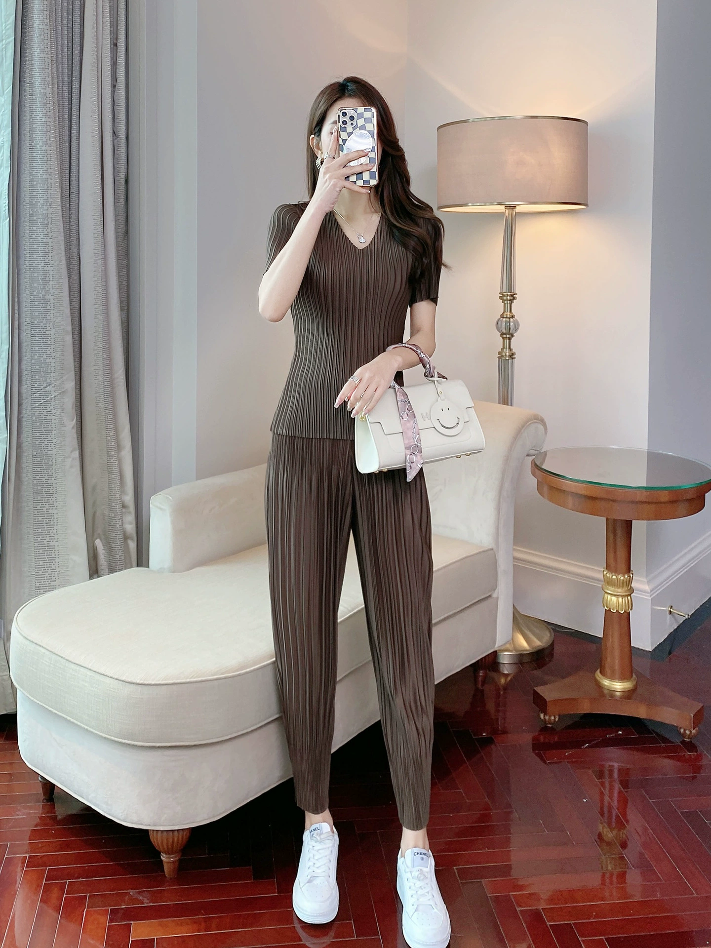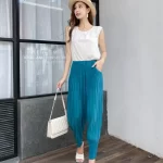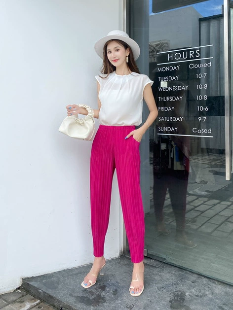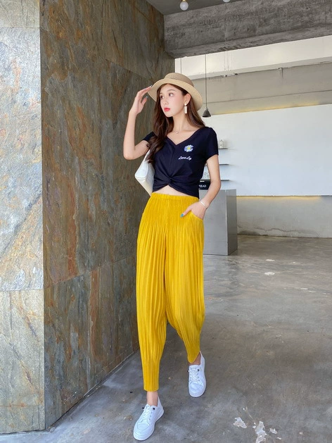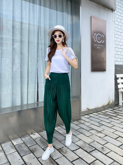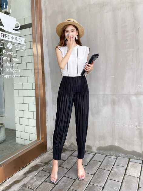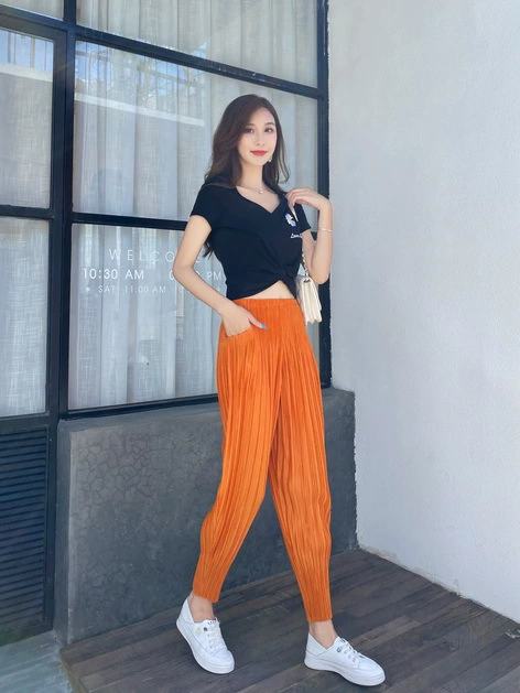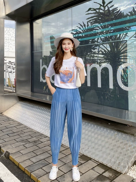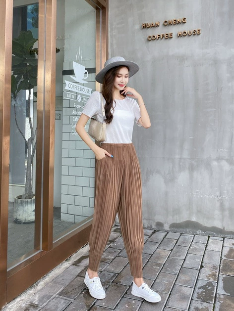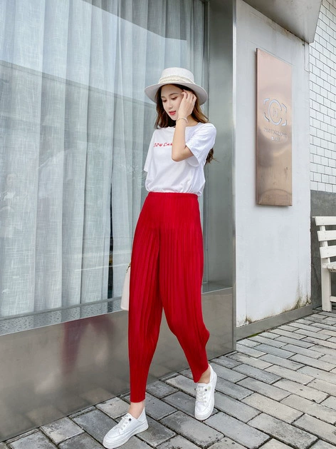 Miyake 2024 new summer pleated large size loose casual harem pants for women slimming and thin nine-point bloomers