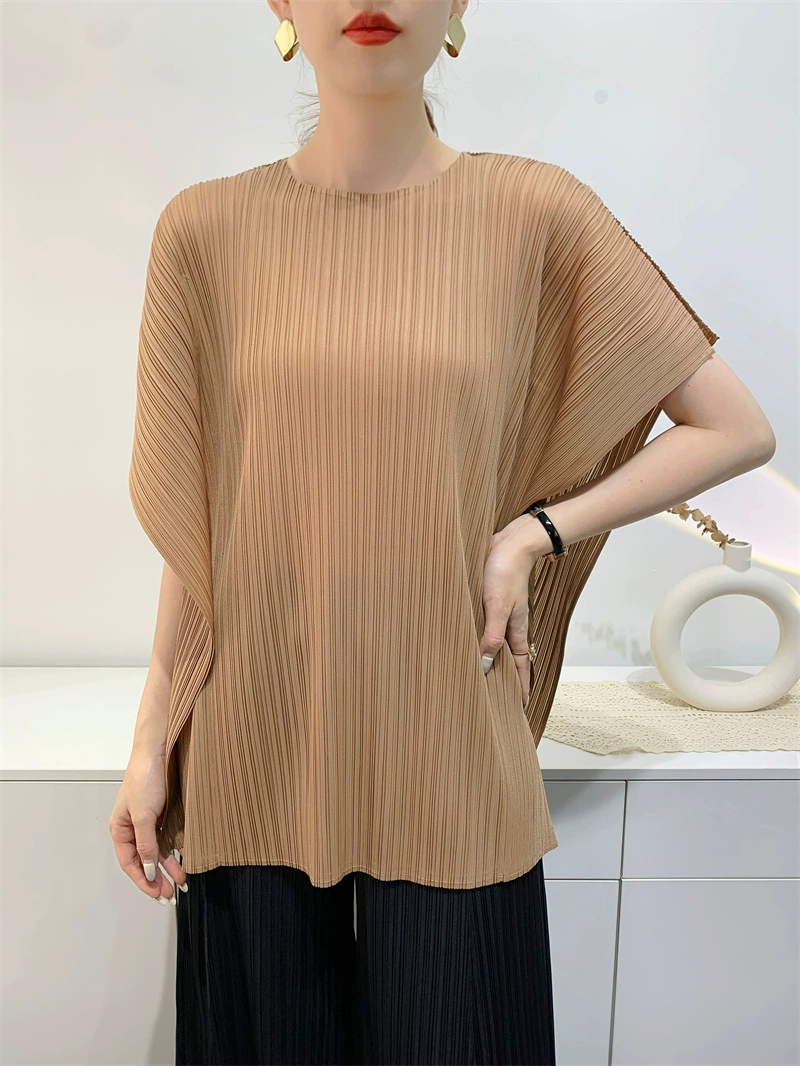 | nameOriginal | Miyake Design Pleated Top Women's 2024 Summer Large Size Loose Slim Casual Slit Round Neck Short Sleeve T-Shirt |