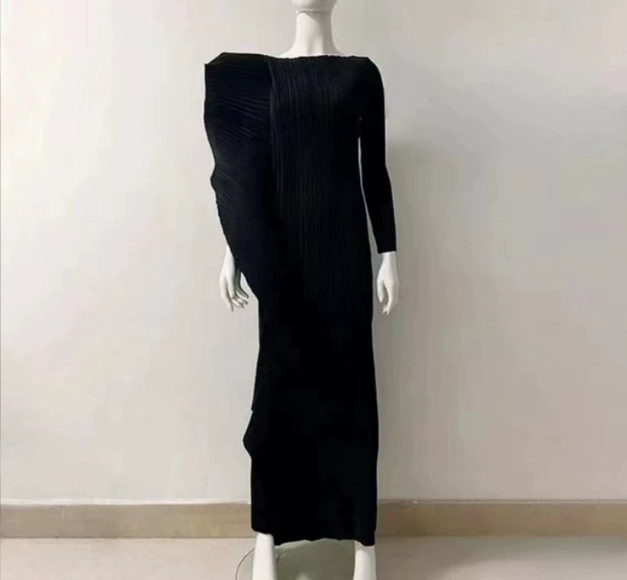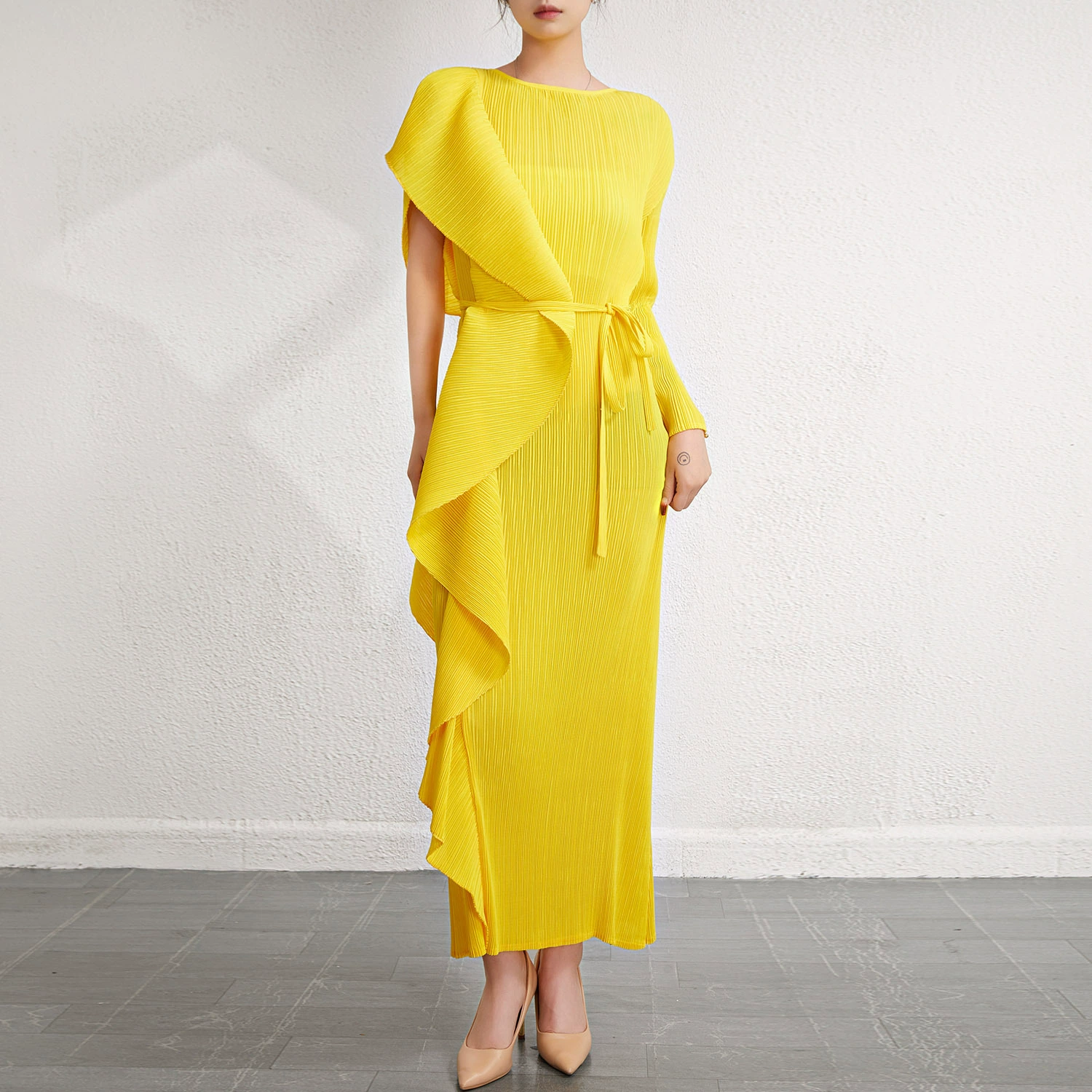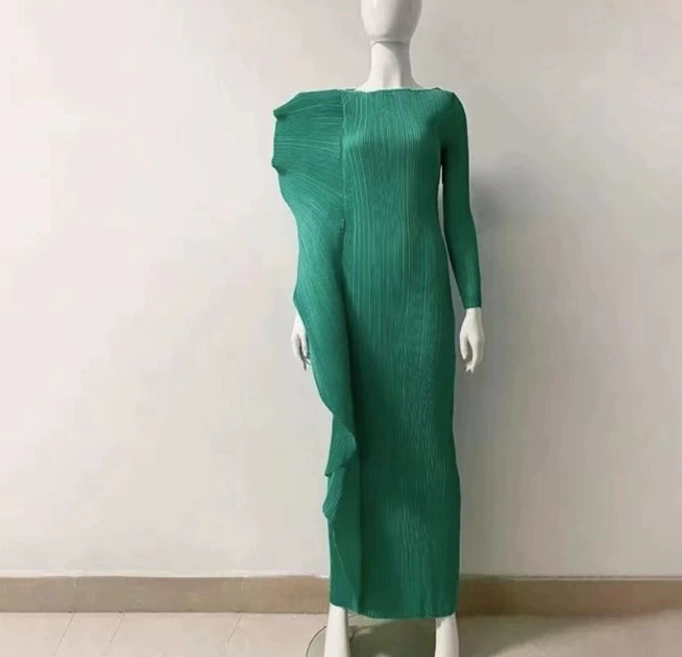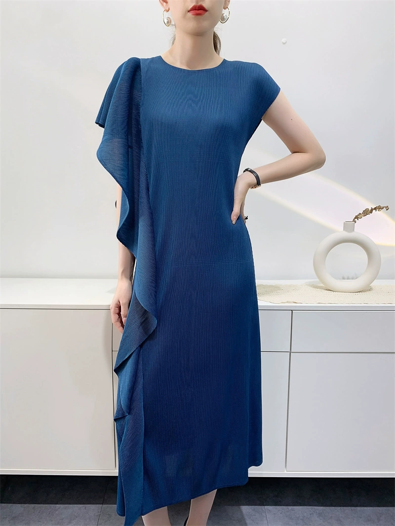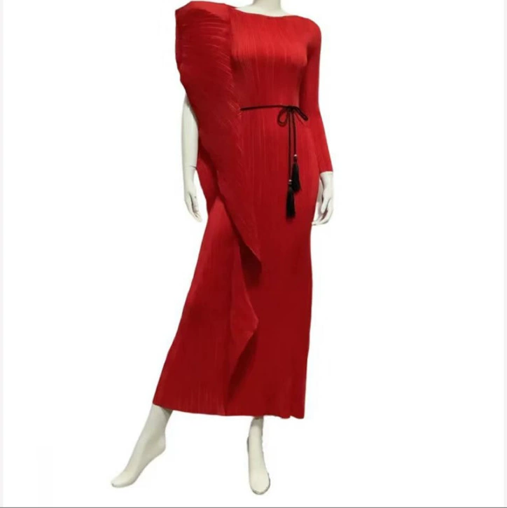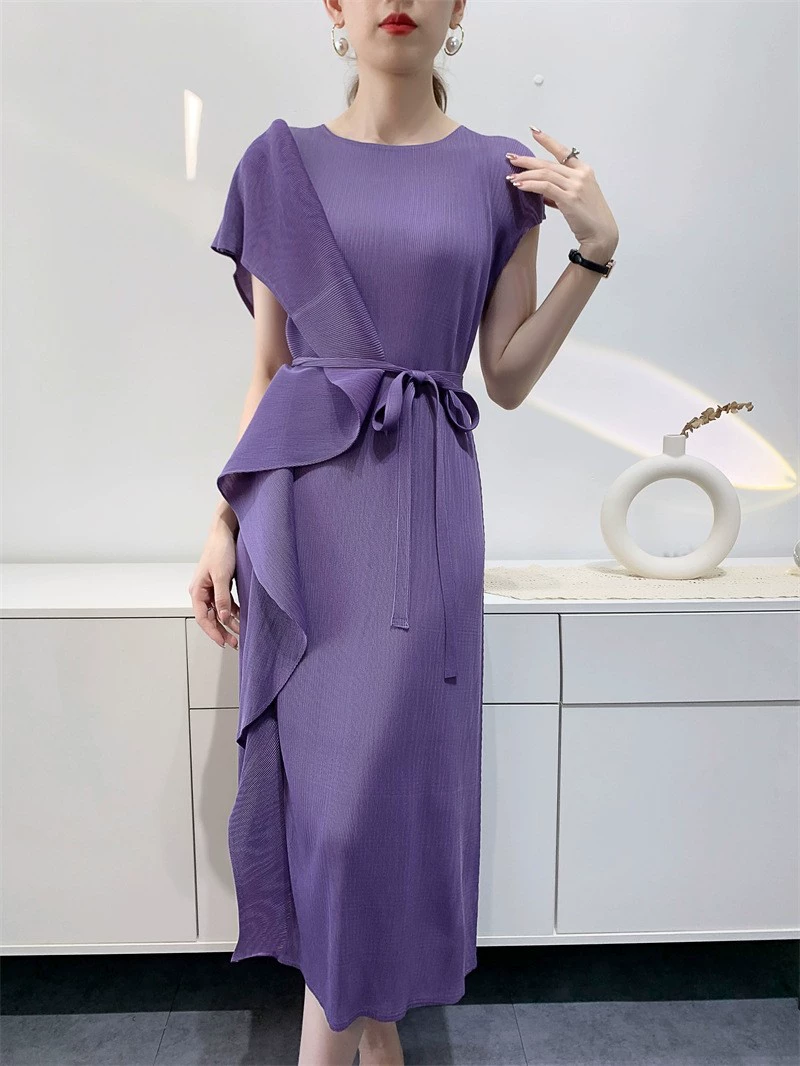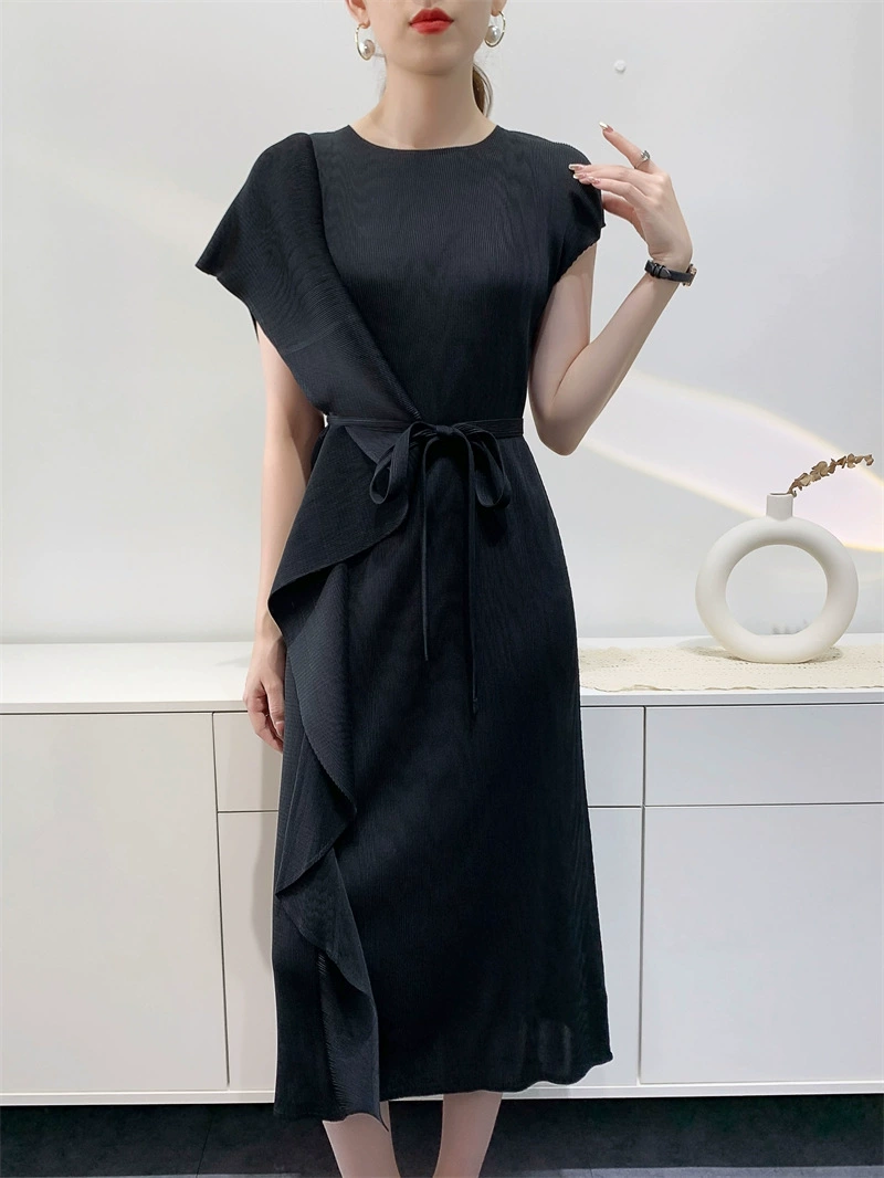 Miyake Design Ruffle Dress Women's Spring and Summer Temperament Large Size Lace-Up Waist Dress Dress Pleated Long Skirt