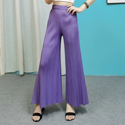 Miyake Pants Women's Pleated Pants Nine-Point Spring and Summer Thin Loose Pants Straight Leg Wide Leg Pants High Waist Draped Casual Pants