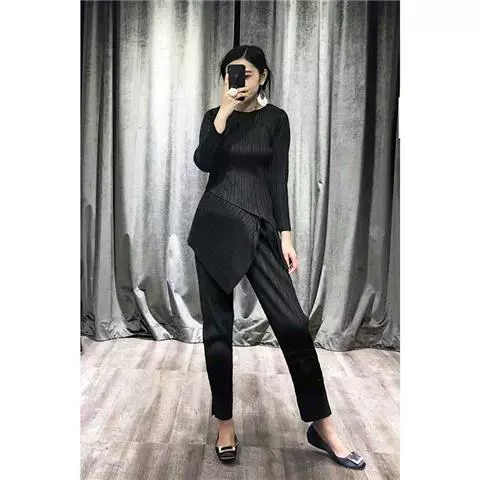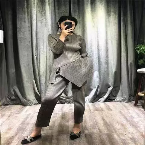 | nameOriginal | Miyake pleated 2023 spring and summer large size fashionable suit fashionable age reduction and slimming royal sister style two-piece set for women |