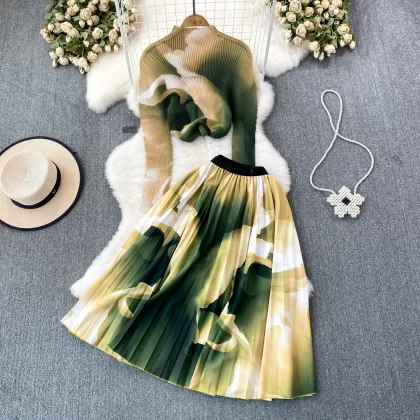 | nameOriginal | Miyake Pleated Celadon High Waist Skirt Fashion Set |