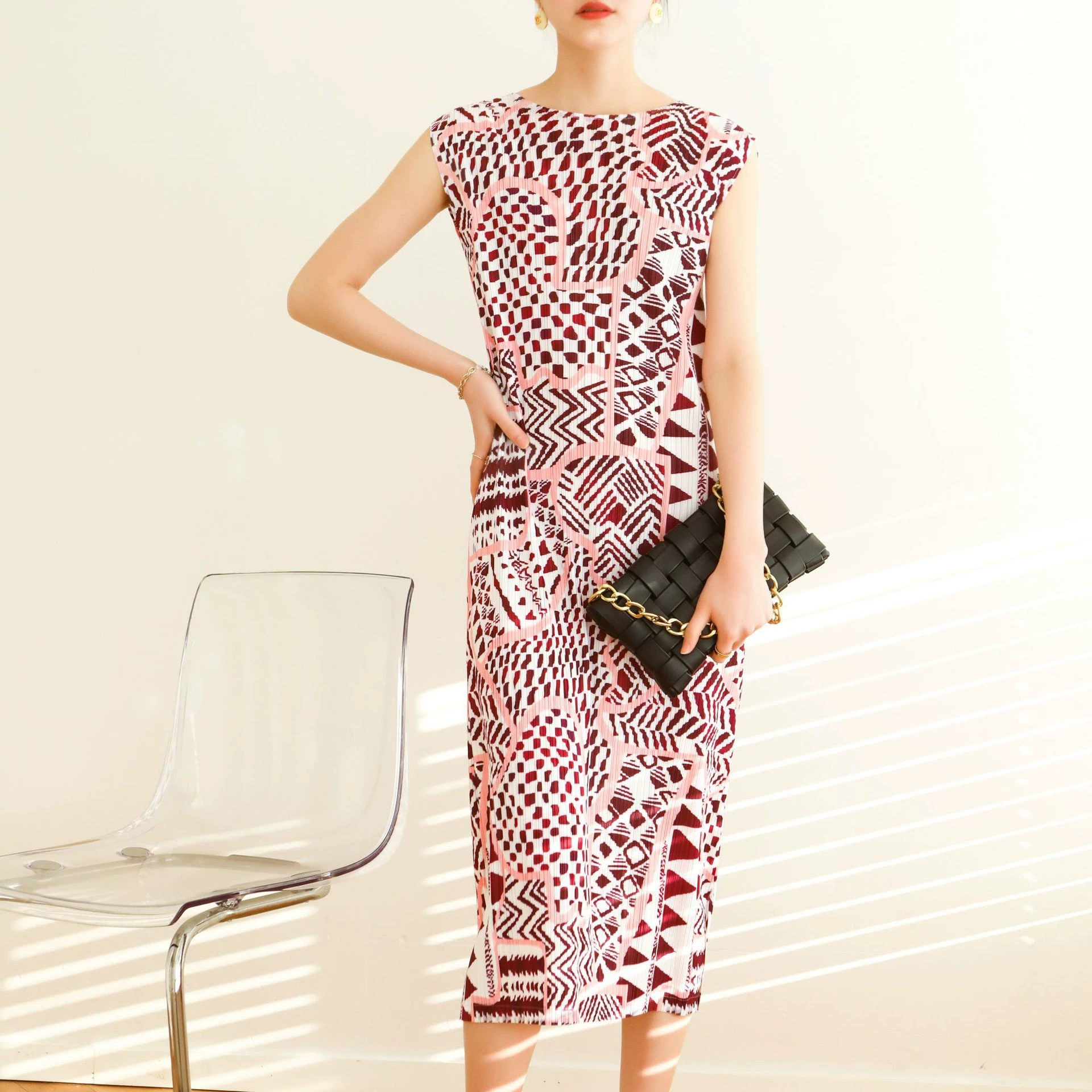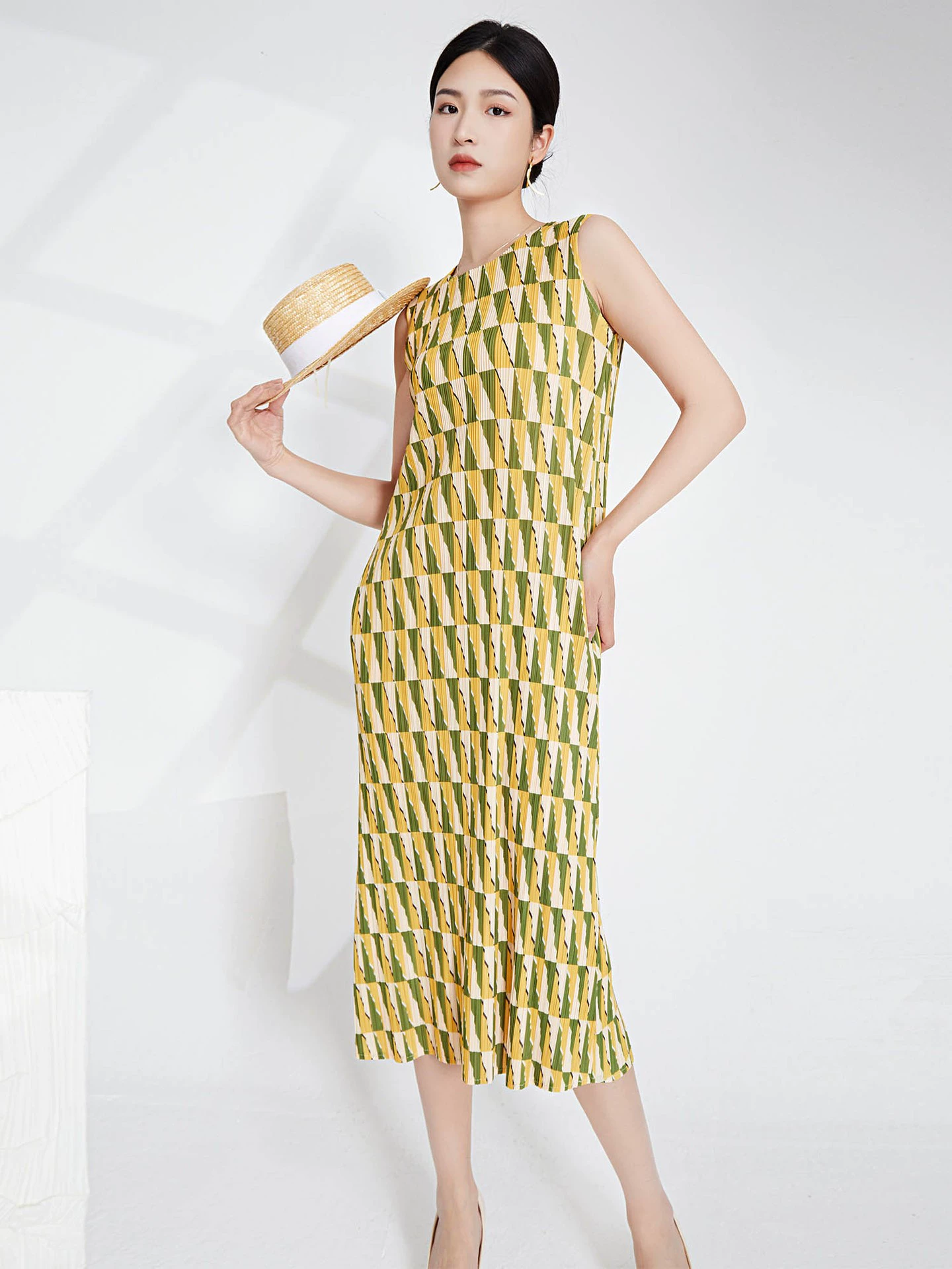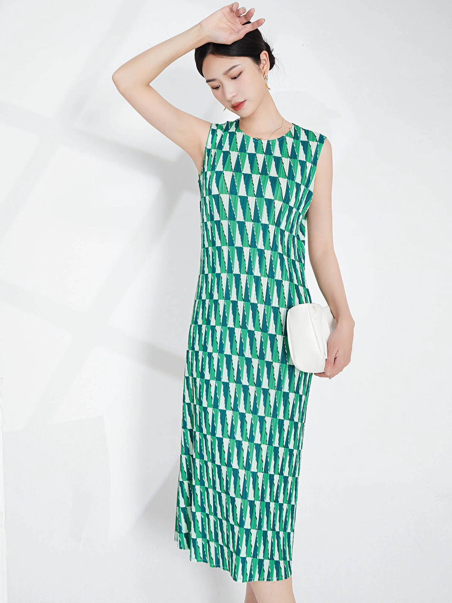 | nameOriginal | Miyake pleated geometric print slim-fit sleeveless dress |