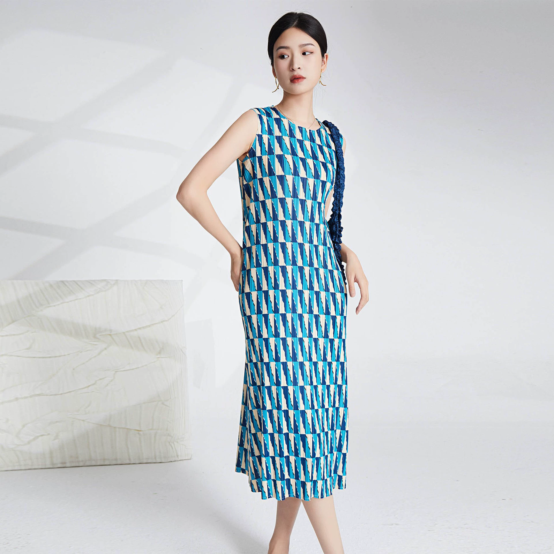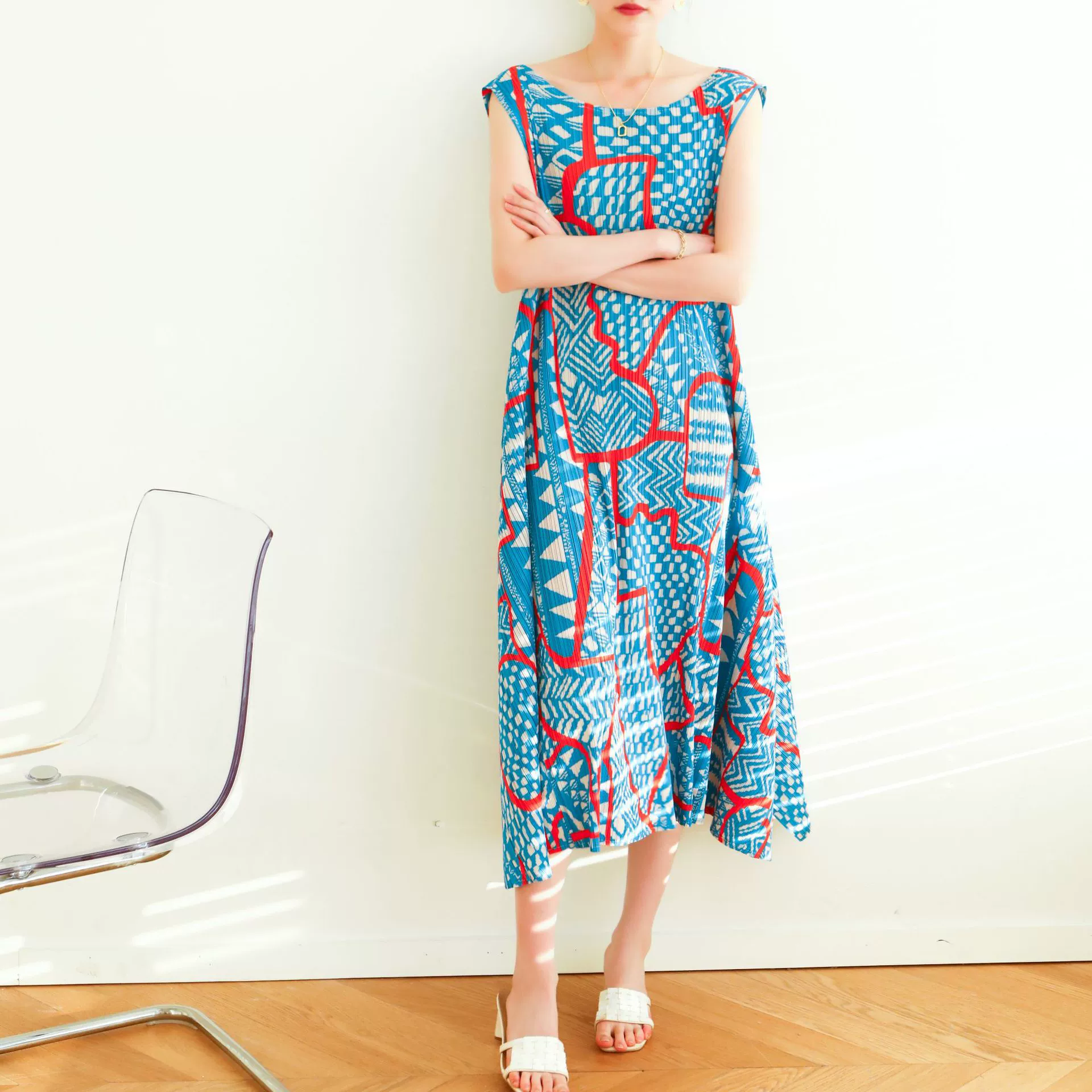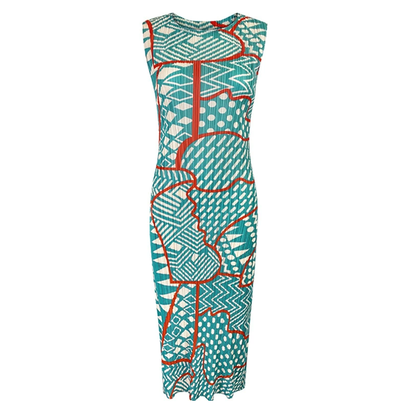| nameOriginal | Miyake pleated geometric print slim-fit sleeveless dress |