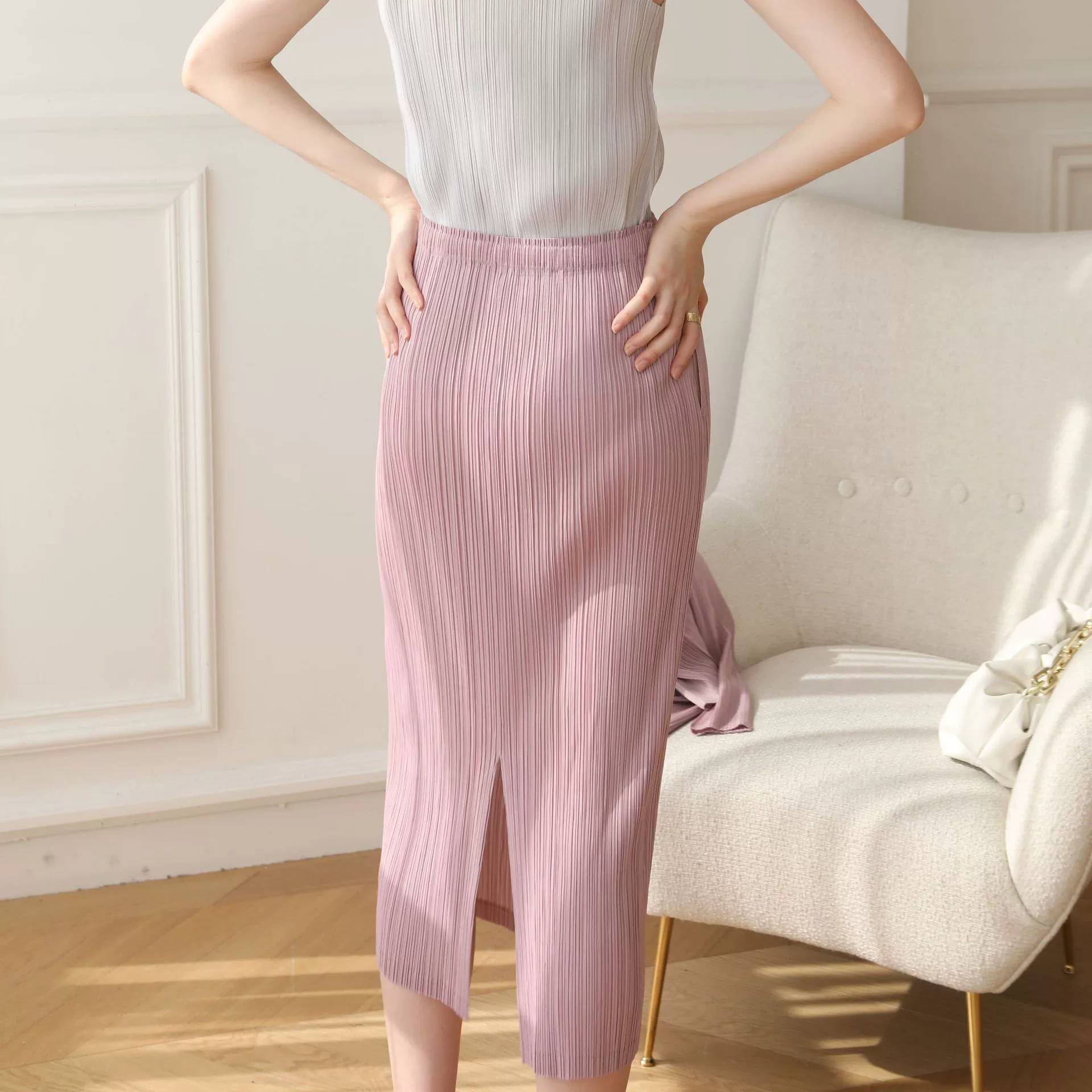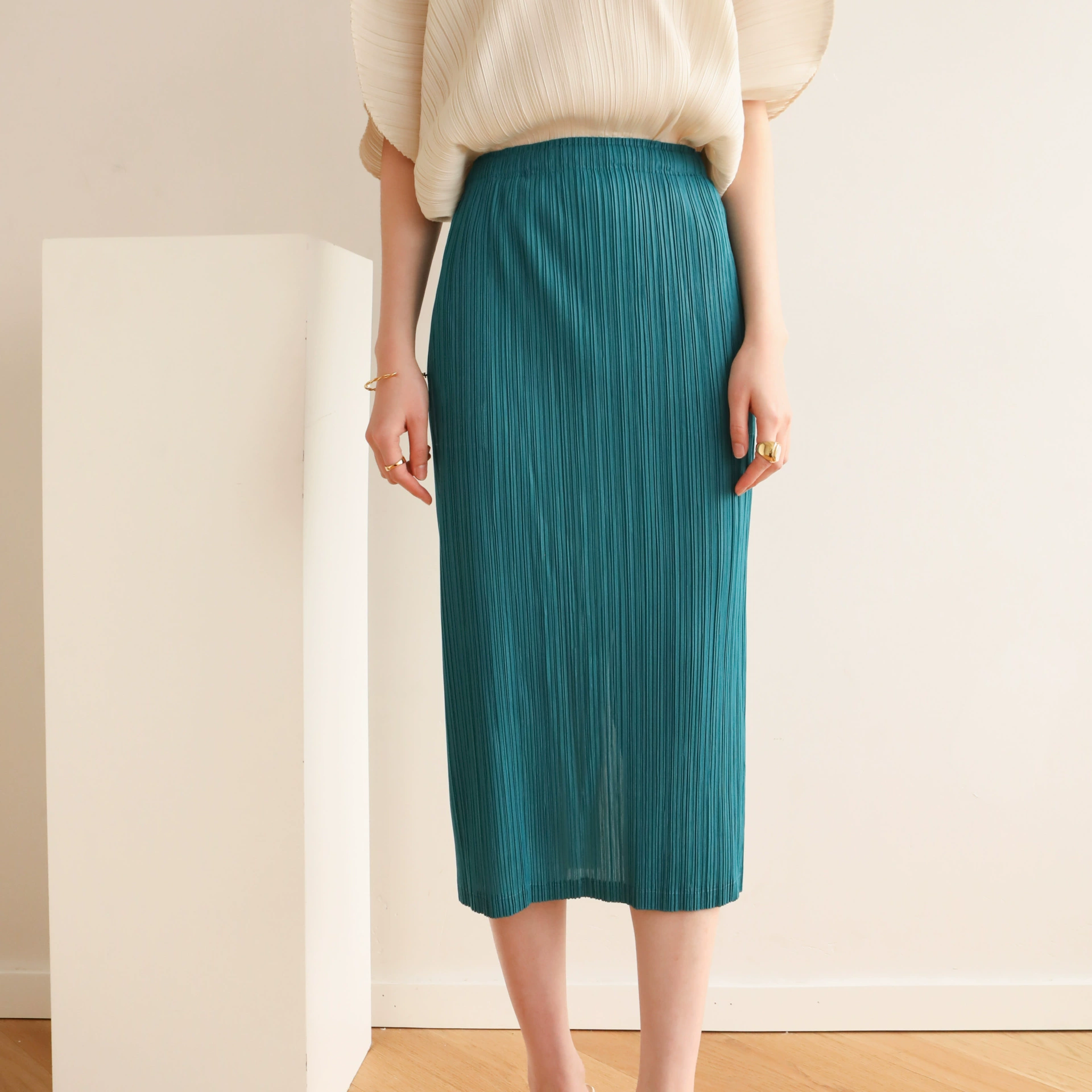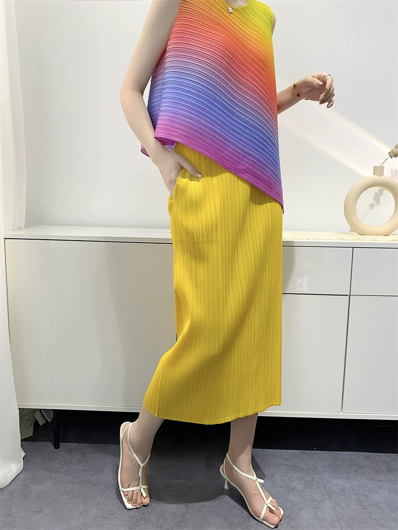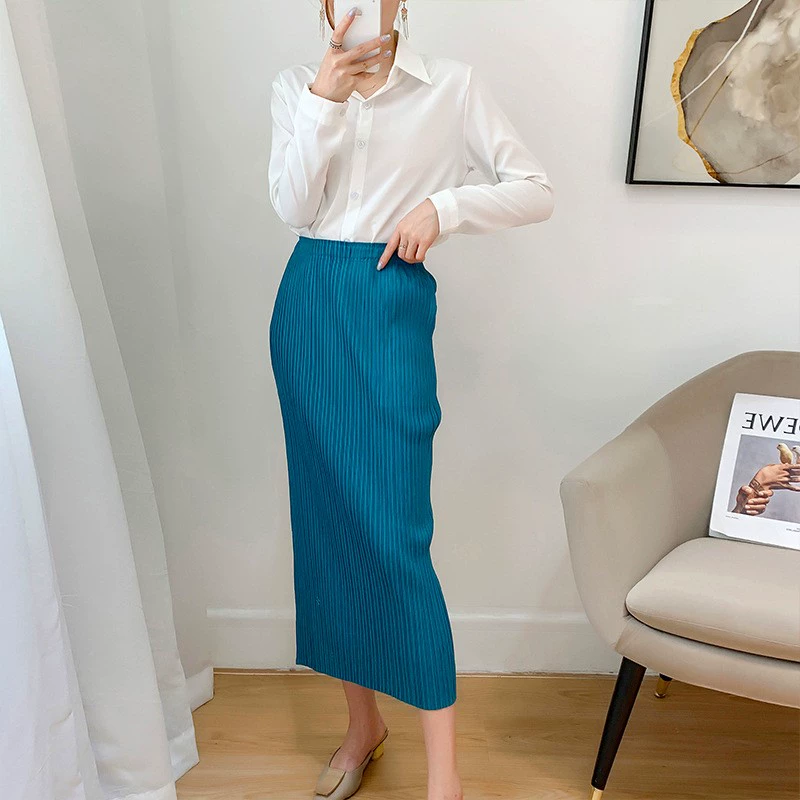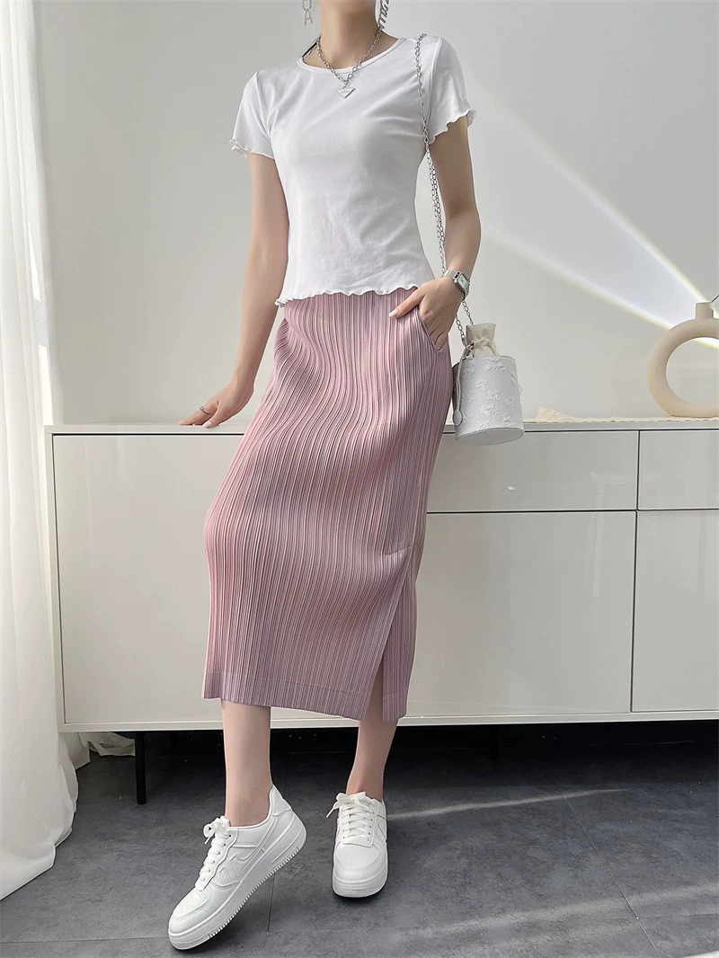 | nameOriginal | Miyake pleated Japanese mid-length hip-hugging skirt |