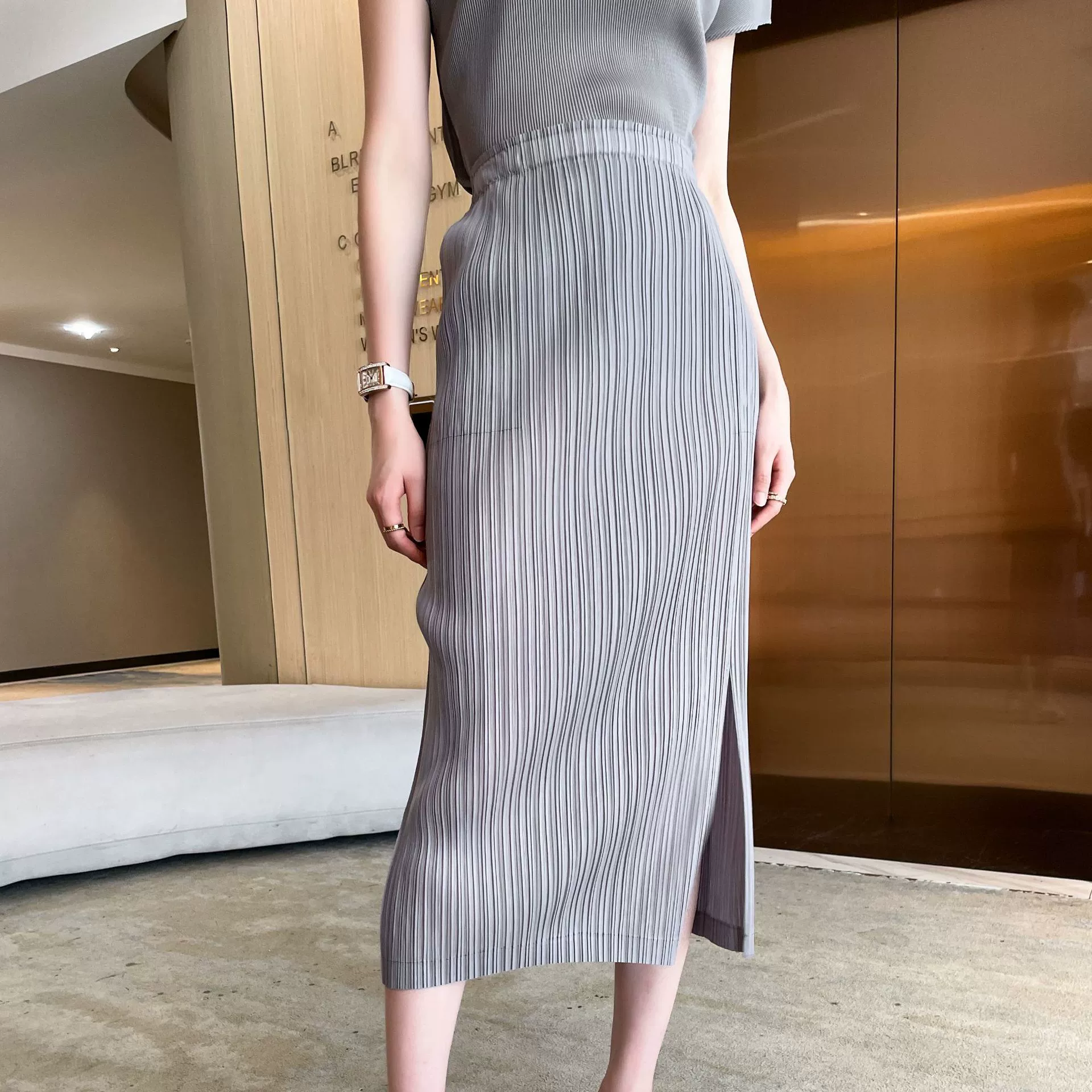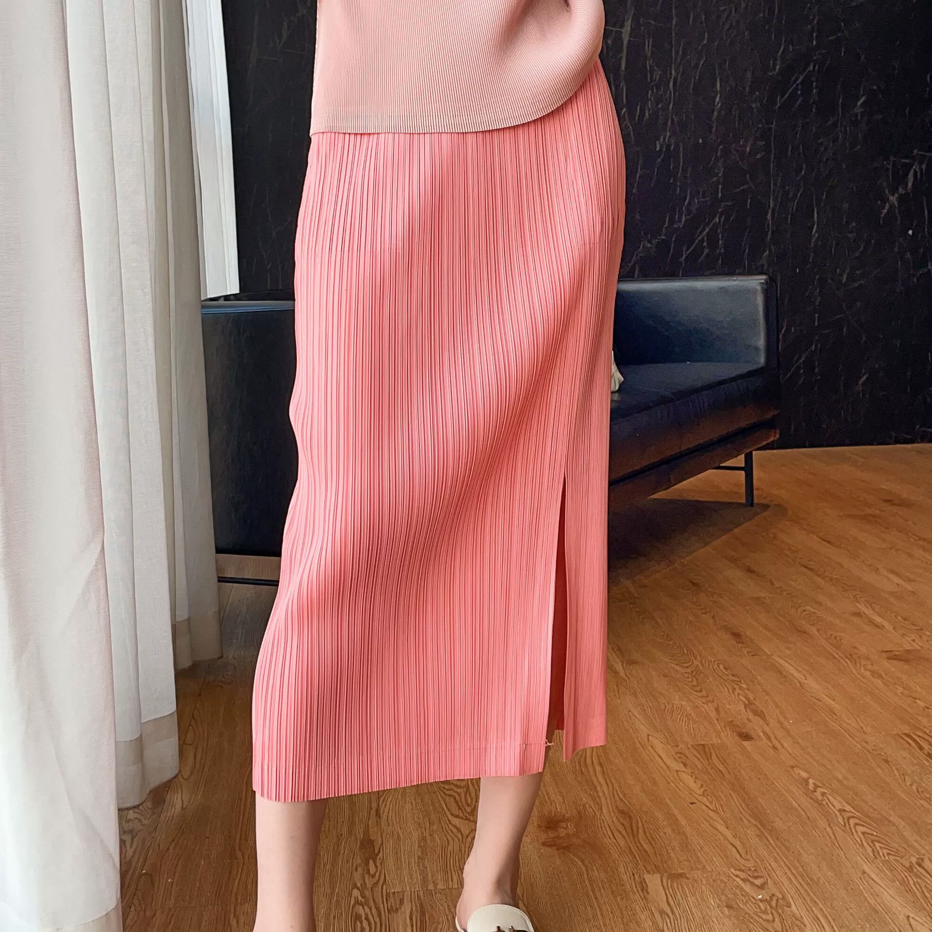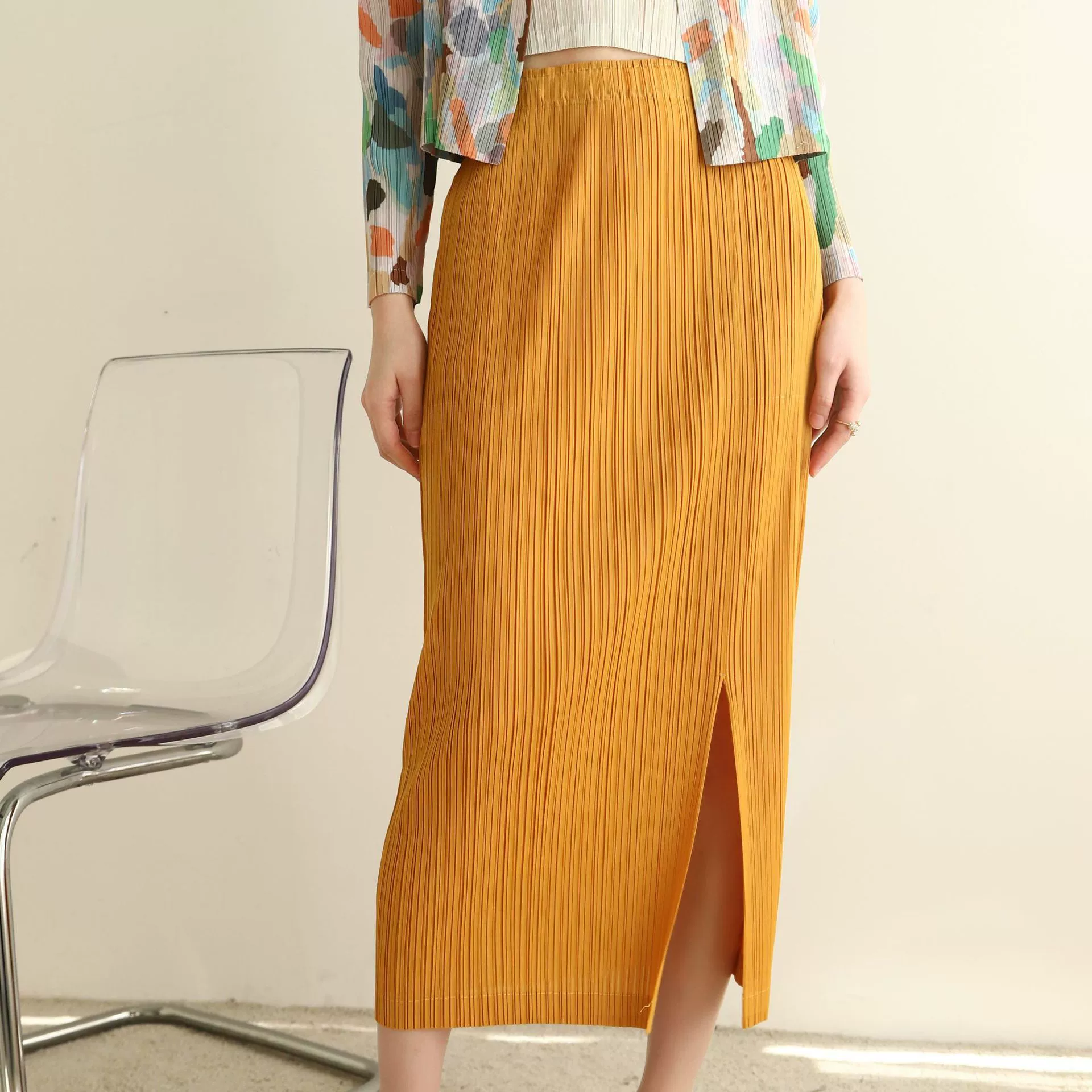| nameOriginal | Miyake pleated Japanese mid-length hip-hugging skirt |