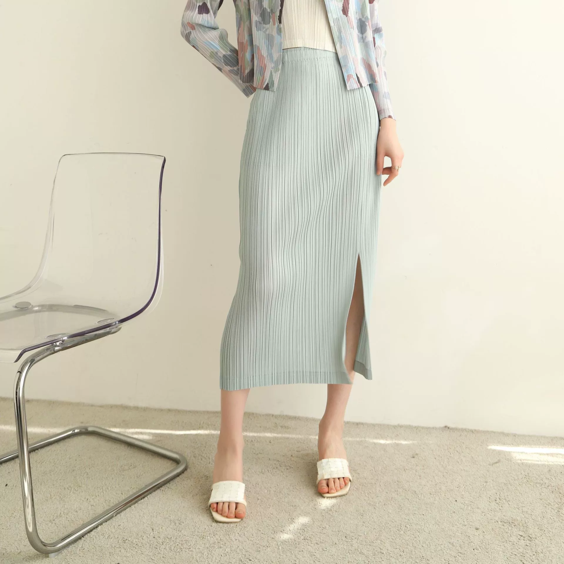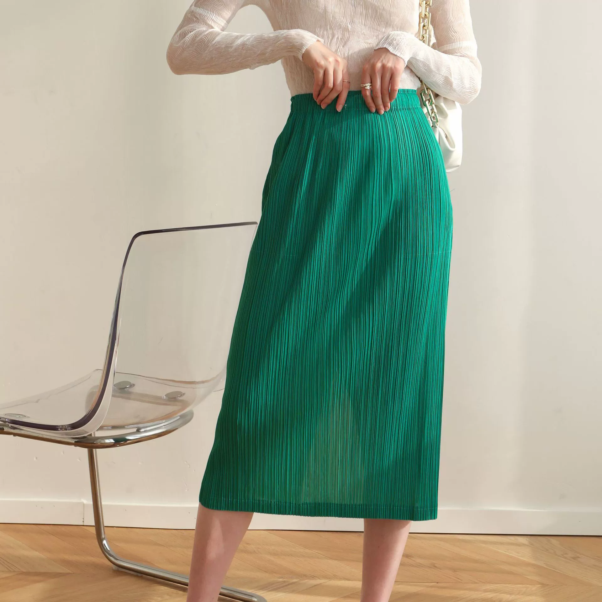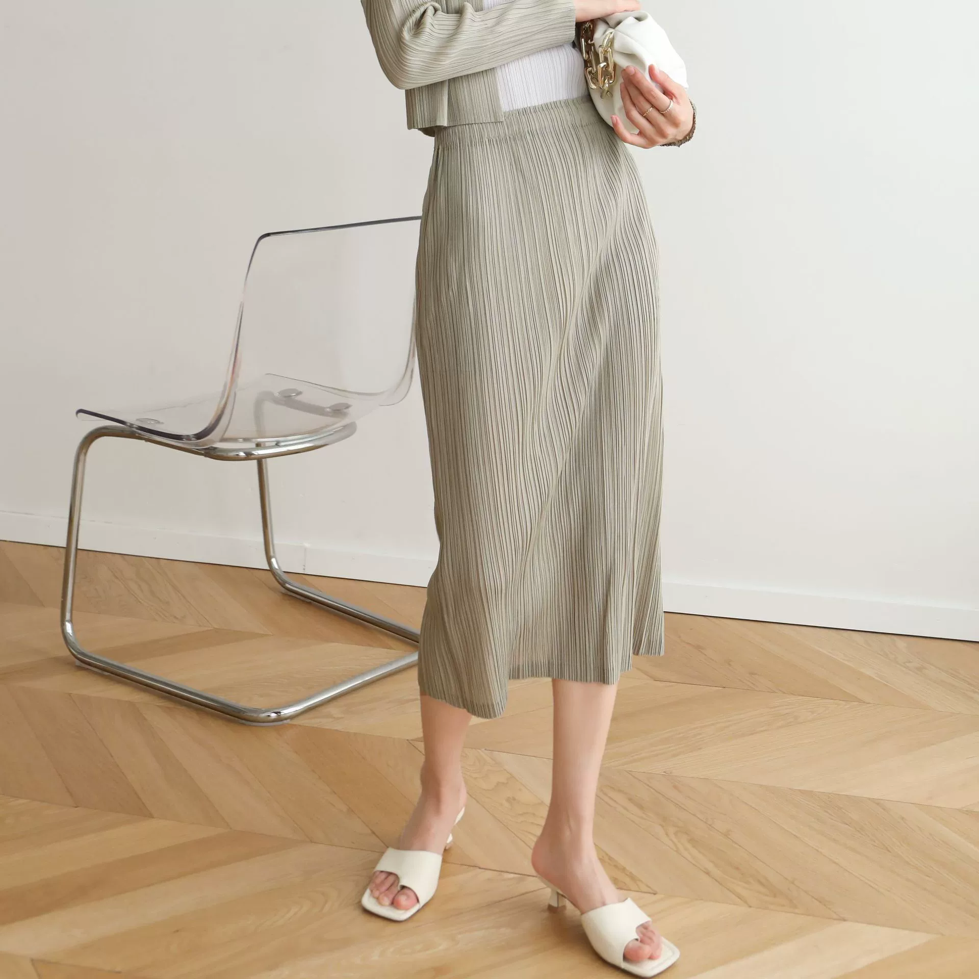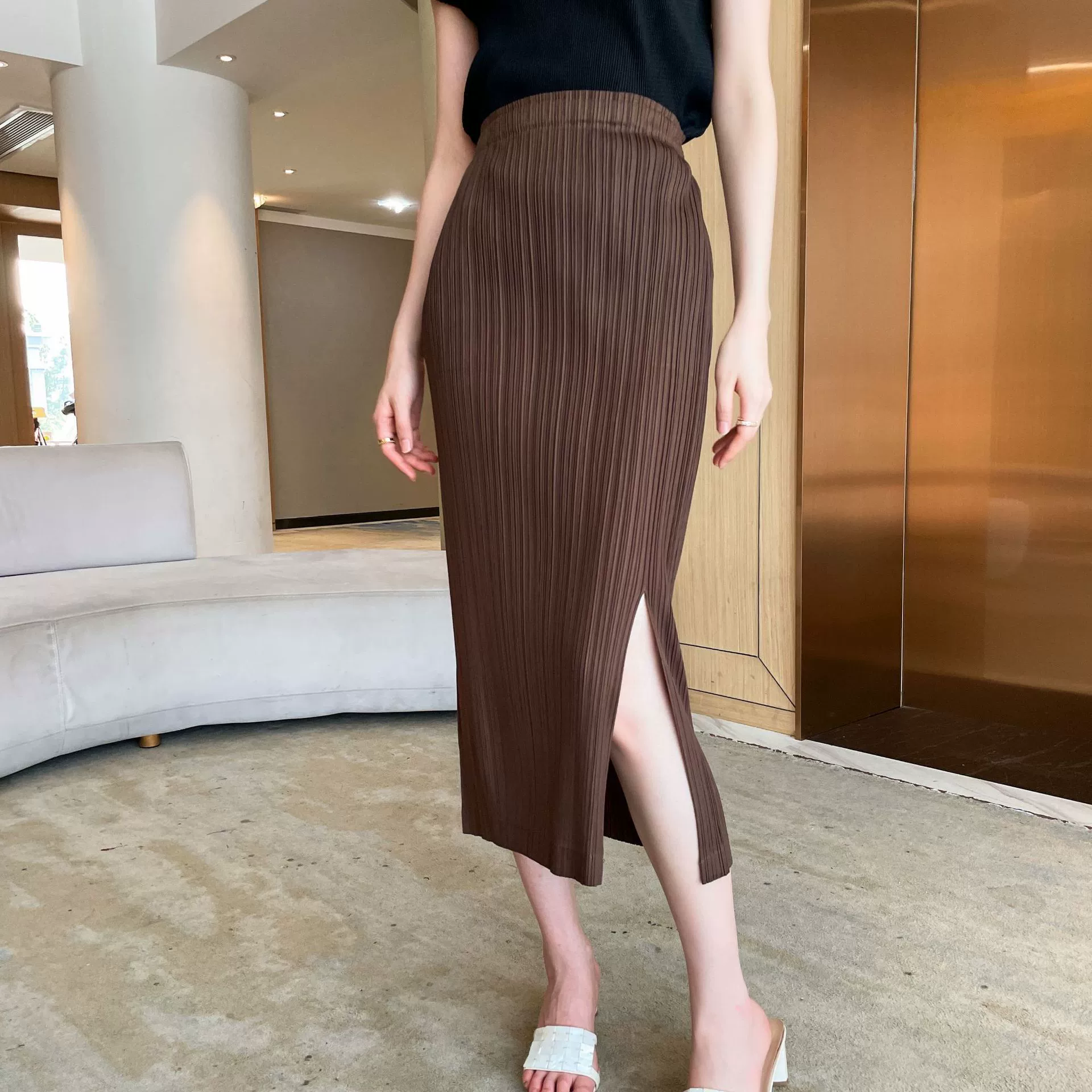 | nameOriginal | Miyake pleated Japanese mid-length hip-hugging skirt |
