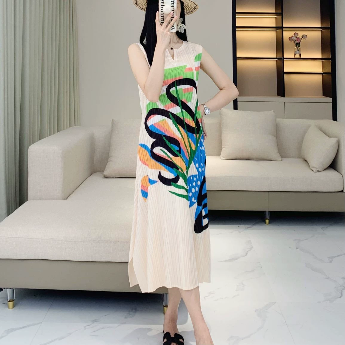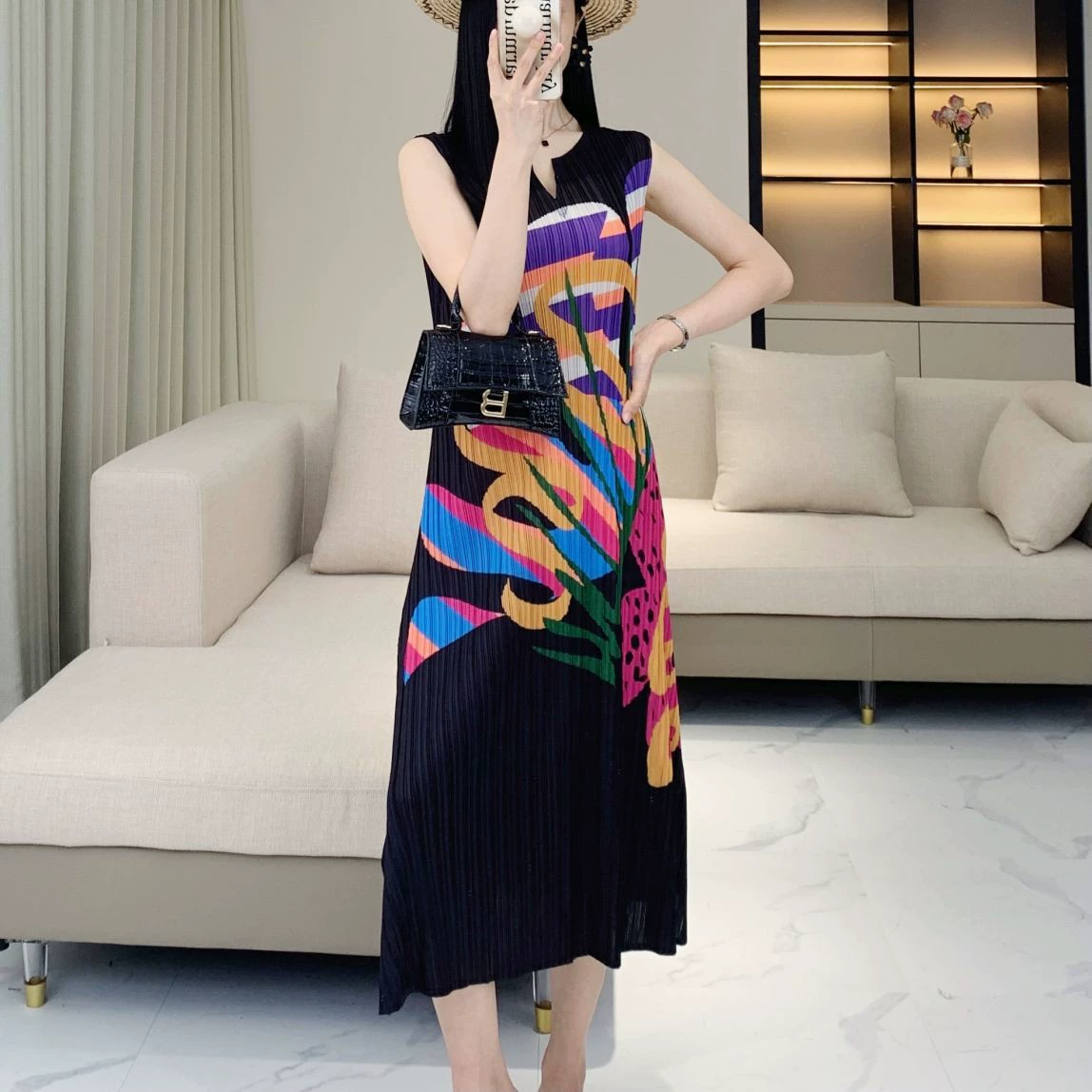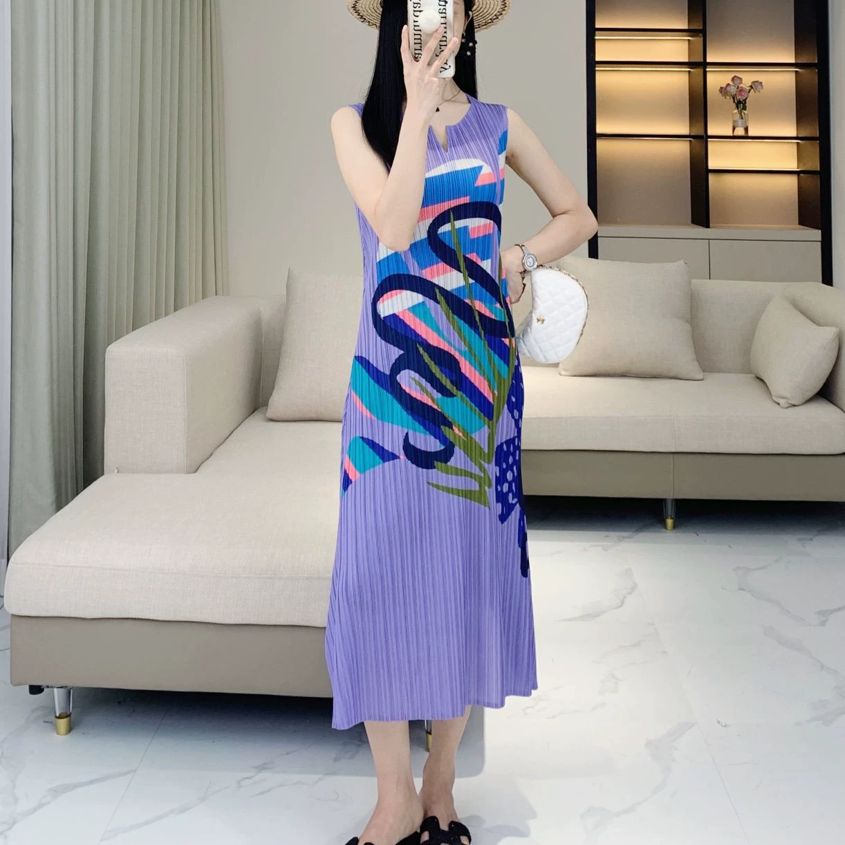 | nameOriginal | Miyake pleated large size slim vest sleeveless dress |