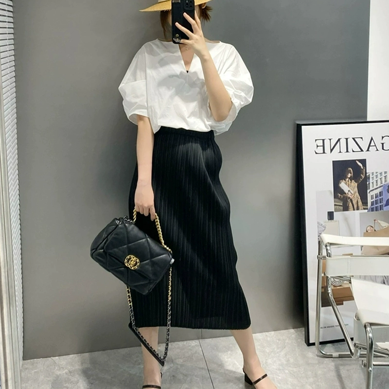 | nameOriginal | Miyake pleated loose and elegant midi skirt |