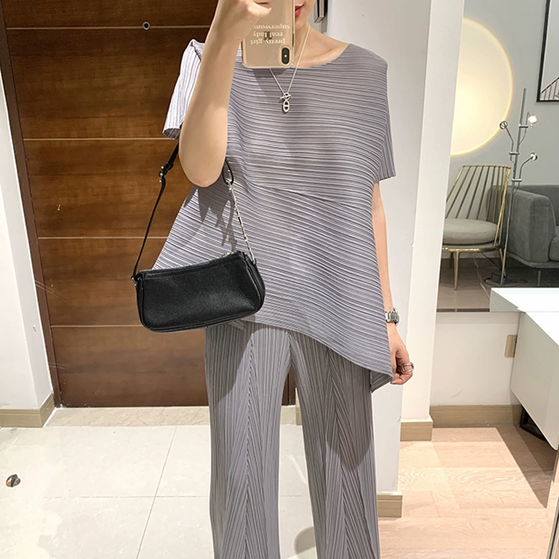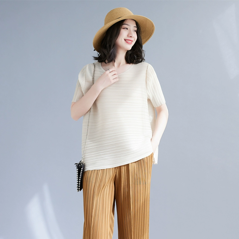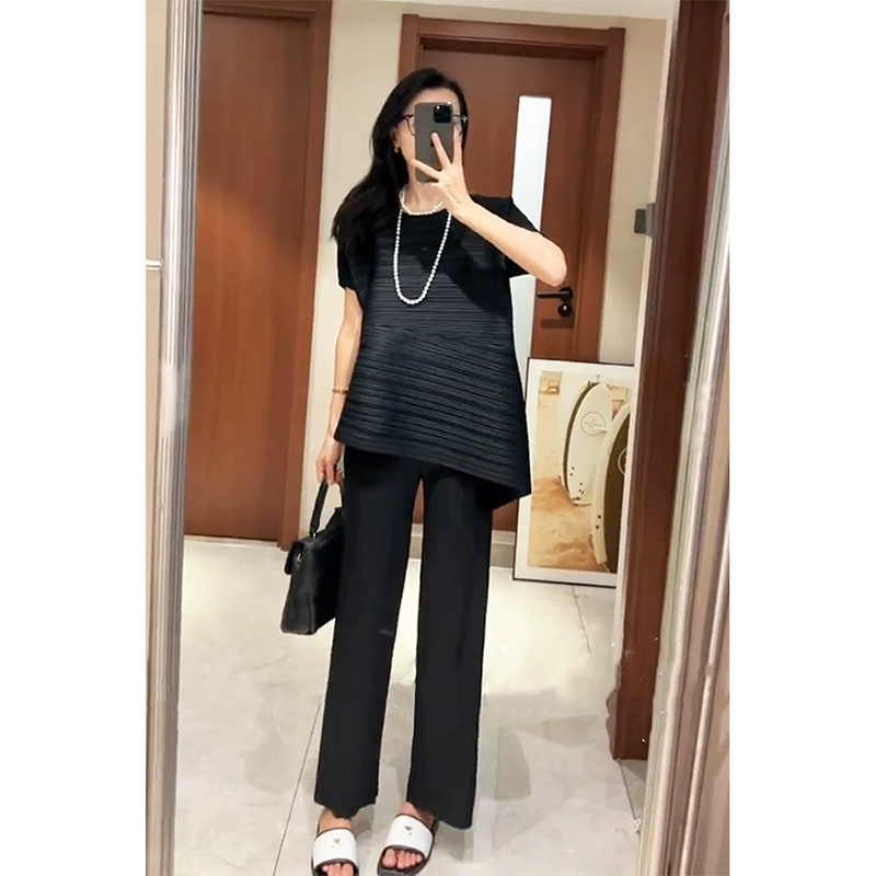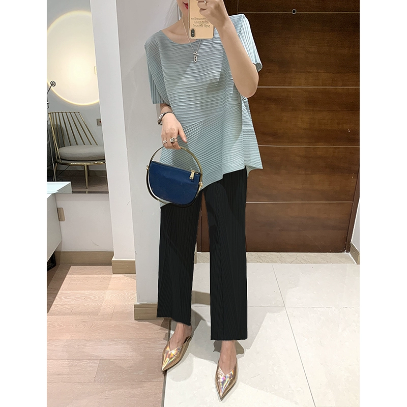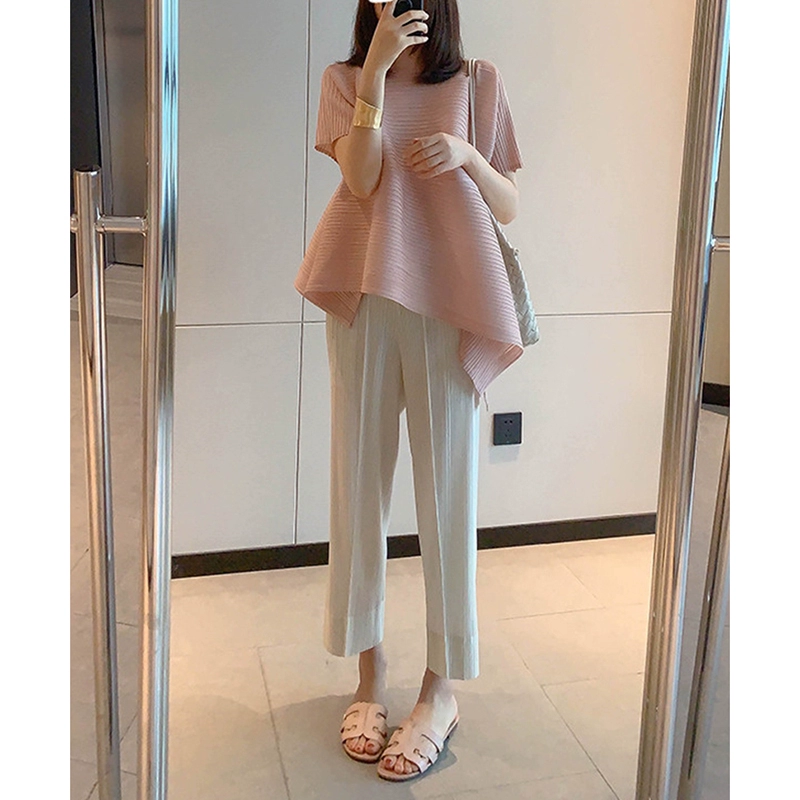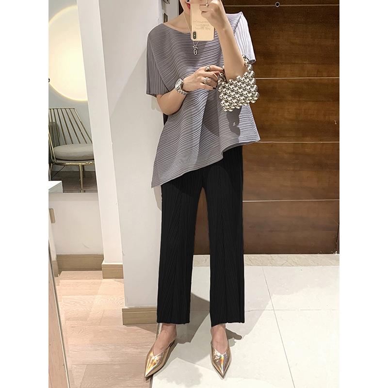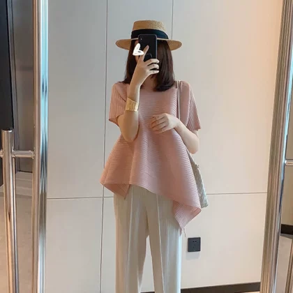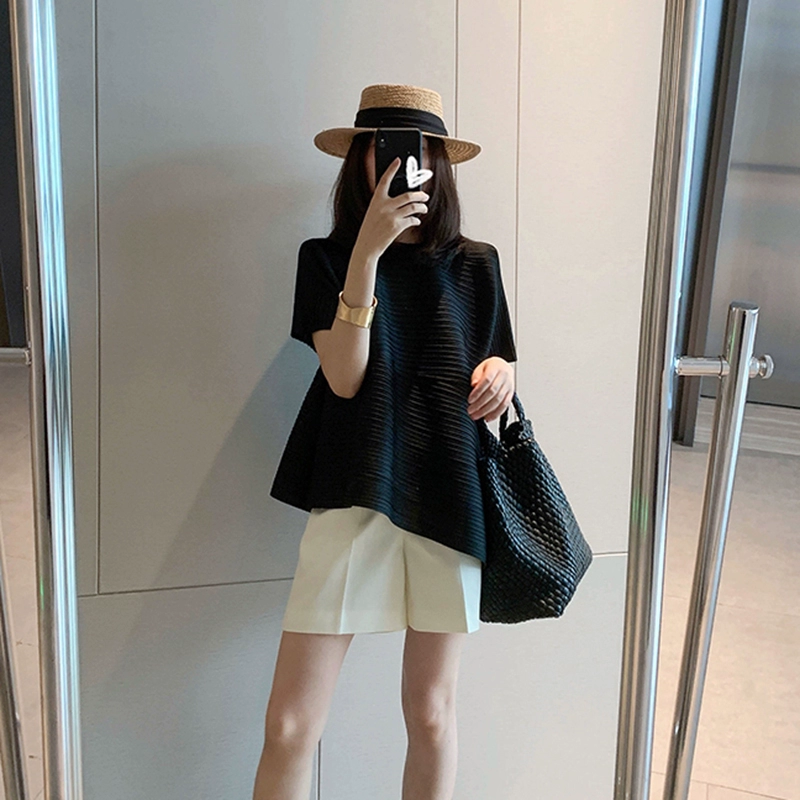 | nameOriginal | Miyake pleated loose slimming irregular short-sleeved top |
