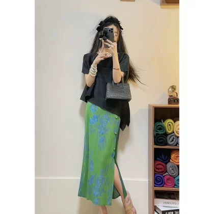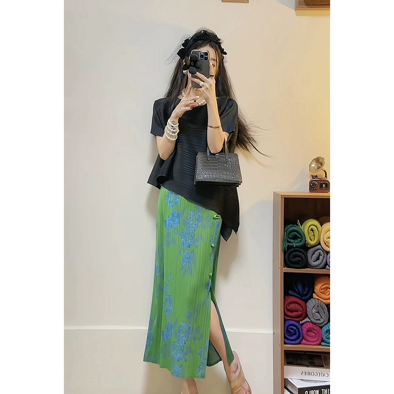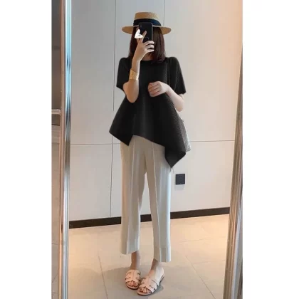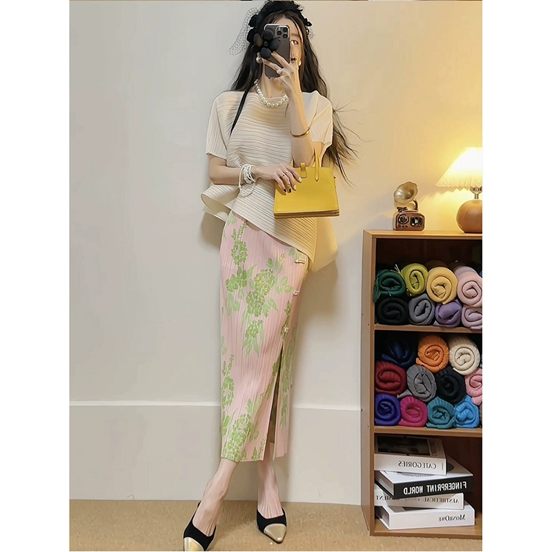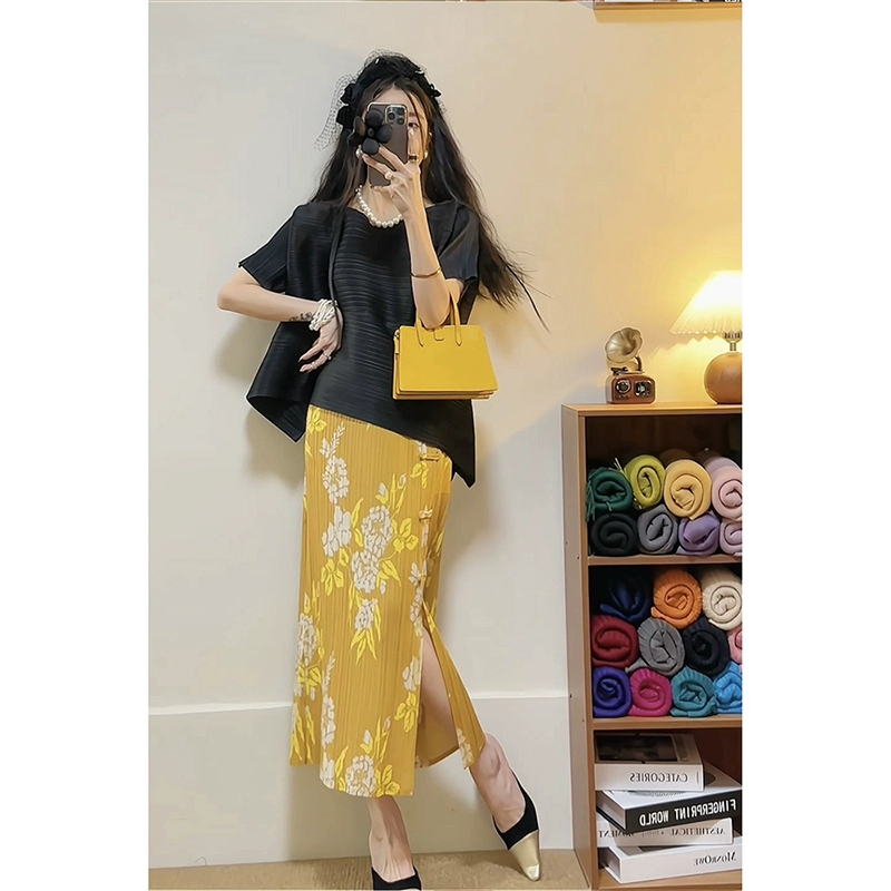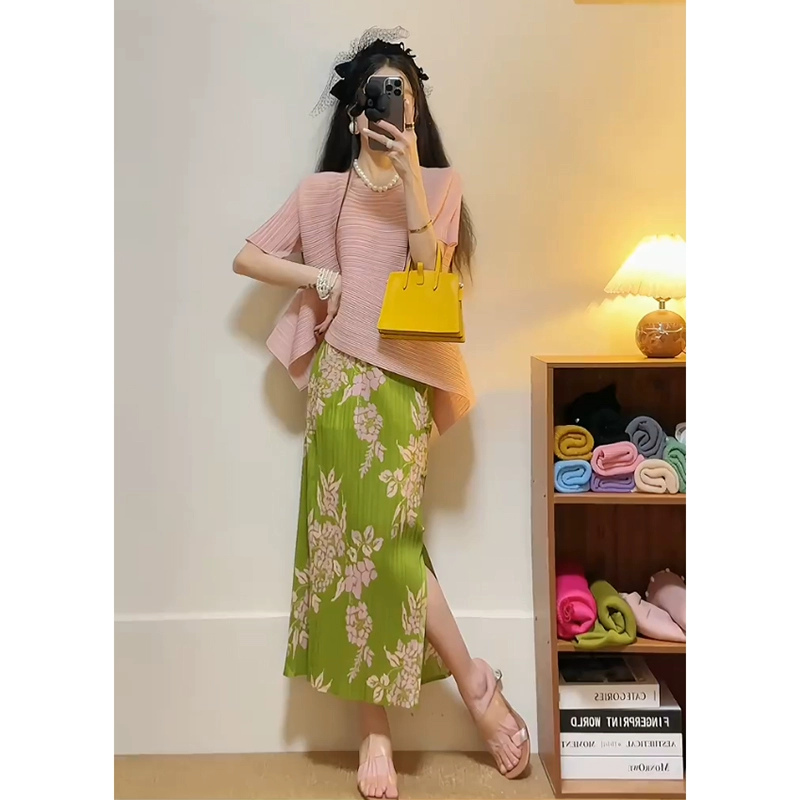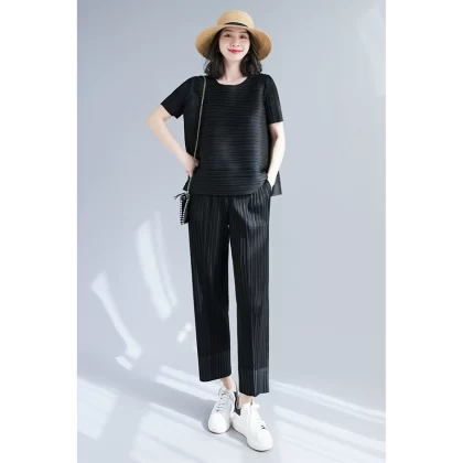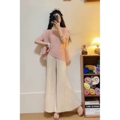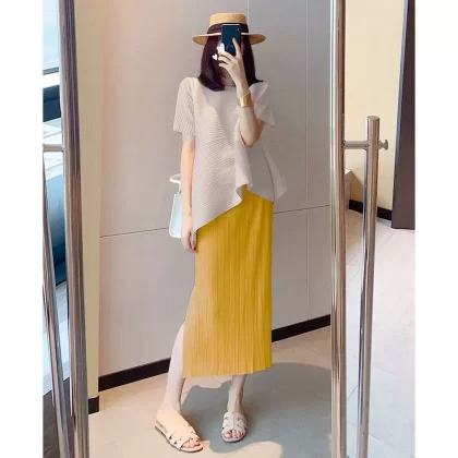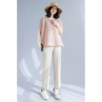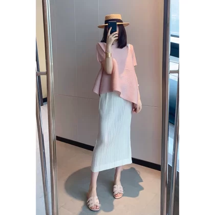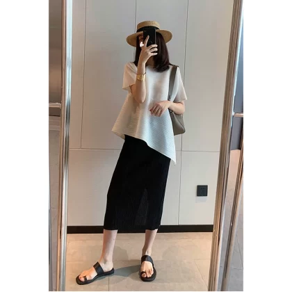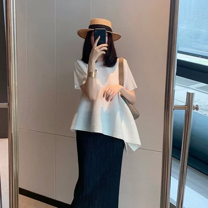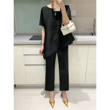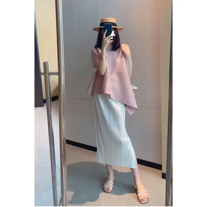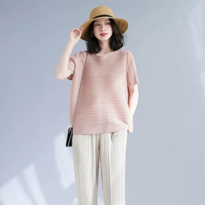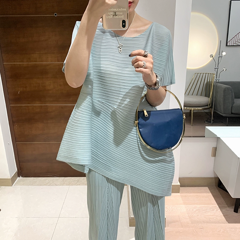 | nameOriginal | Miyake pleated loose slimming irregular short-sleeved top |