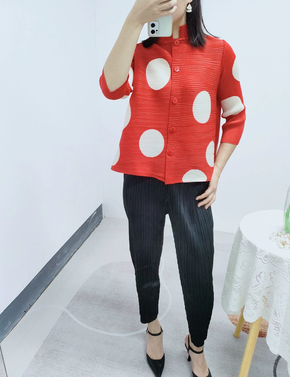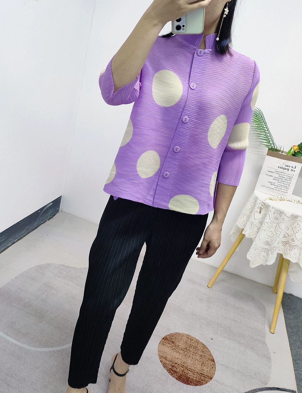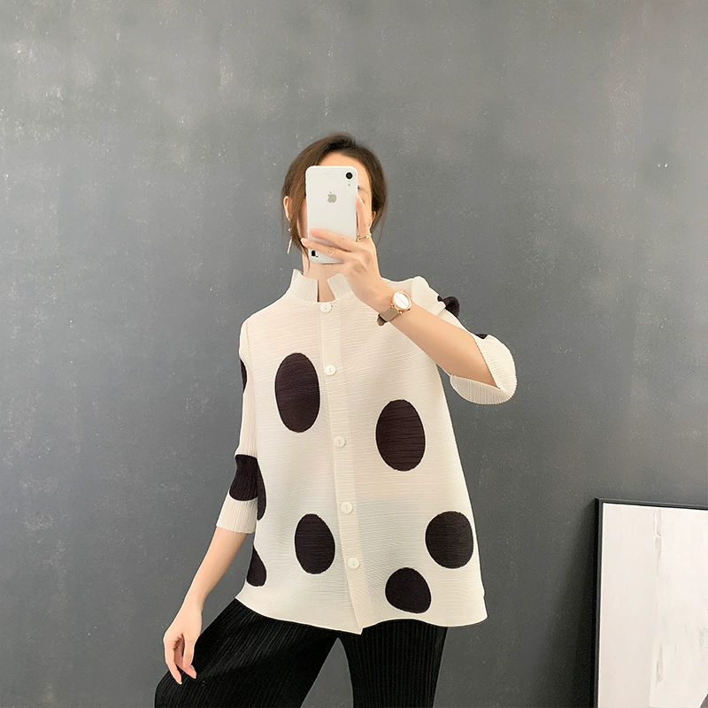 | nameOriginal | Miyake pleated polka dot fashionable versatile cardigan jacket |
