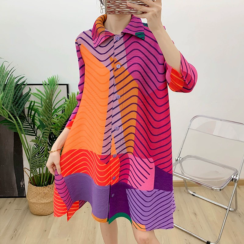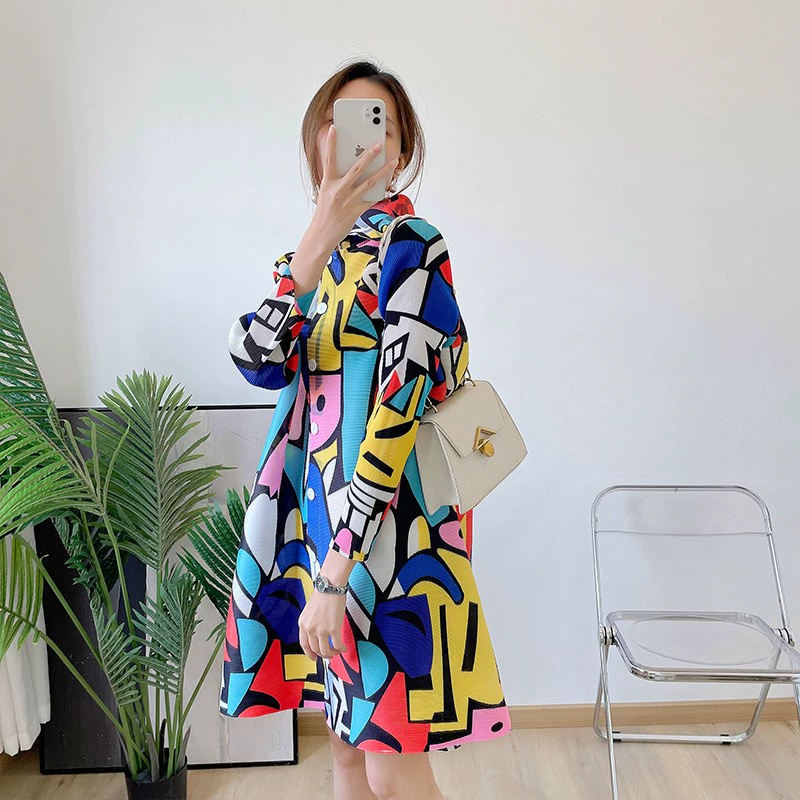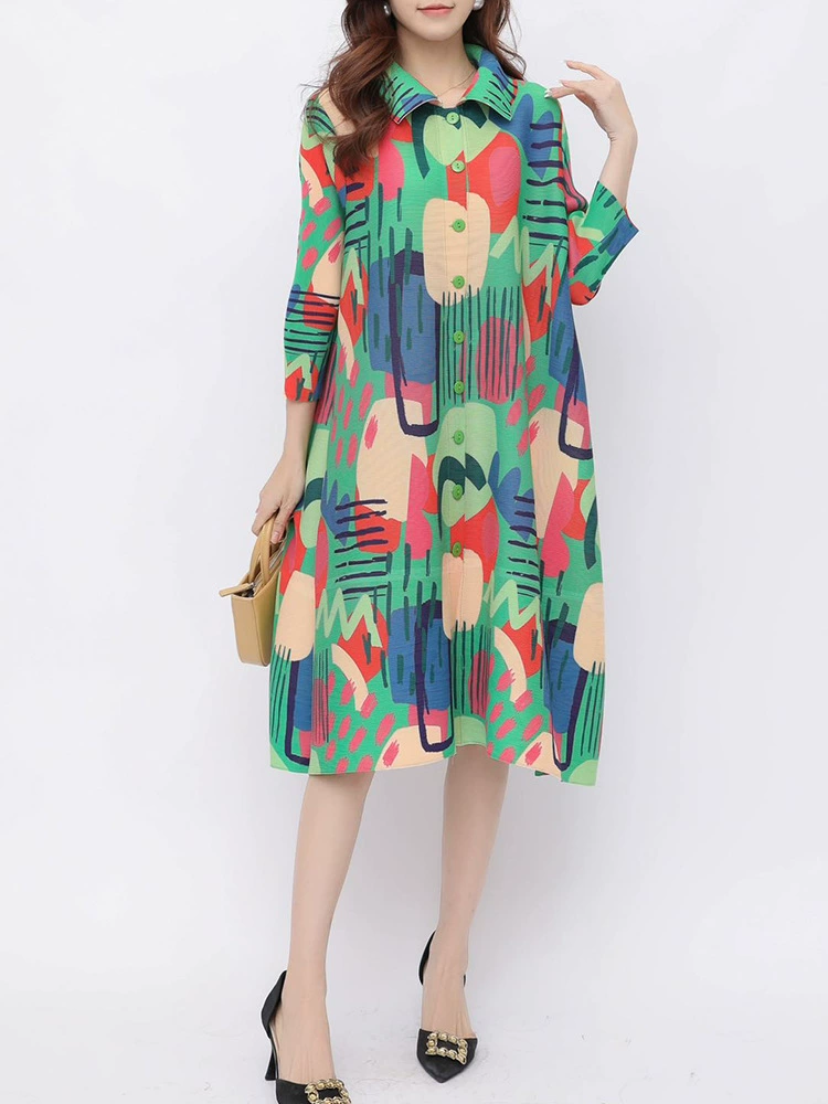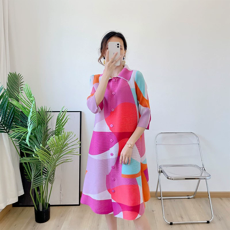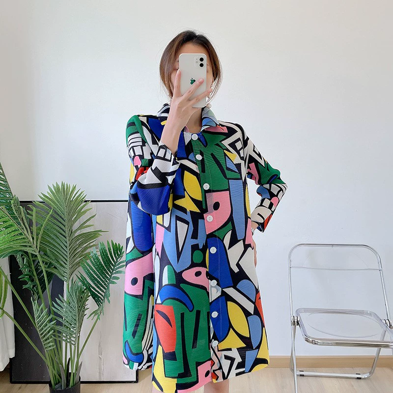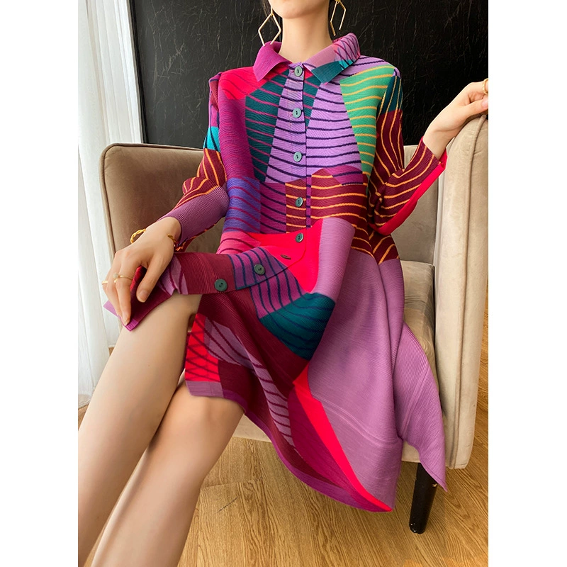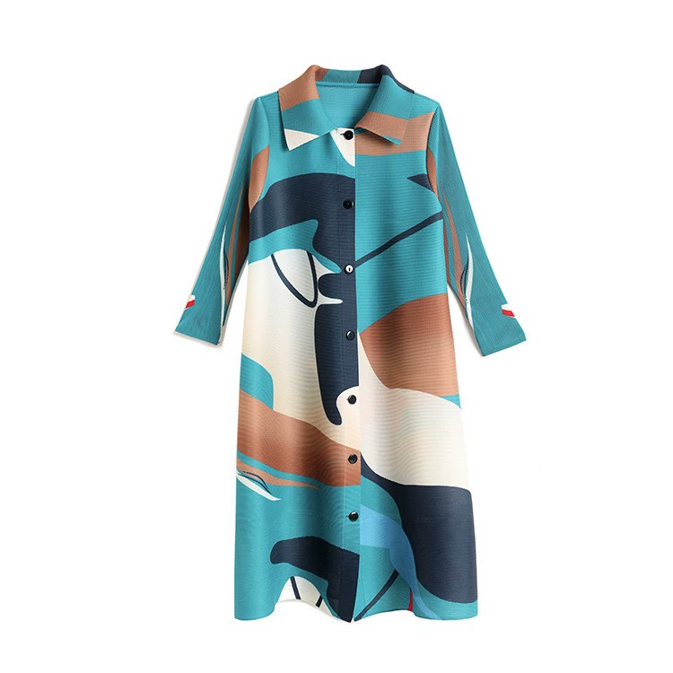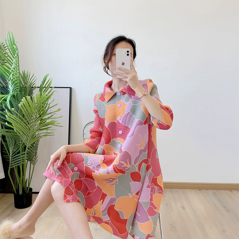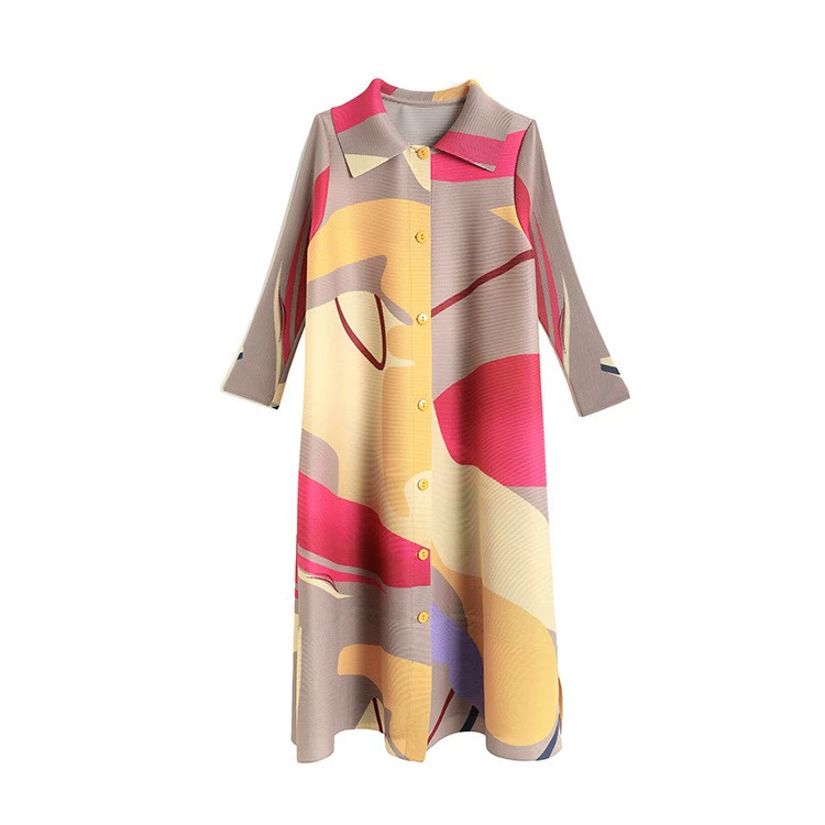 | nameOriginal | Miyake pleated printed lapel loose and slim shirt dress |