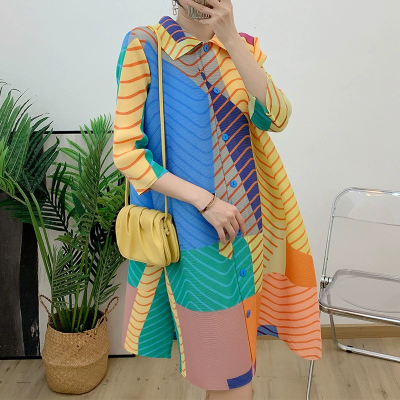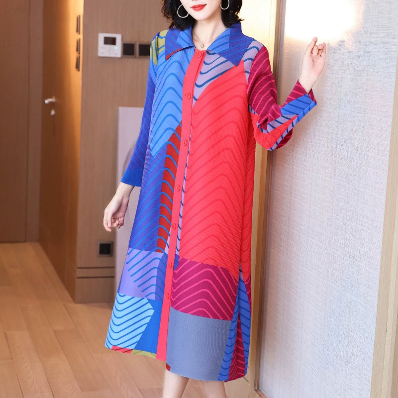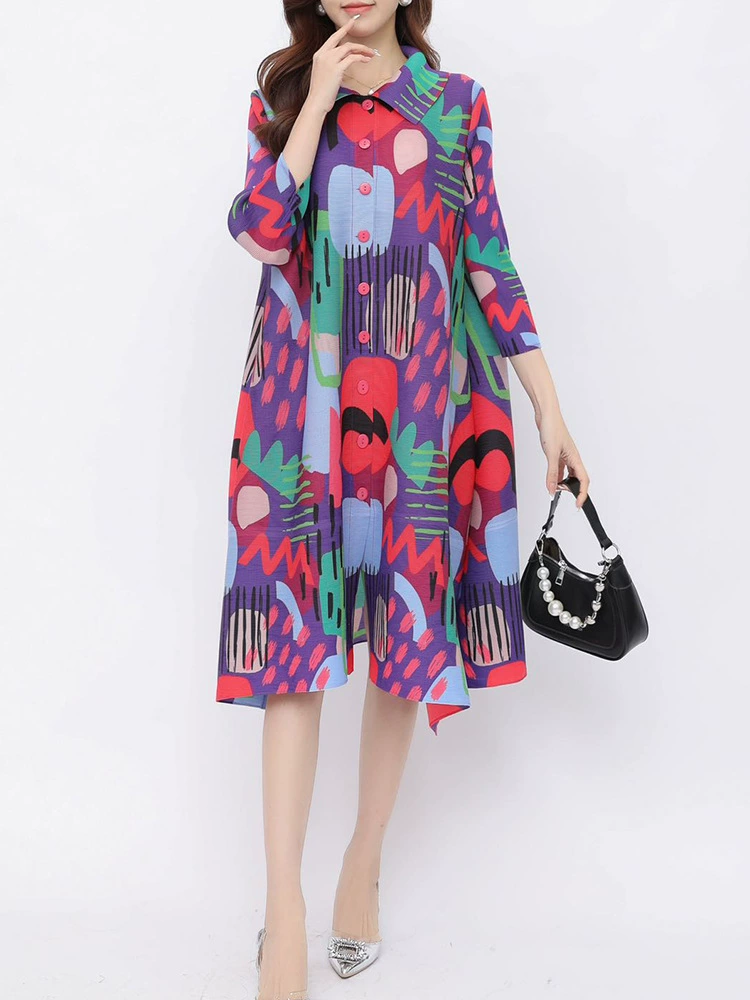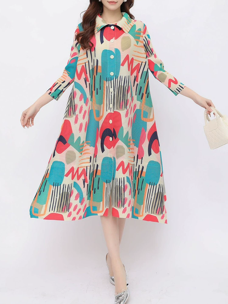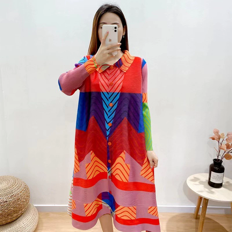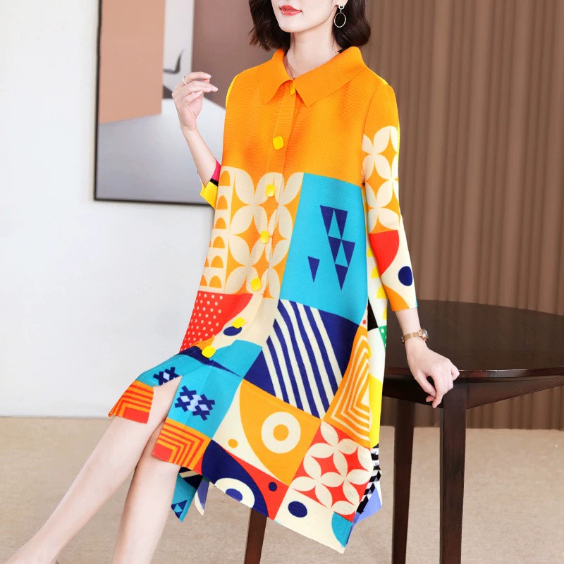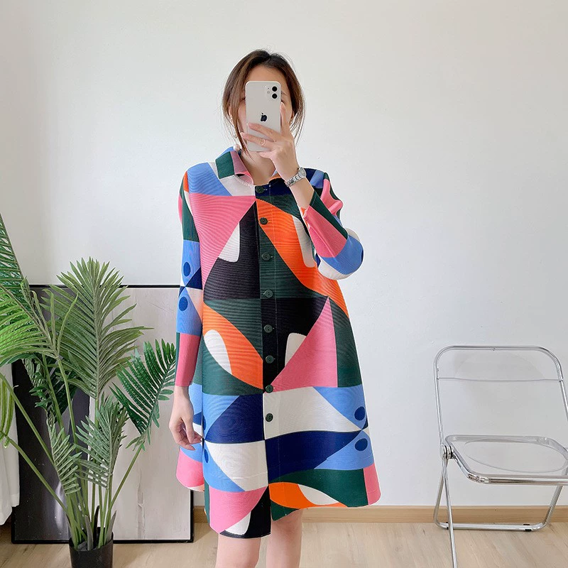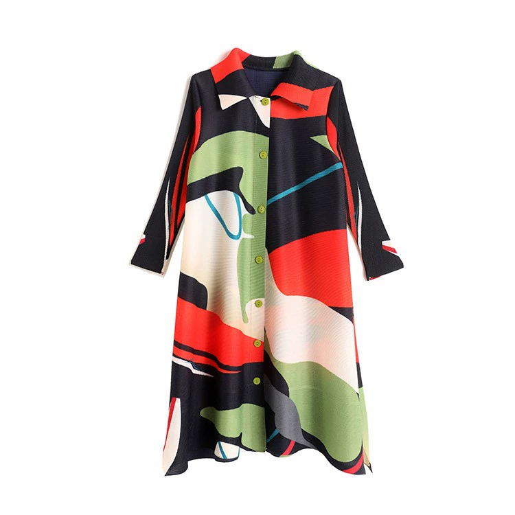 | nameOriginal | Miyake pleated printed lapel loose and slim shirt dress |