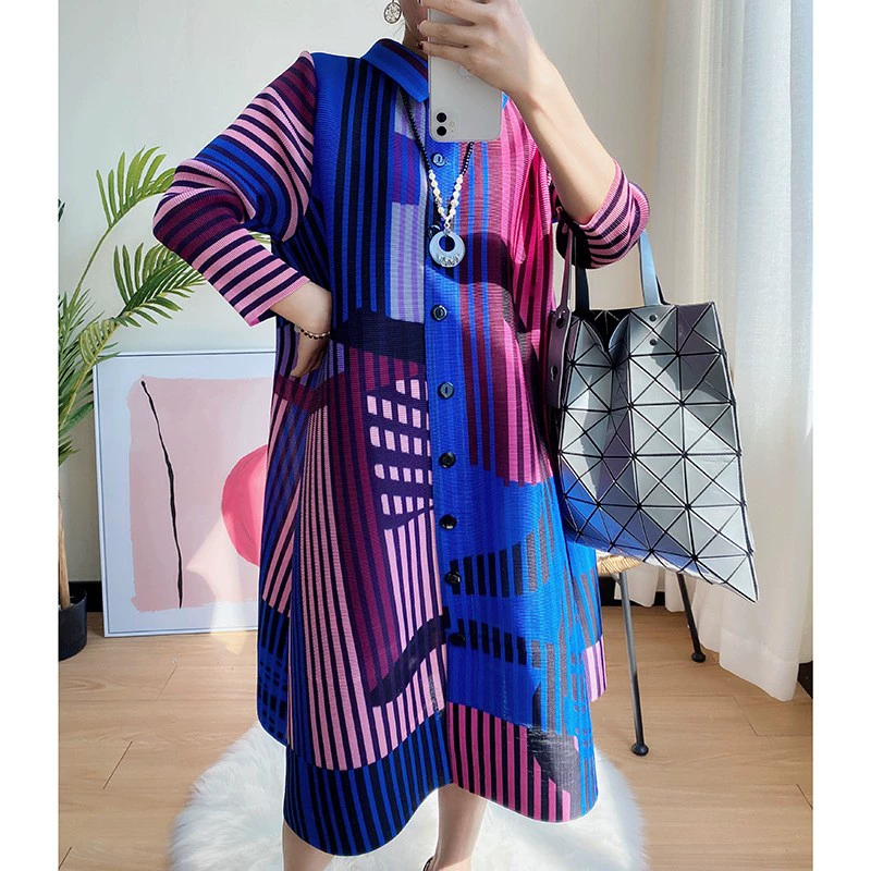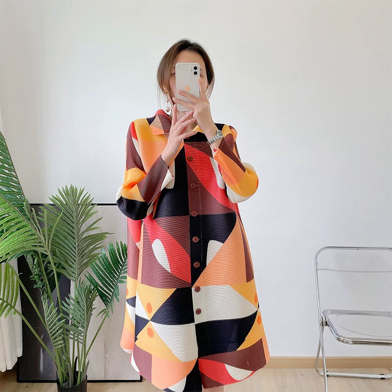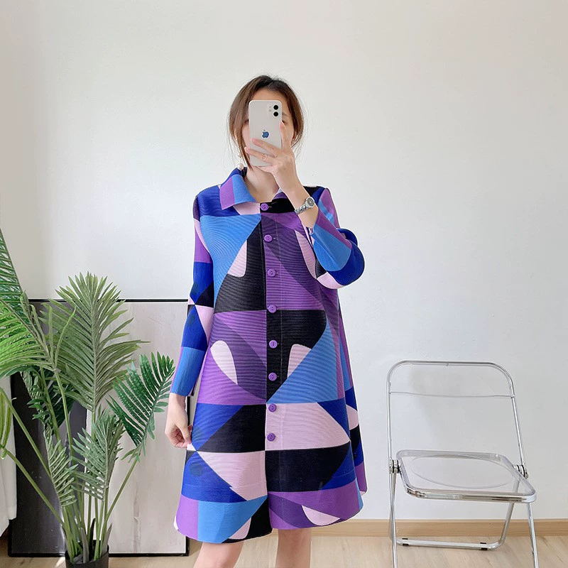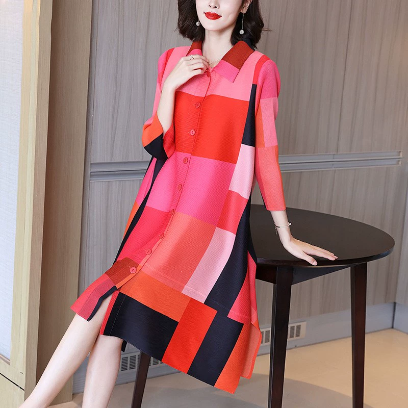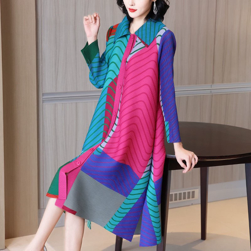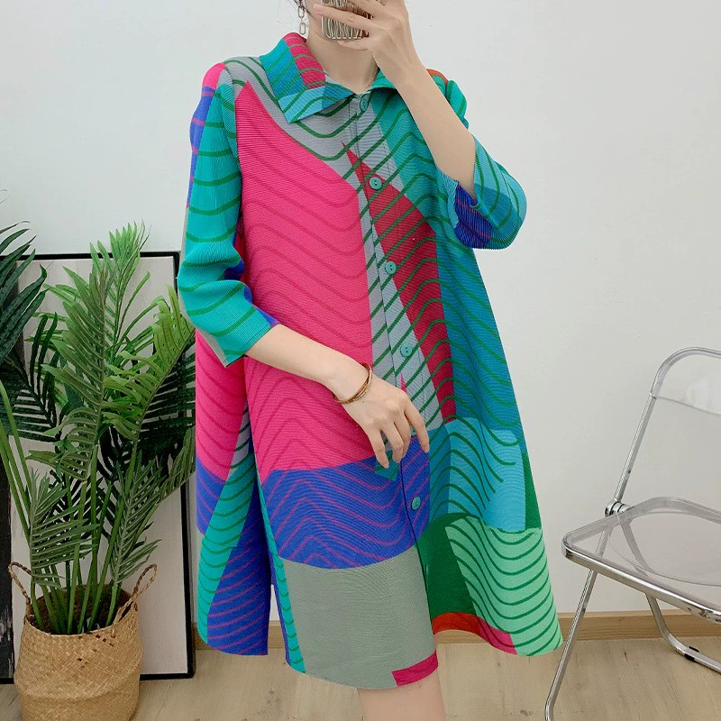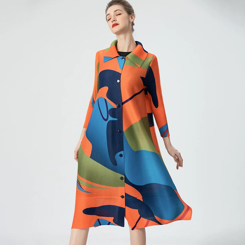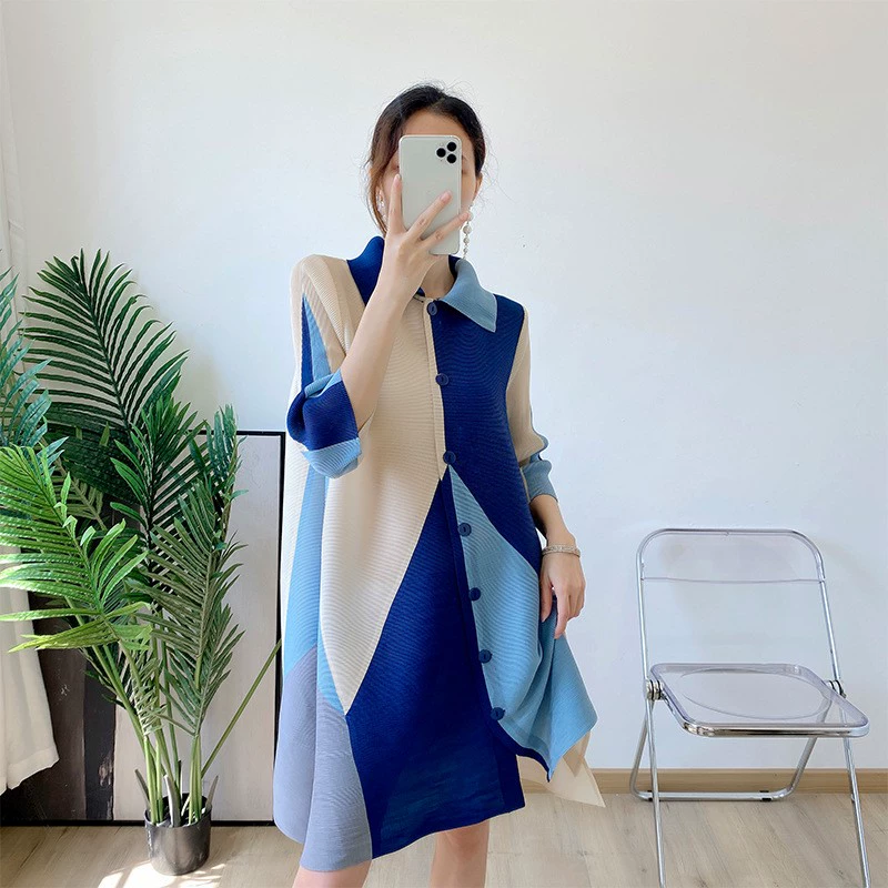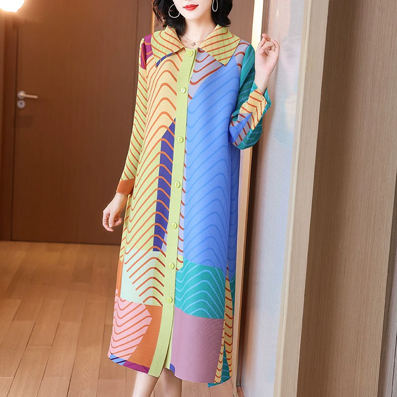| nameOriginal | Miyake pleated printed lapel loose and slim shirt dress |