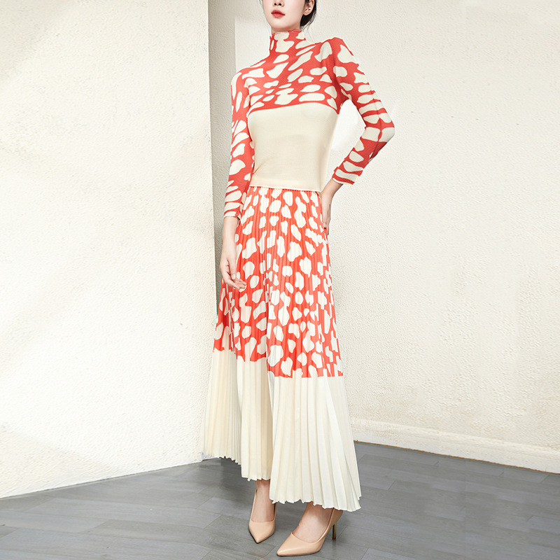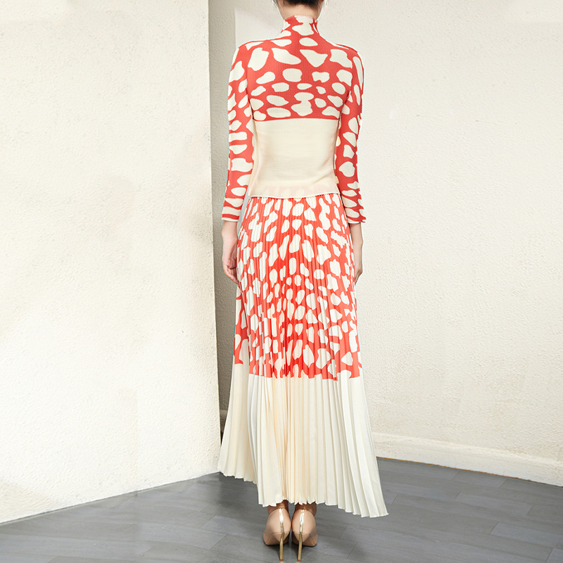 | nameOriginal | Miyake Pleated Printed Set Women's 2023 New Spring and Autumn Stylish Age-reducing Stretch Top Half Skirt Fashionable Two-piece Set |
