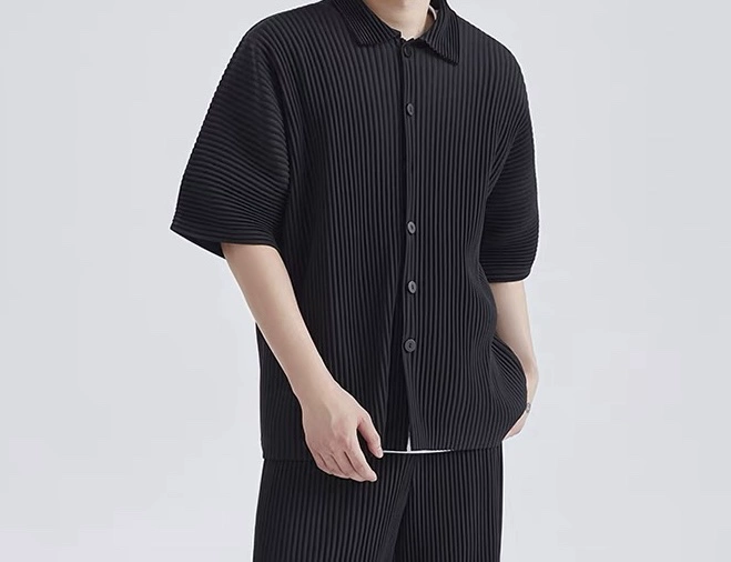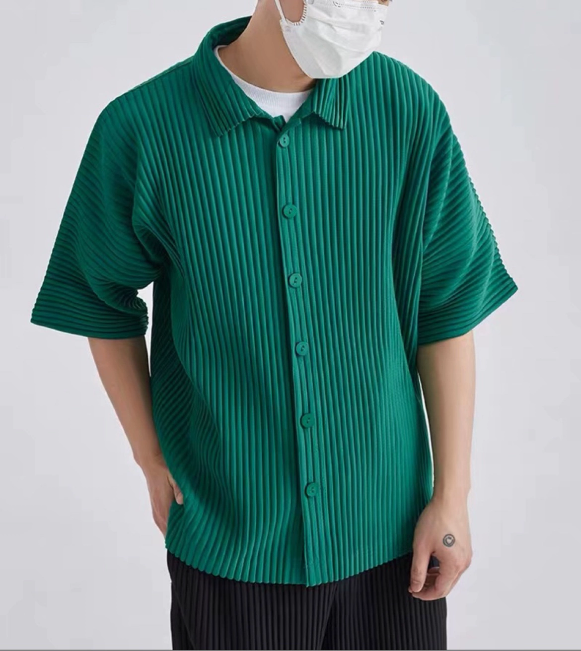 | nameOriginal | Miyake pleated shirt men's top short-sleeved spring and summer thin loose casual jacket solid color youth JJ122 |