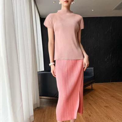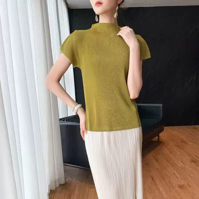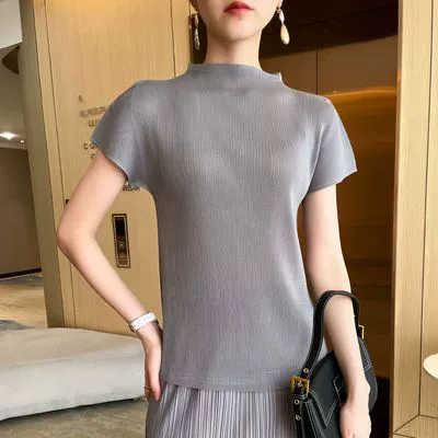| nameOriginal | Miyake pleated temperament solid color T-shirt short-sleeved top |