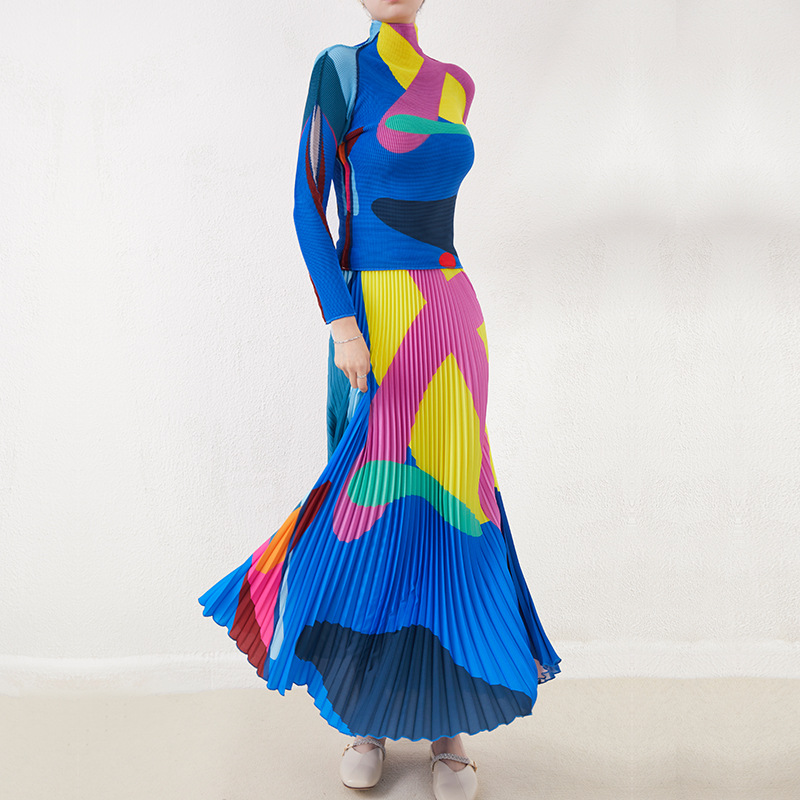 Miyake Pleated Top Fashion Dress Women’s 23 Spring and Autumn New Loose Slimming All-match Age-reducing Overskirt Two-piece Set