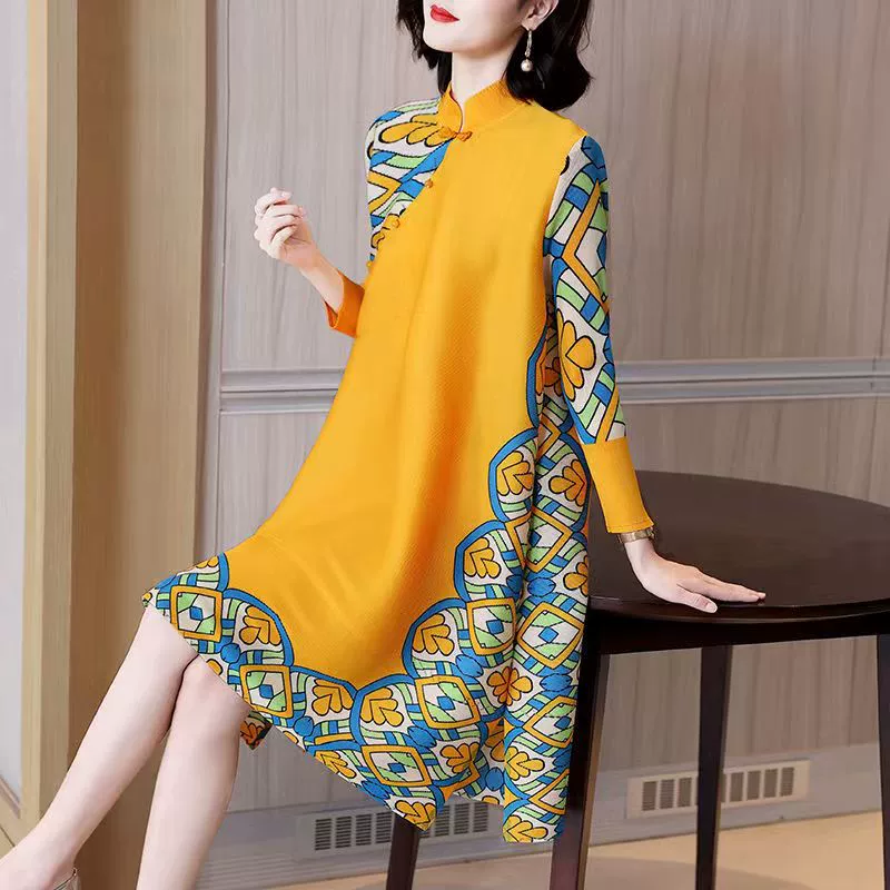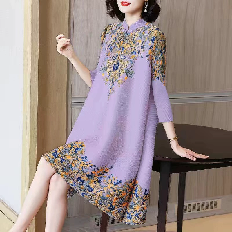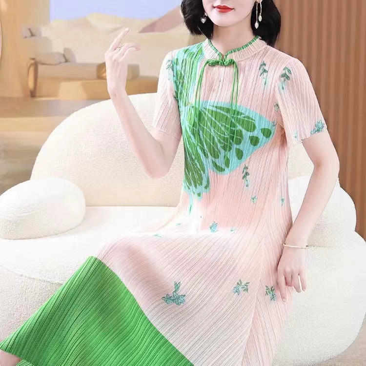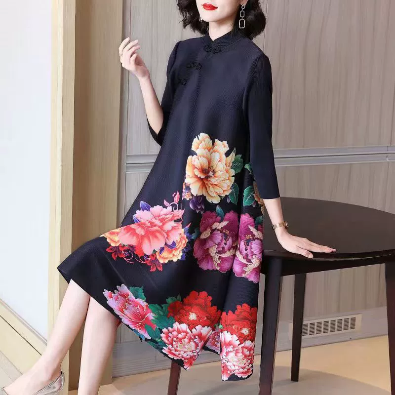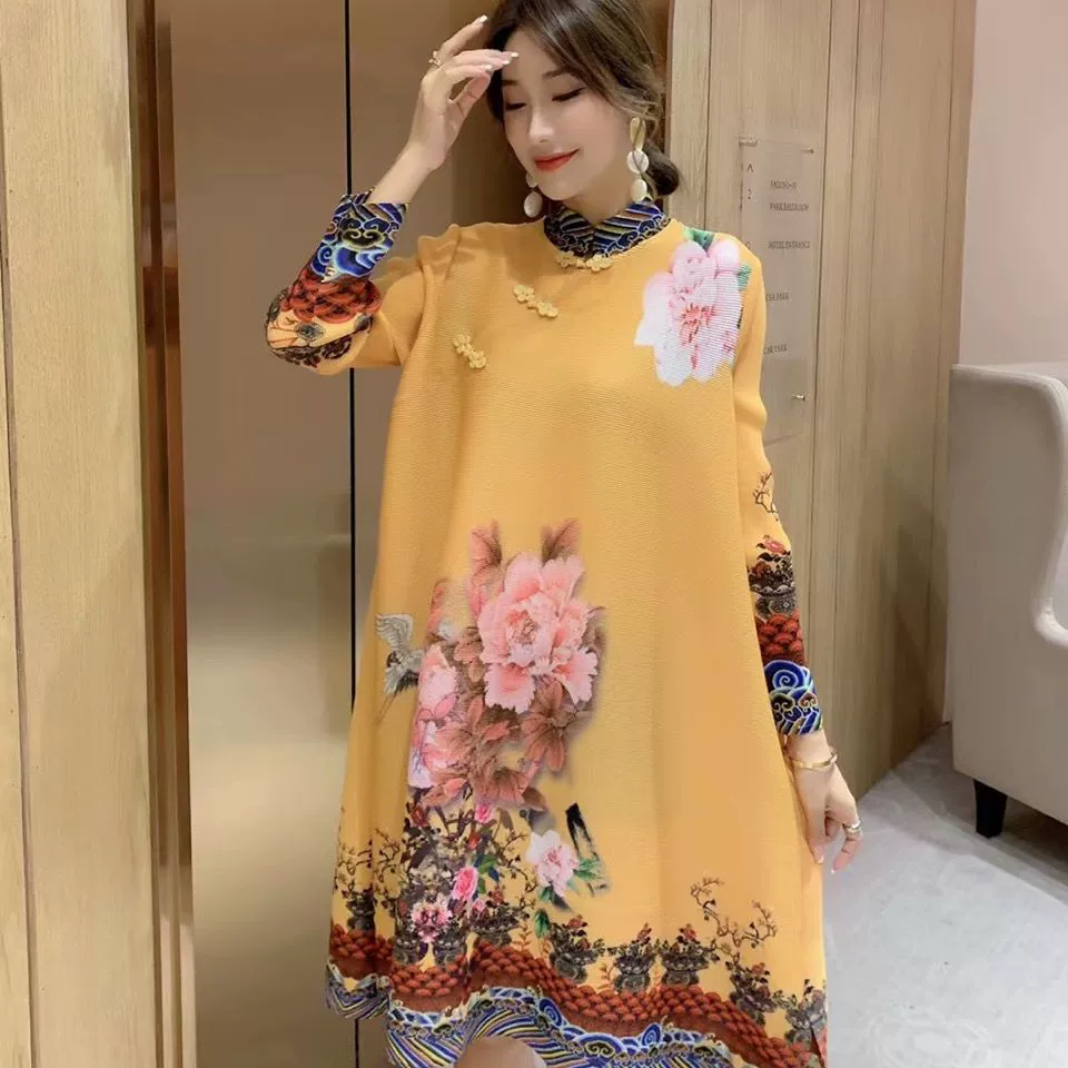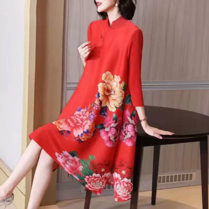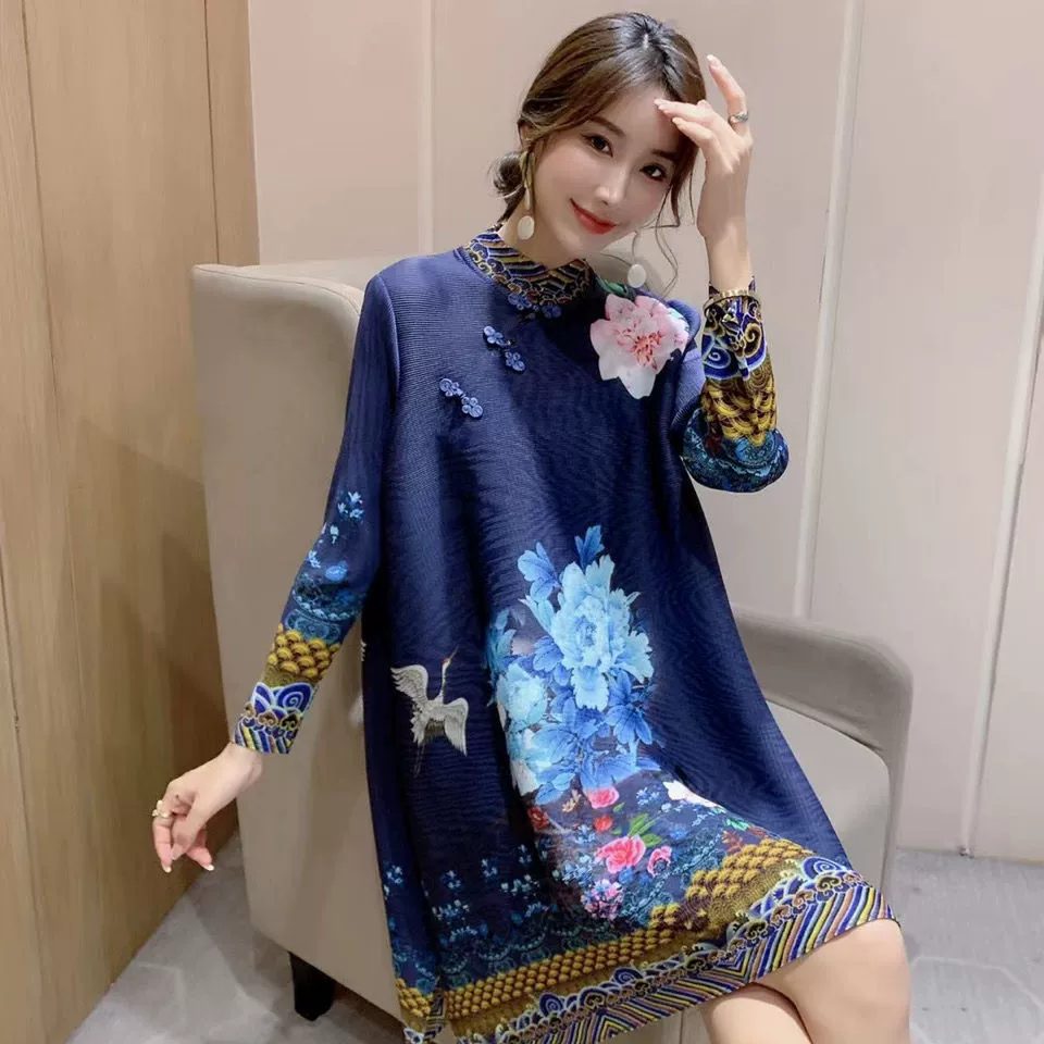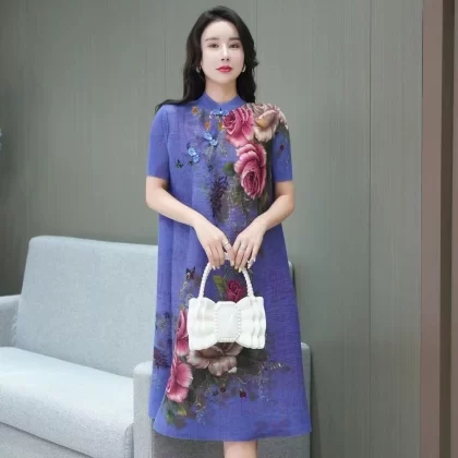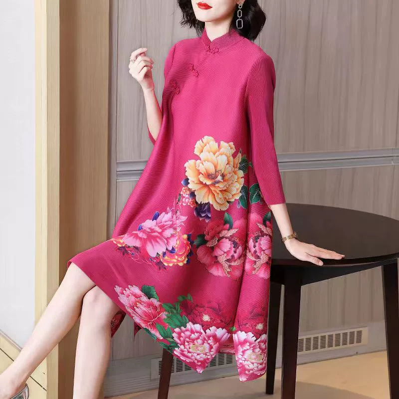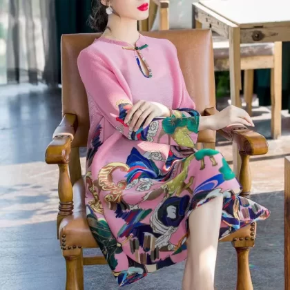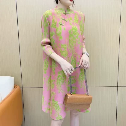 | nameOriginal | Miyake pleated vintage mom dress improved cheongsam |