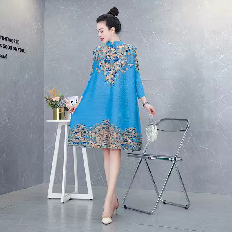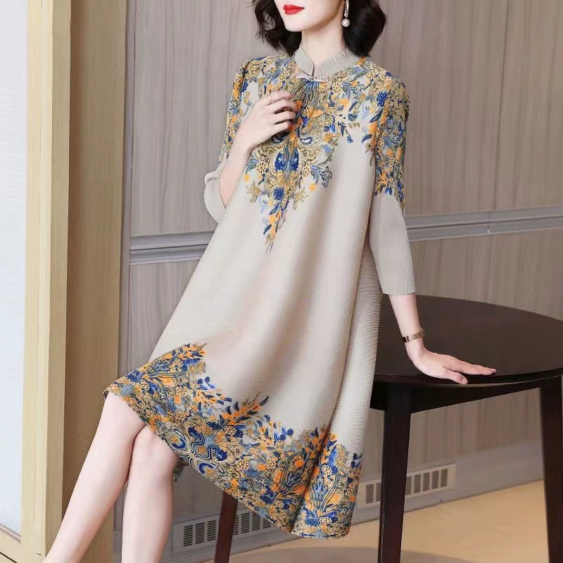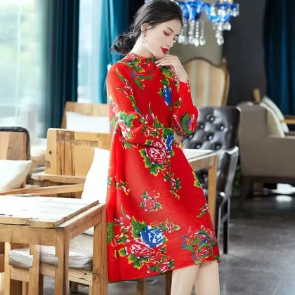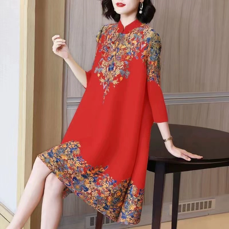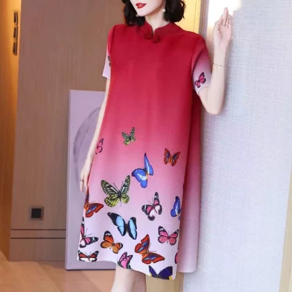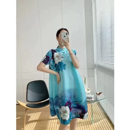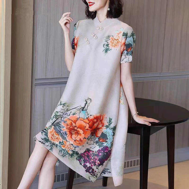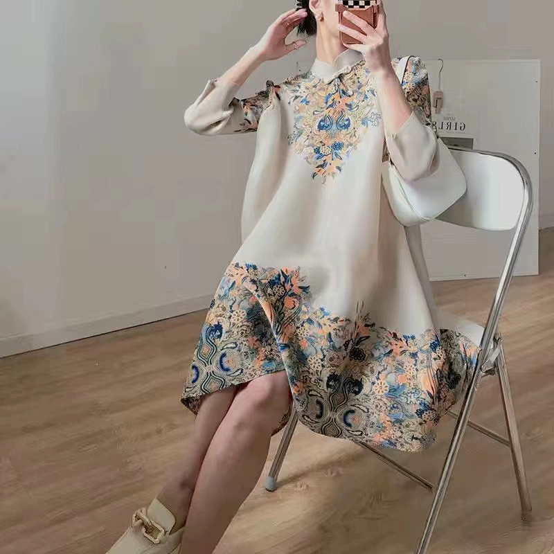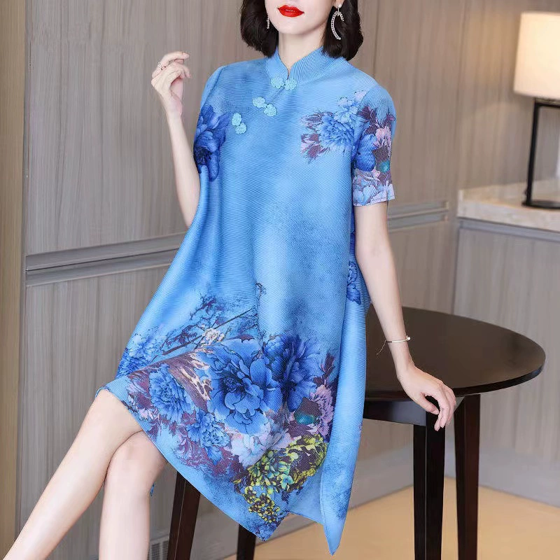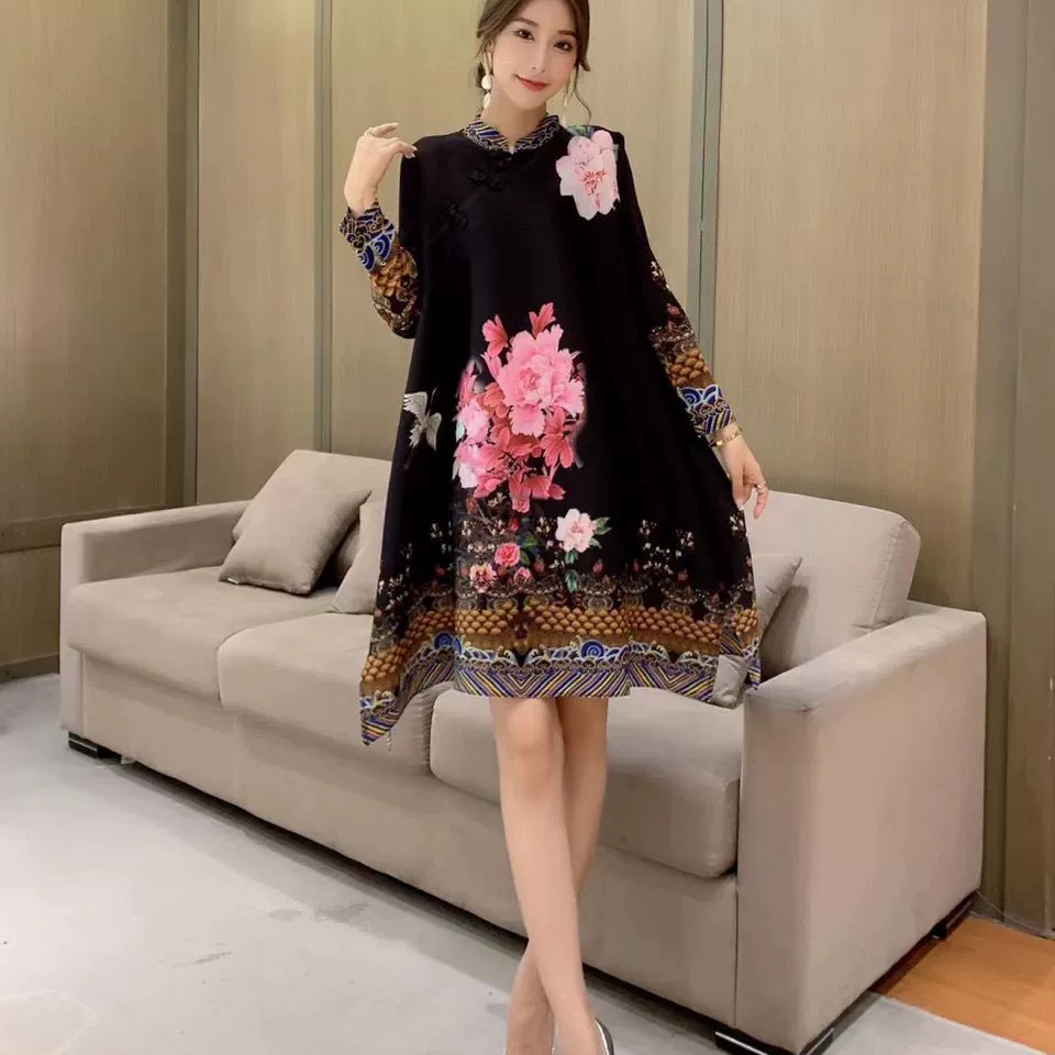 | nameOriginal | Miyake pleated vintage mom dress improved cheongsam |