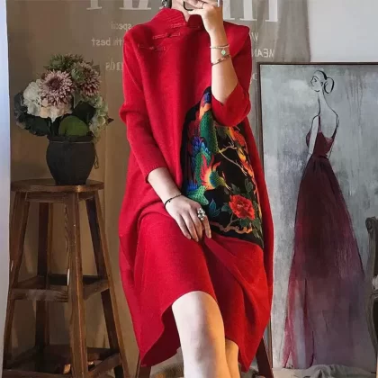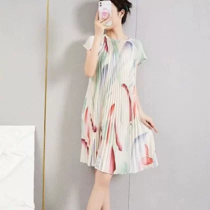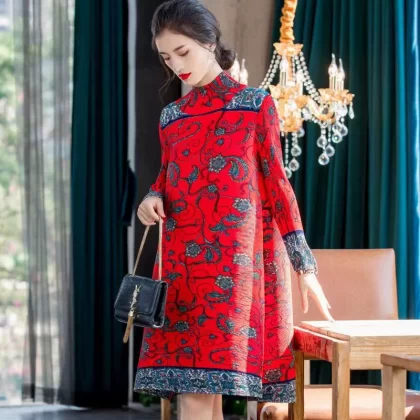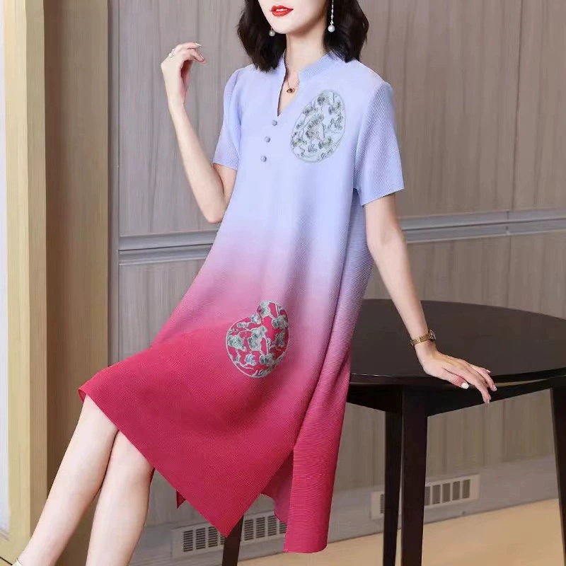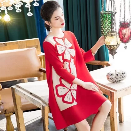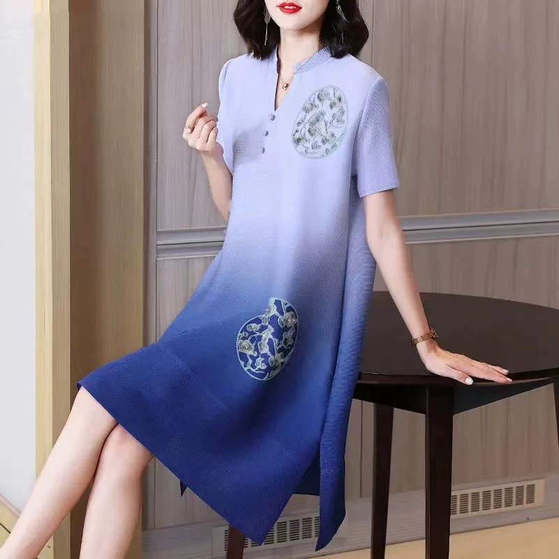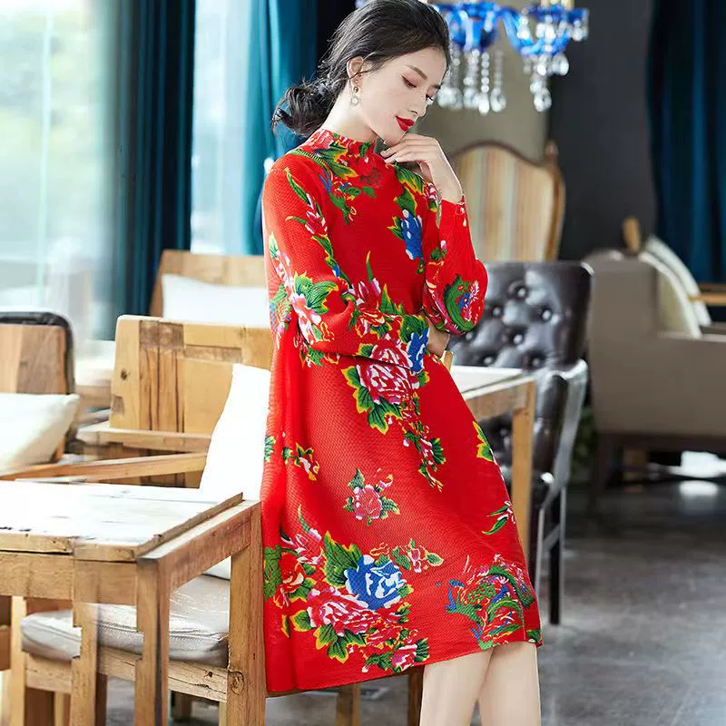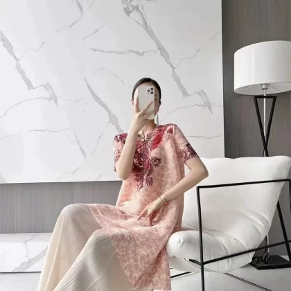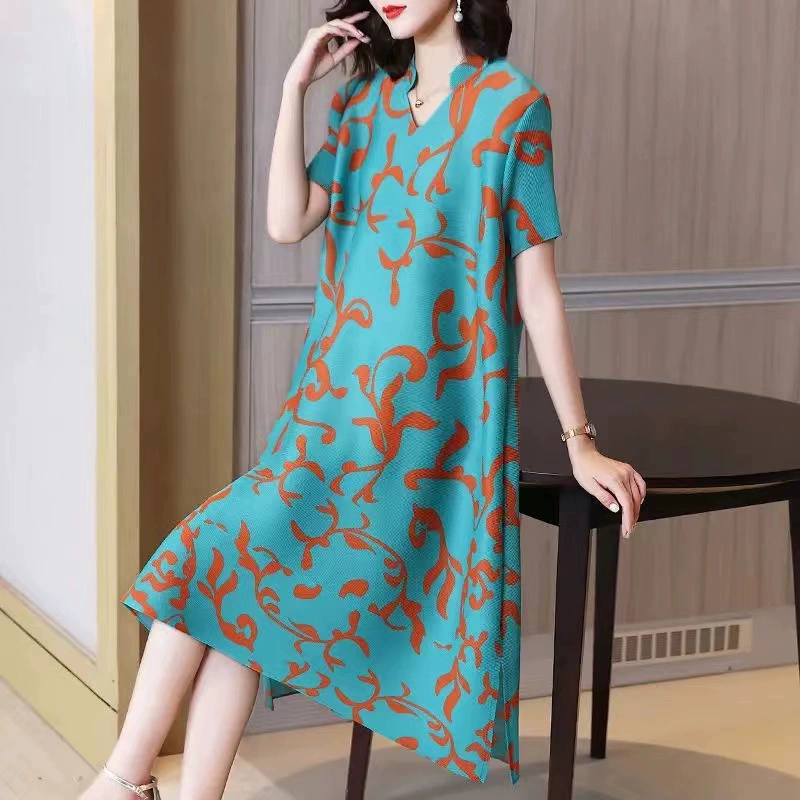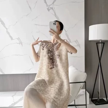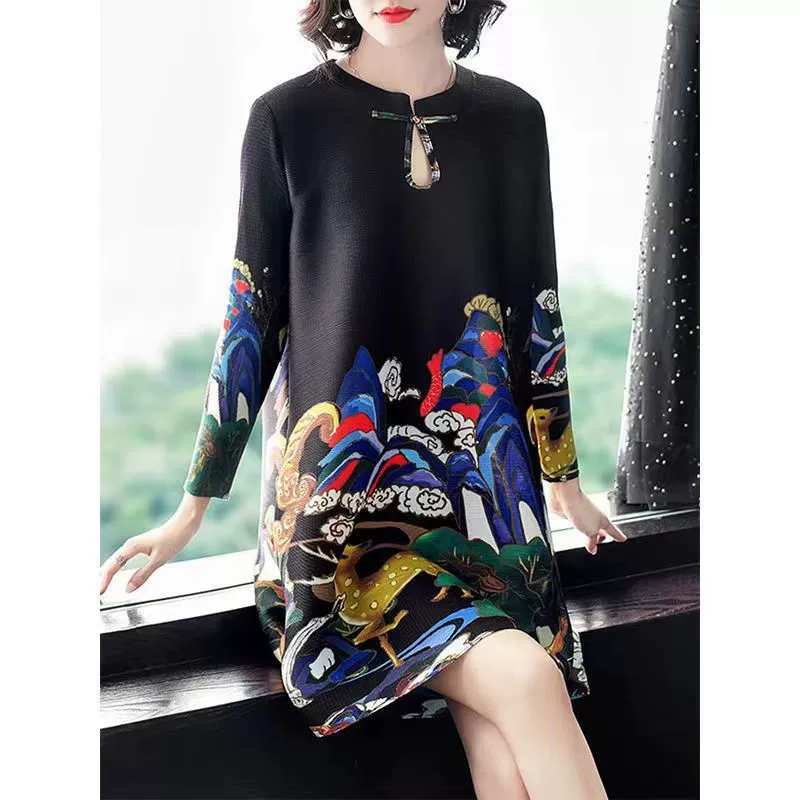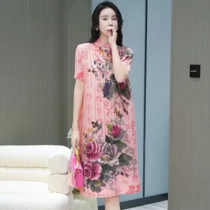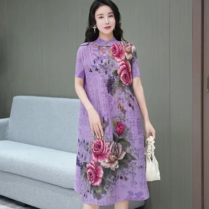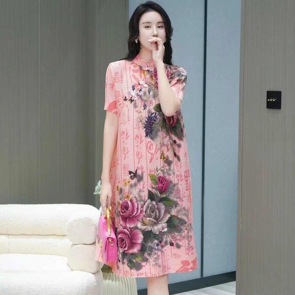 | nameOriginal | Miyake pleated vintage mom dress improved cheongsam |