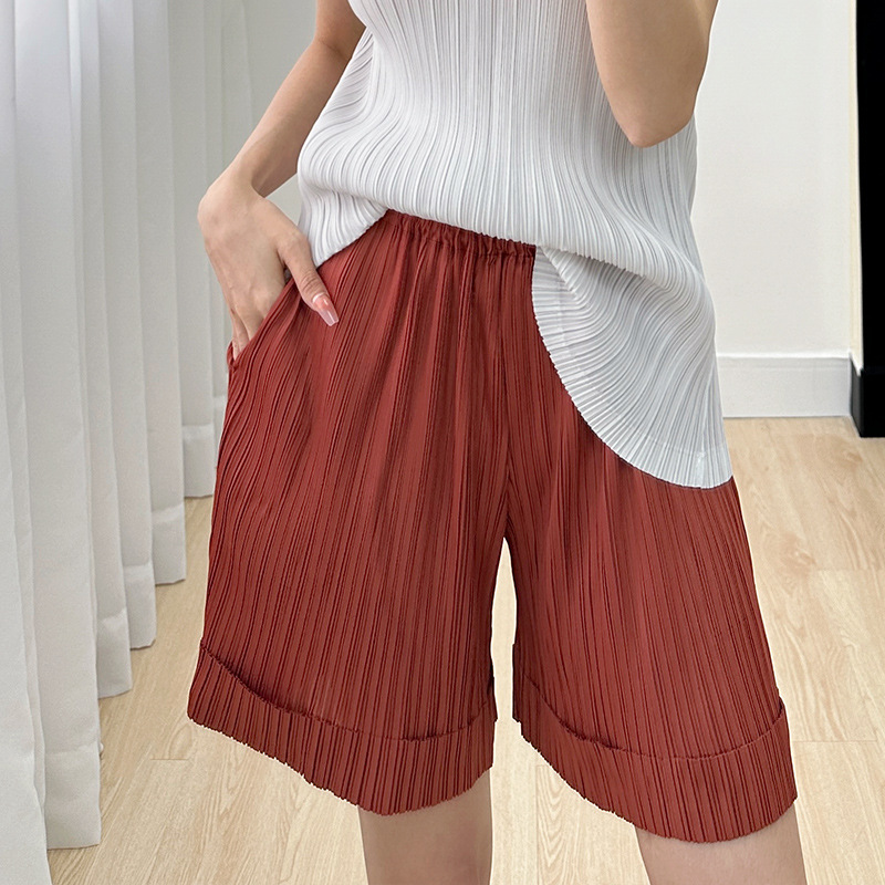 Miyake Shorts Women’s Pleated Pants 2023 Summer High Waist Slimming Five-point Straight Pants Casual Pants Loose Shorts Trendy