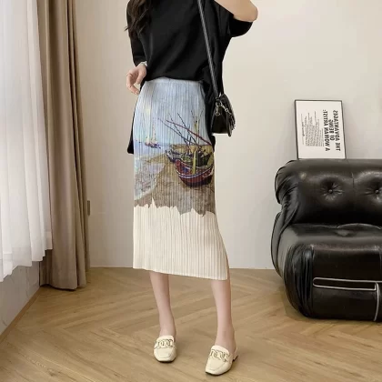 | nameOriginal | Miyake style pleated printed niche loose skirt |