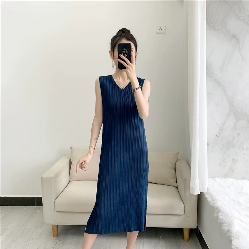 | nameOriginal | Miyake style pleated women's dress V-neck sleeveless 2024 summer new maternity pleated skirt mid-length clothes |