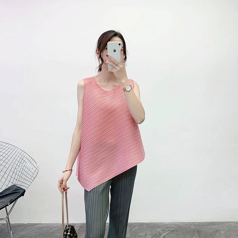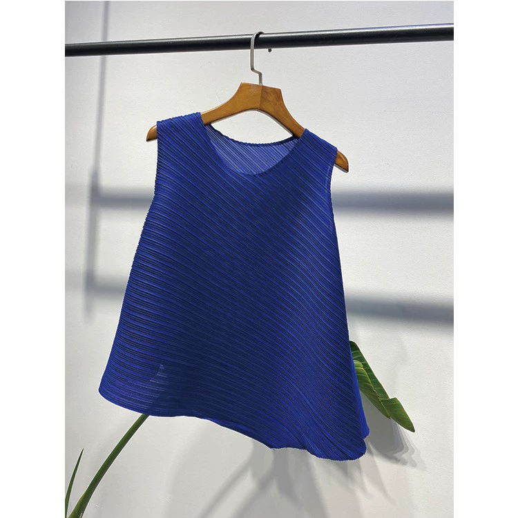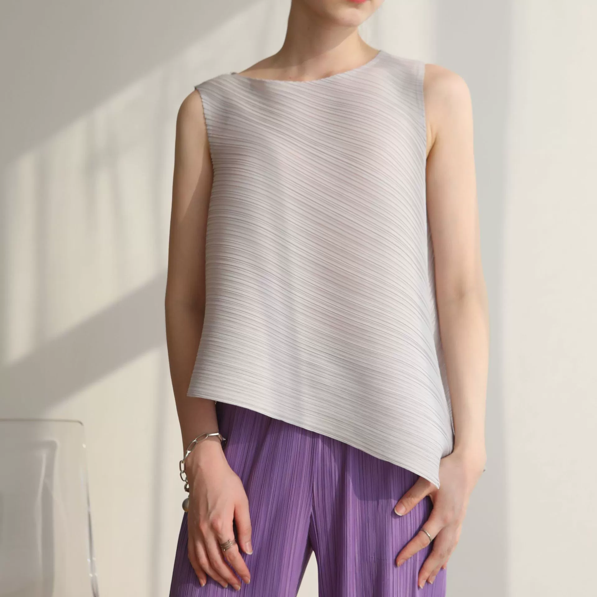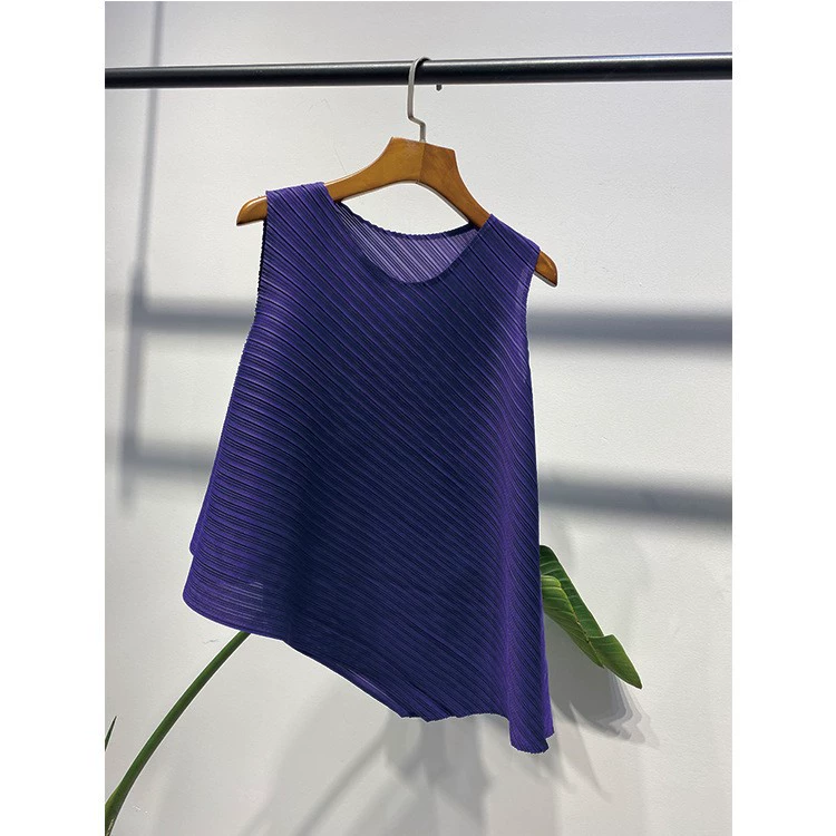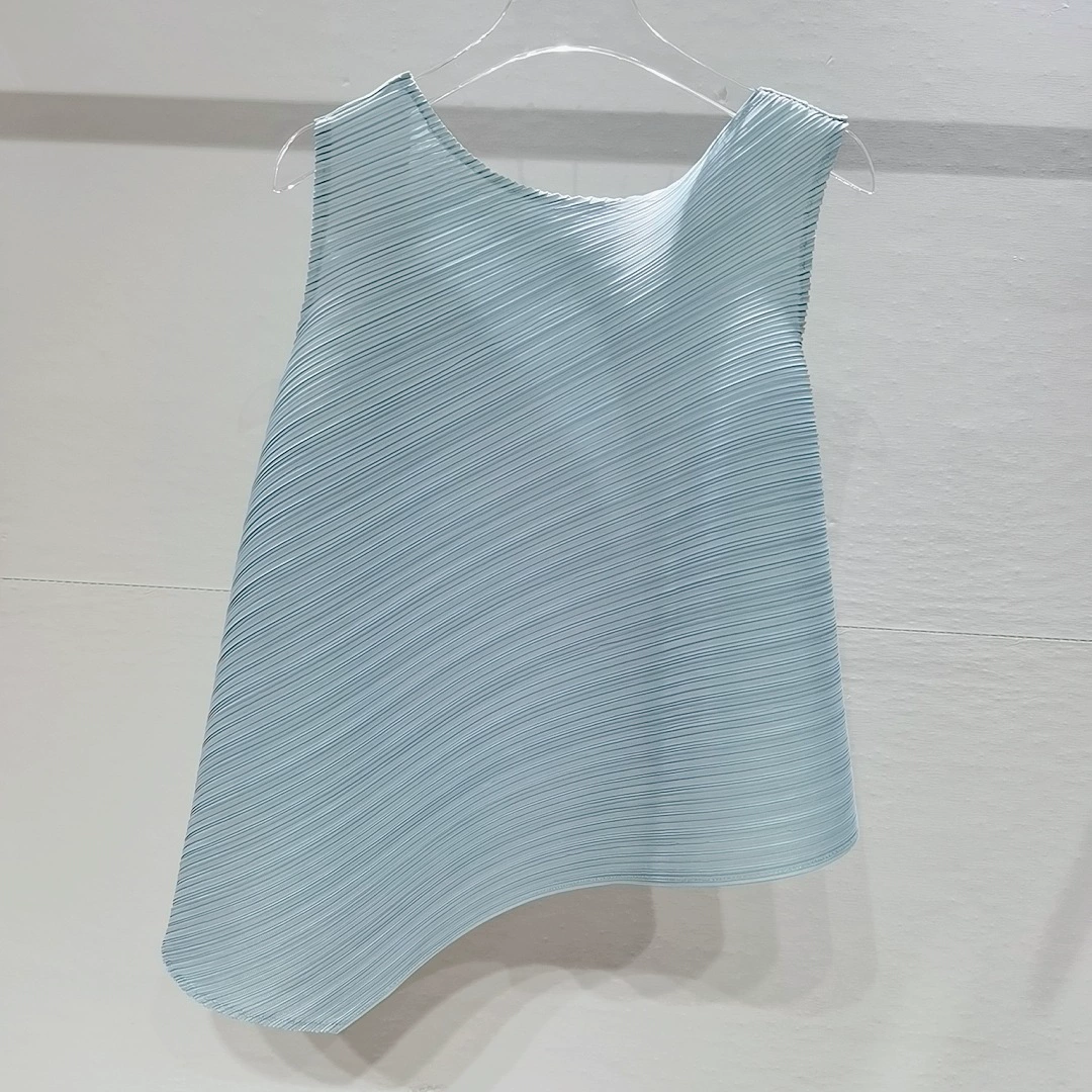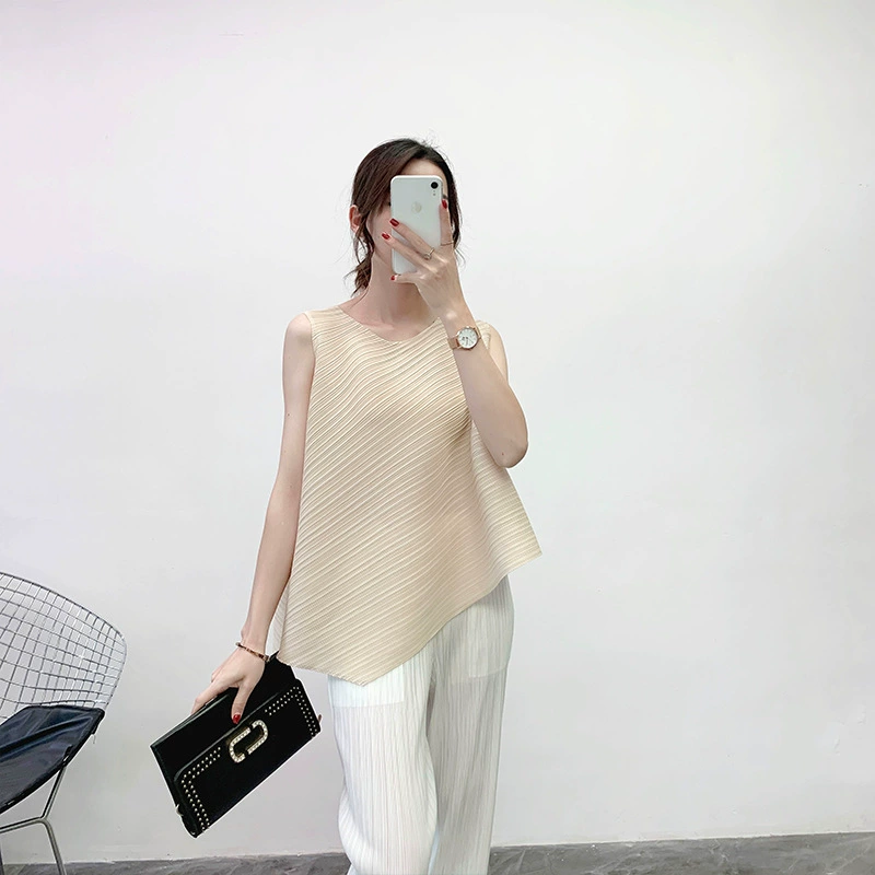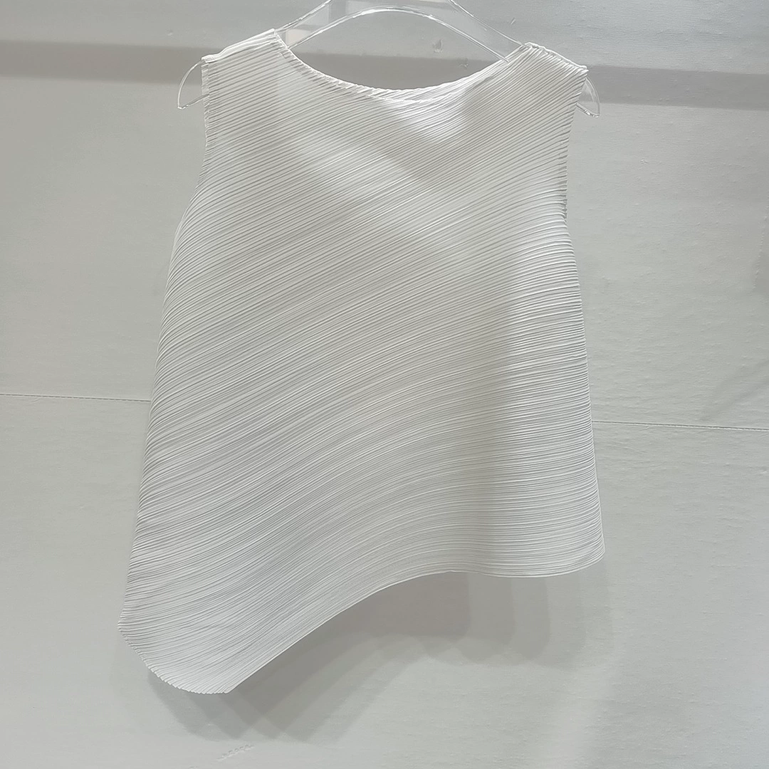 | nameOriginal | Miyake top Irregular sleeveless spring and summer style unique design niche pleated round neck slim pleated t-shirt for women |