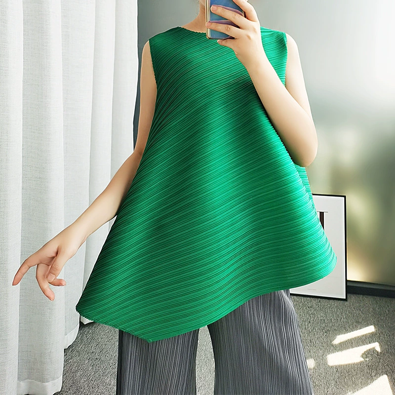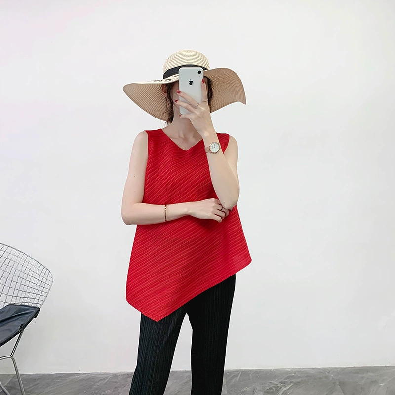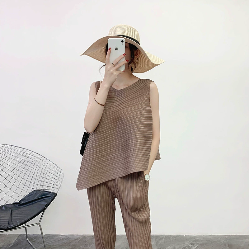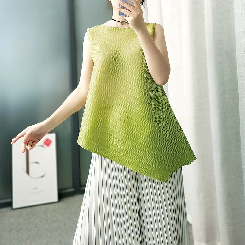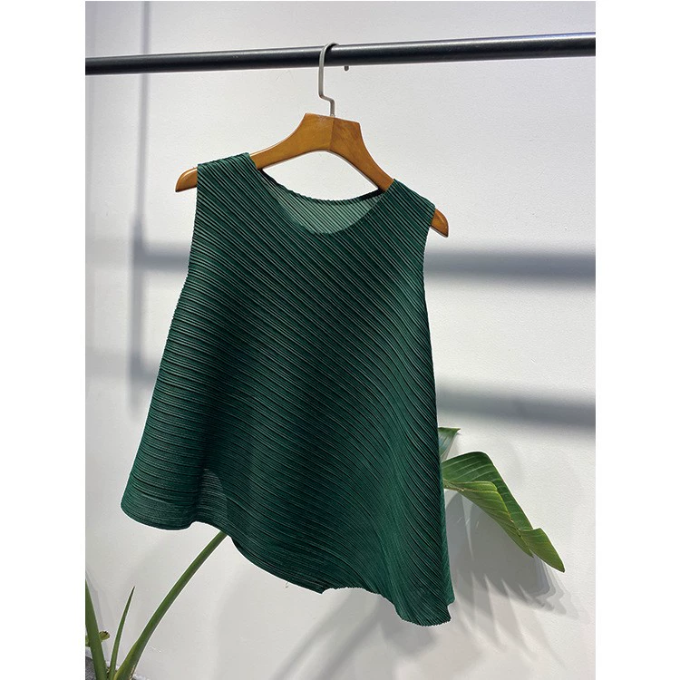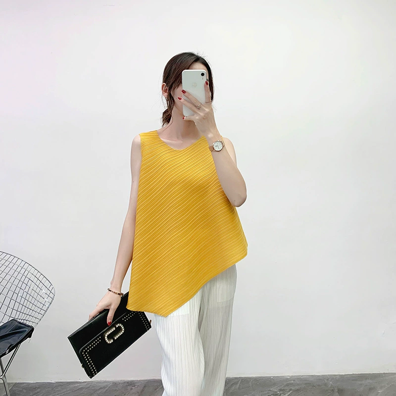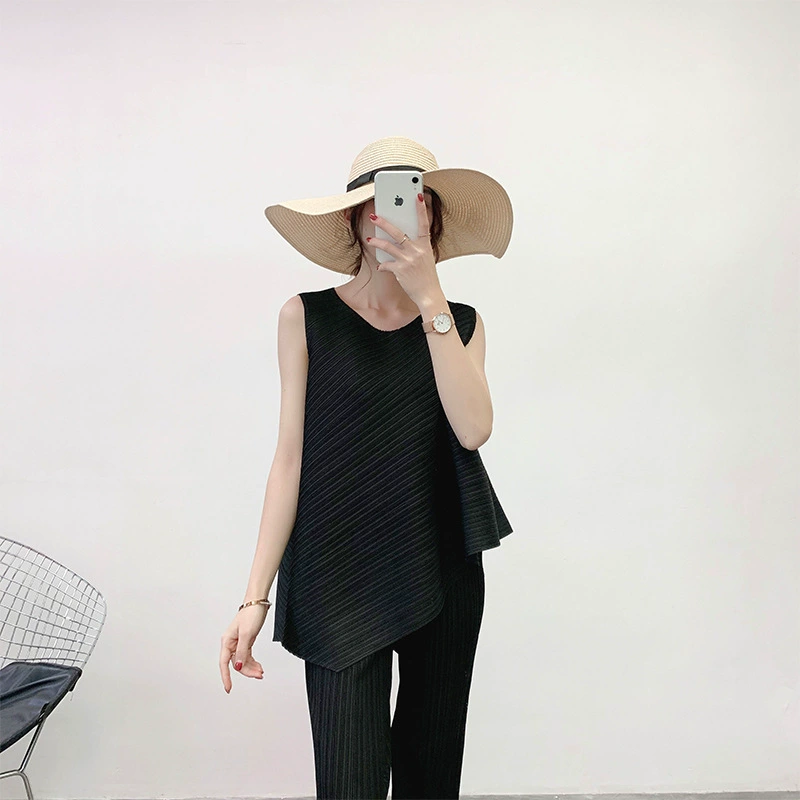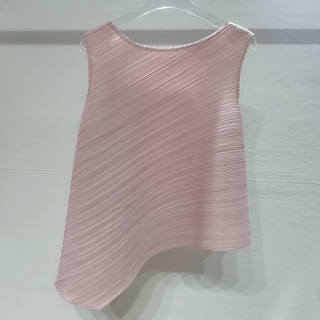 | nameOriginal | Miyake top Irregular sleeveless spring and summer style unique design niche pleated round neck slim pleated t-shirt for women |