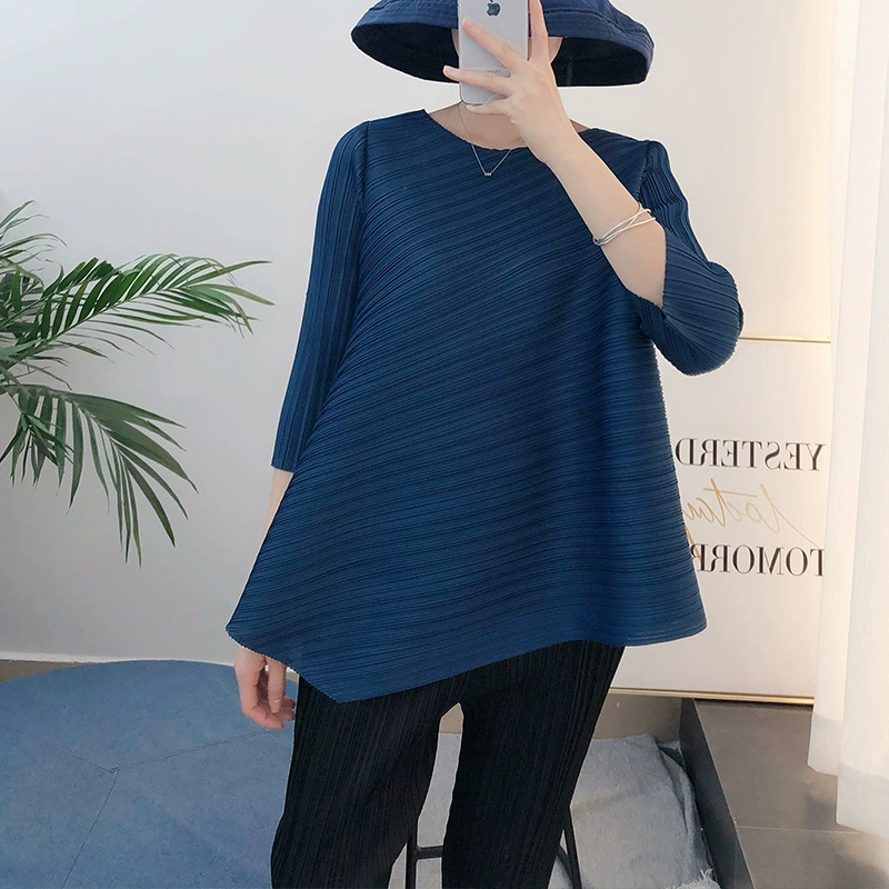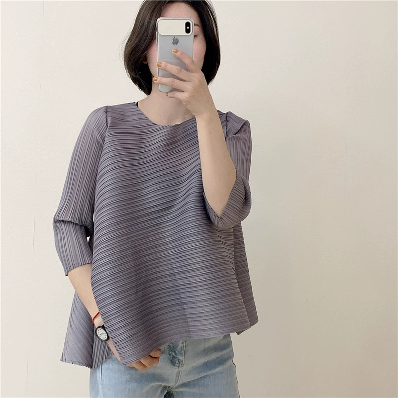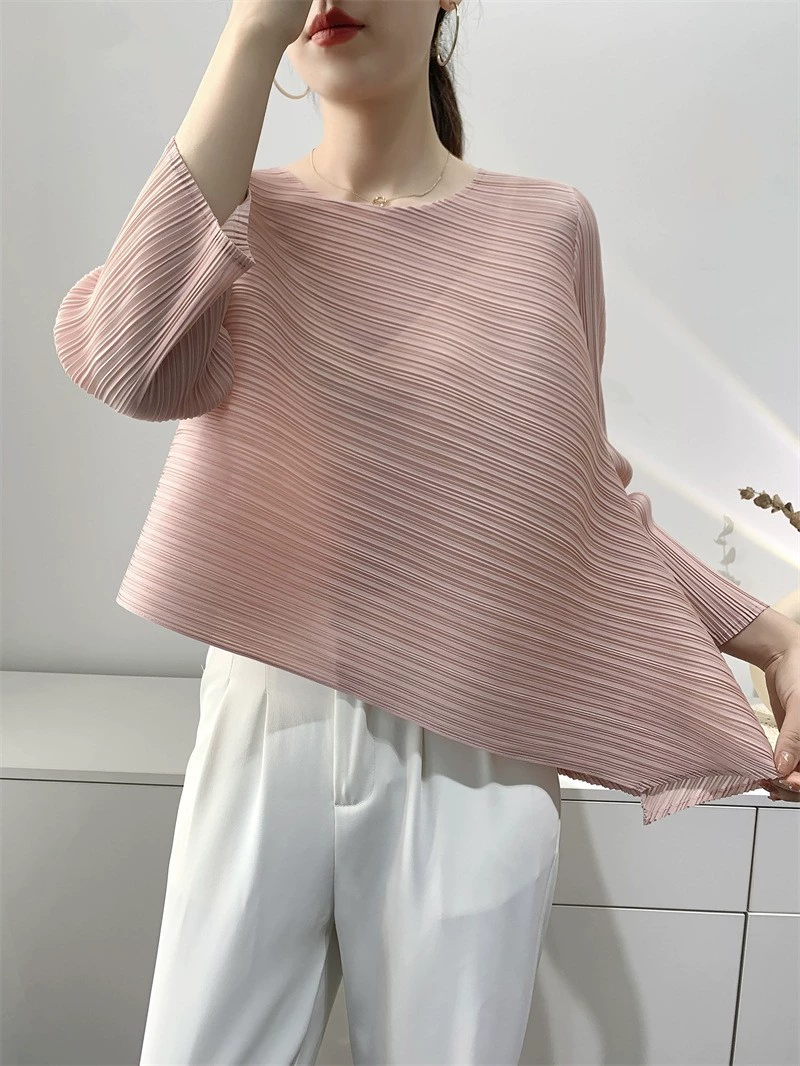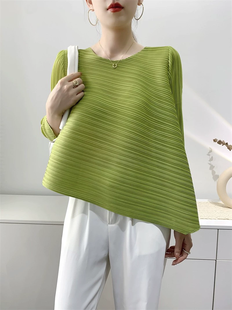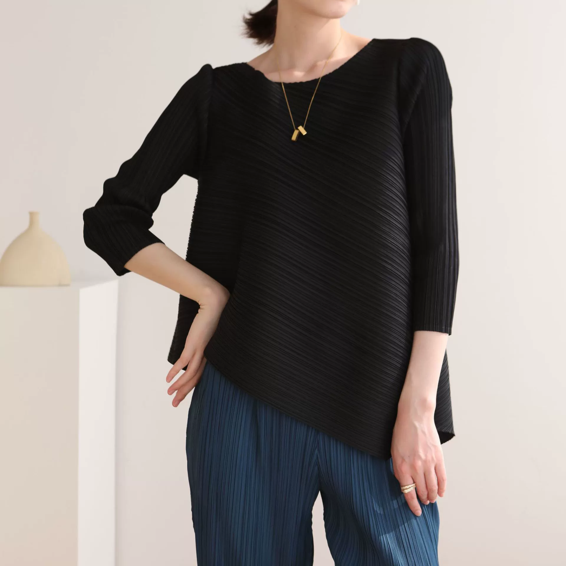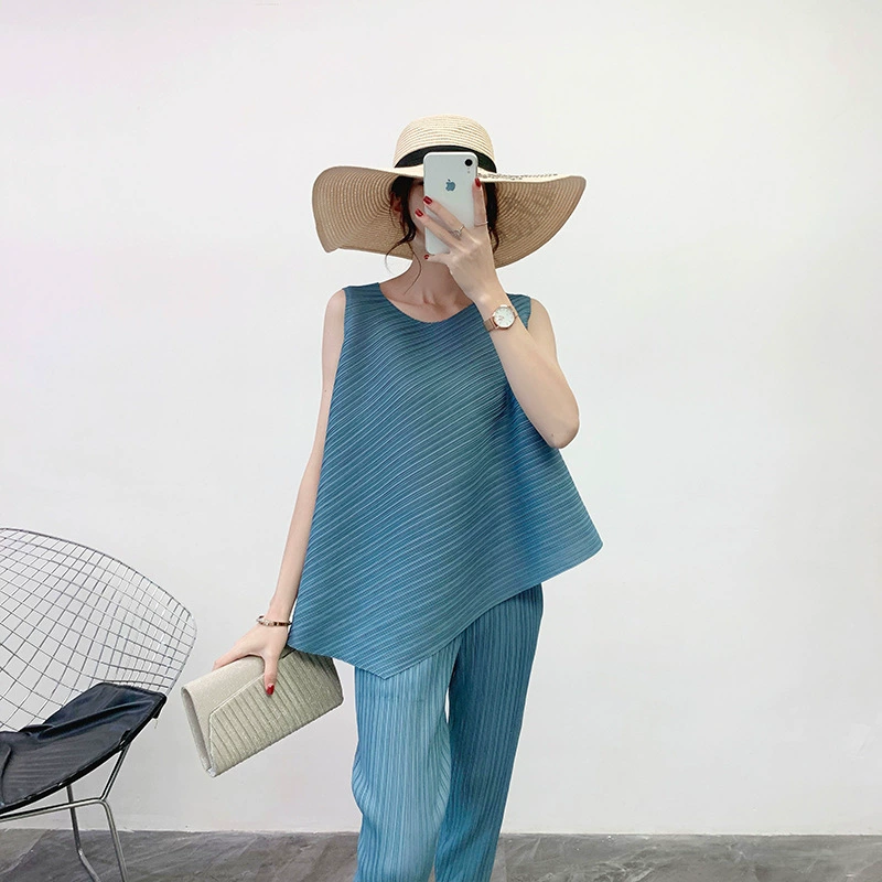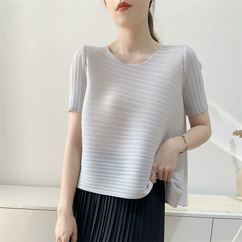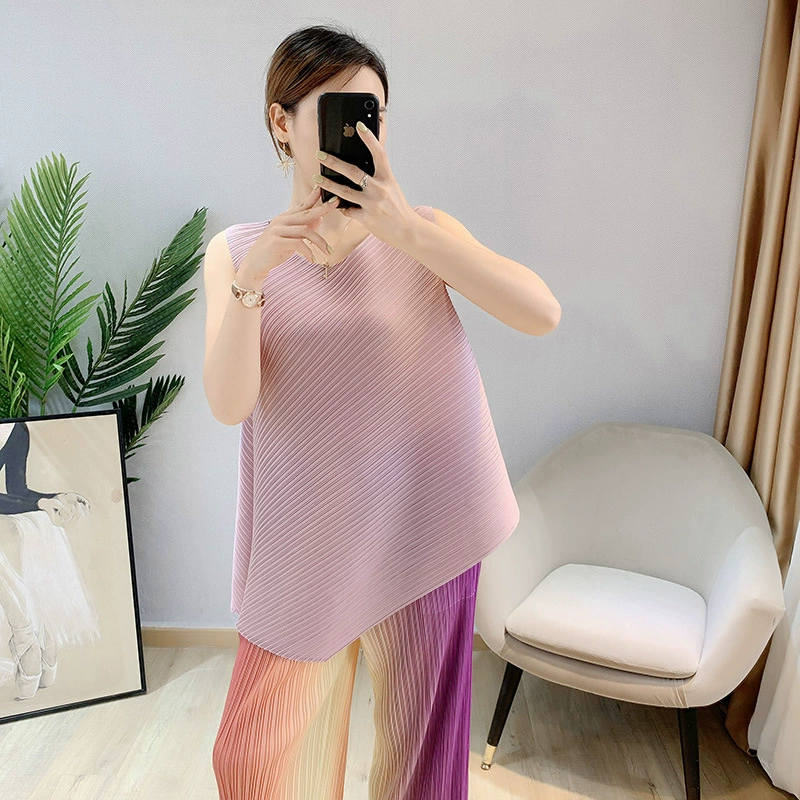 | nameOriginal | Miyake top Irregular sleeveless spring and summer style unique design niche pleated round neck slim pleated t-shirt for women |
