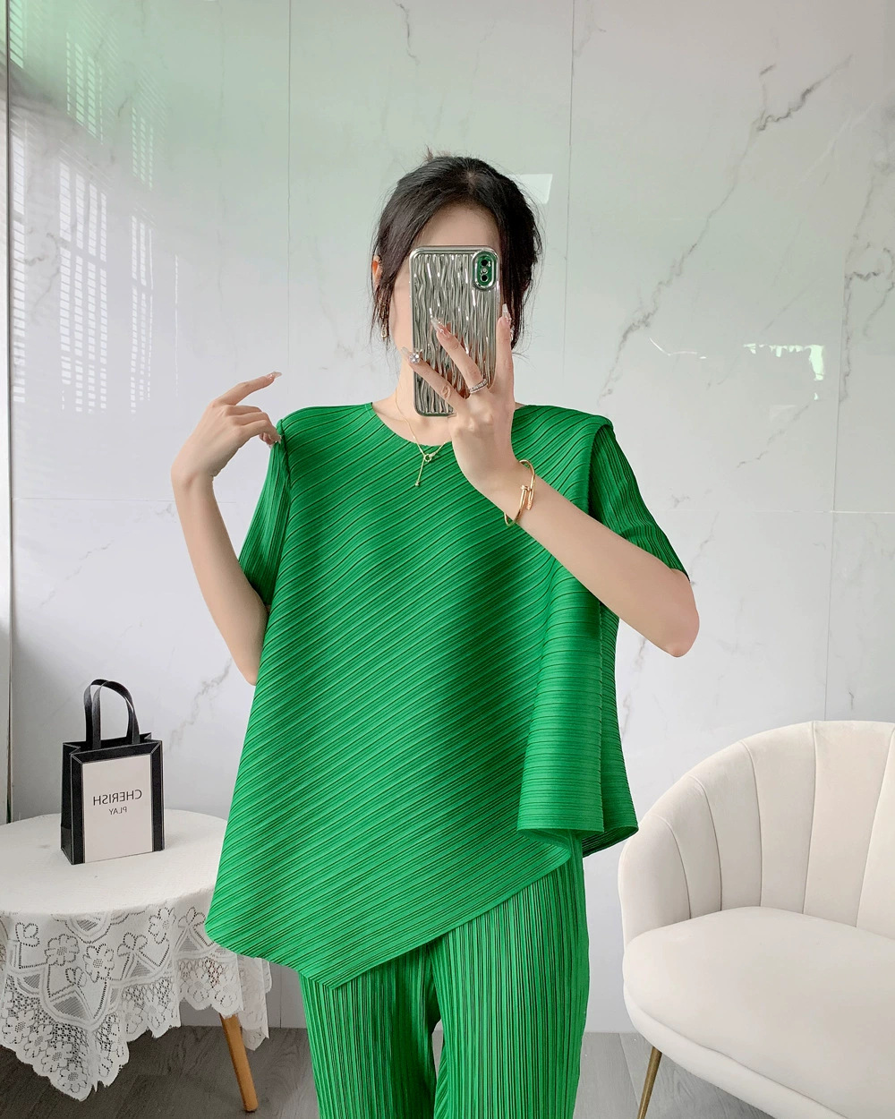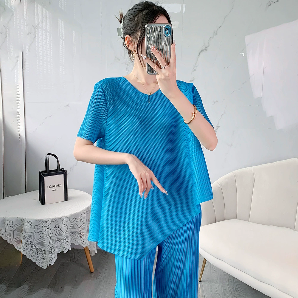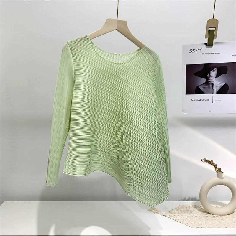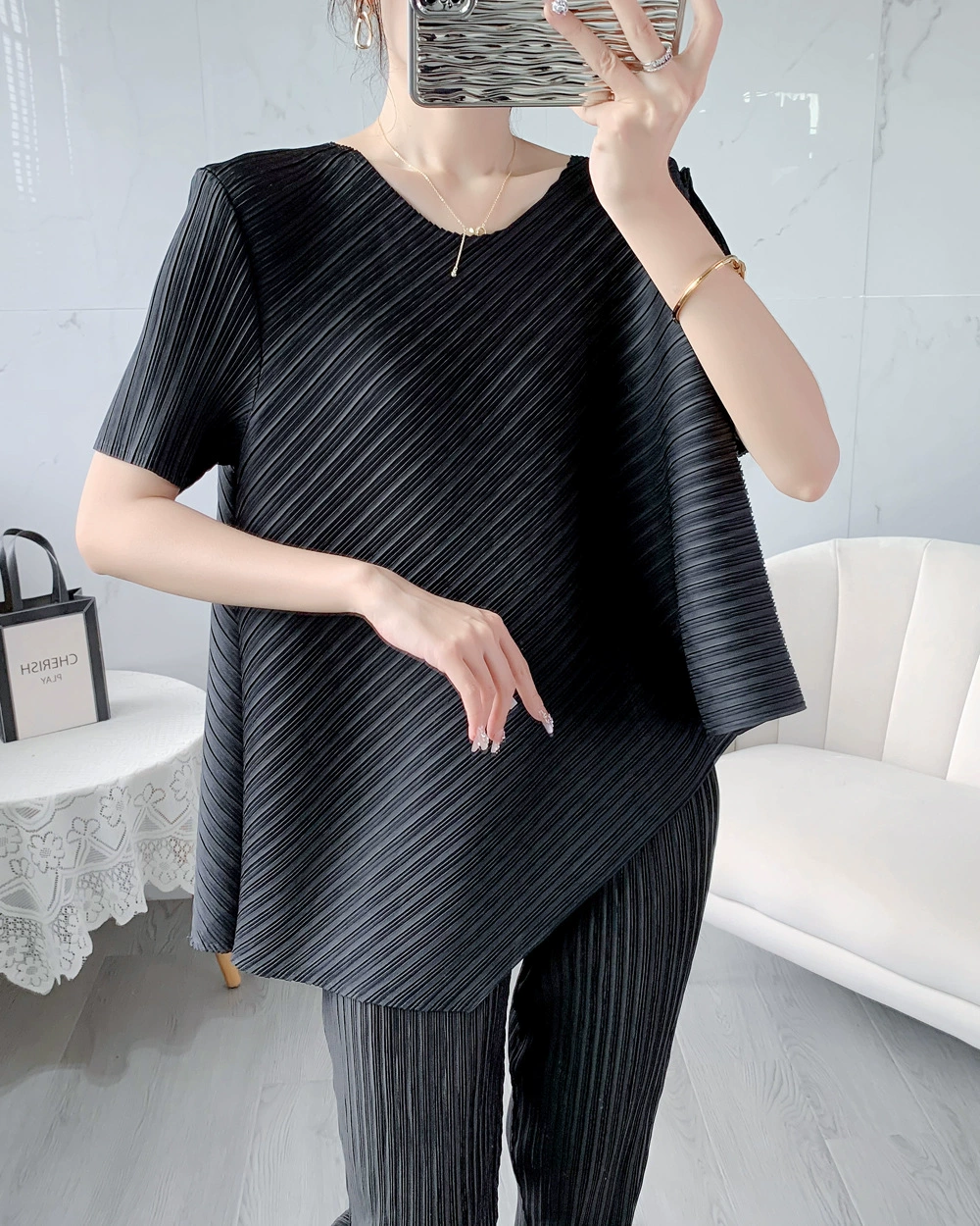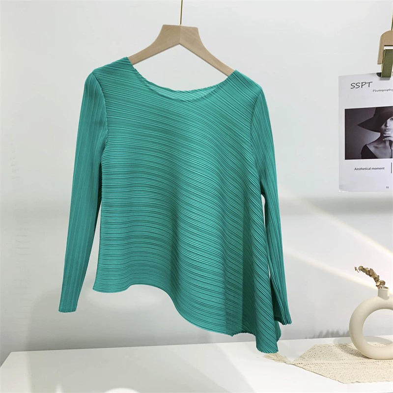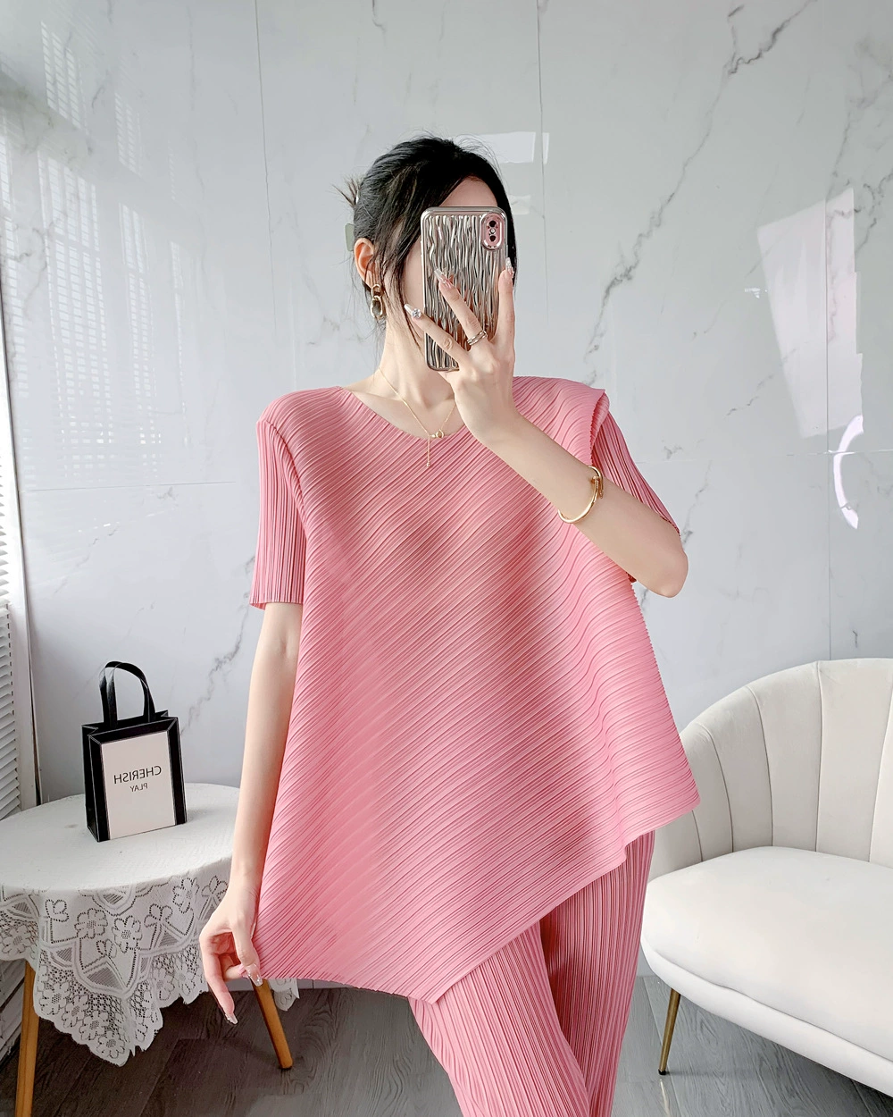 | nameOriginal | Miyake top Irregular sleeveless spring and summer style unique design niche pleated round neck slim pleated t-shirt for women |