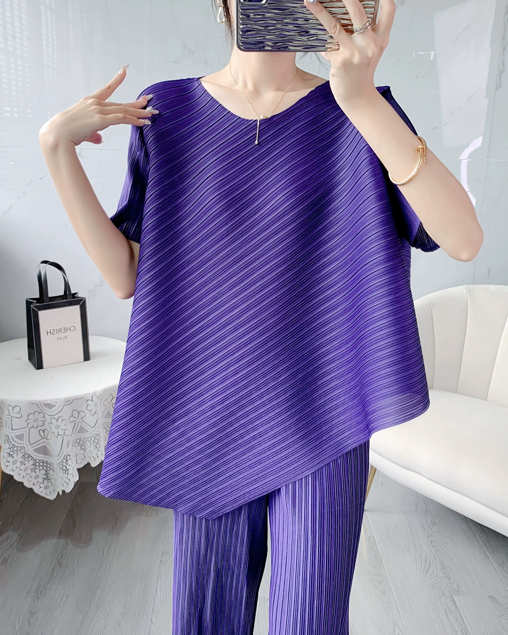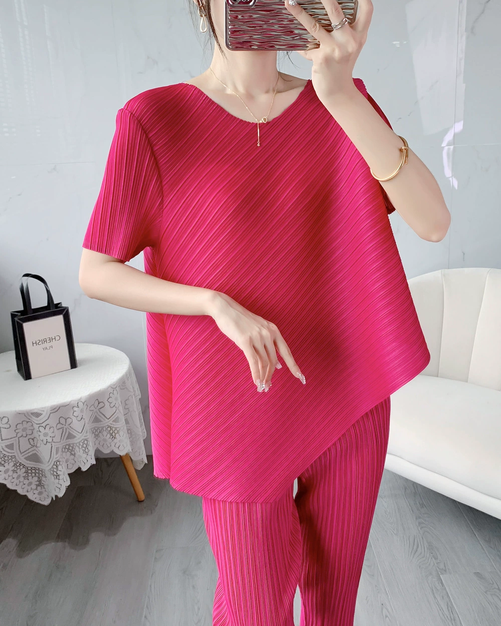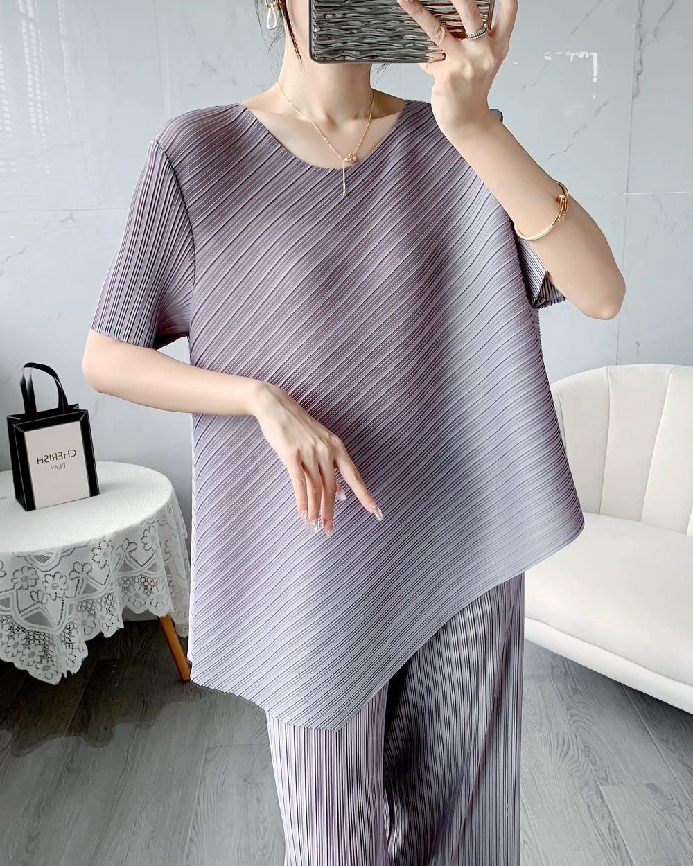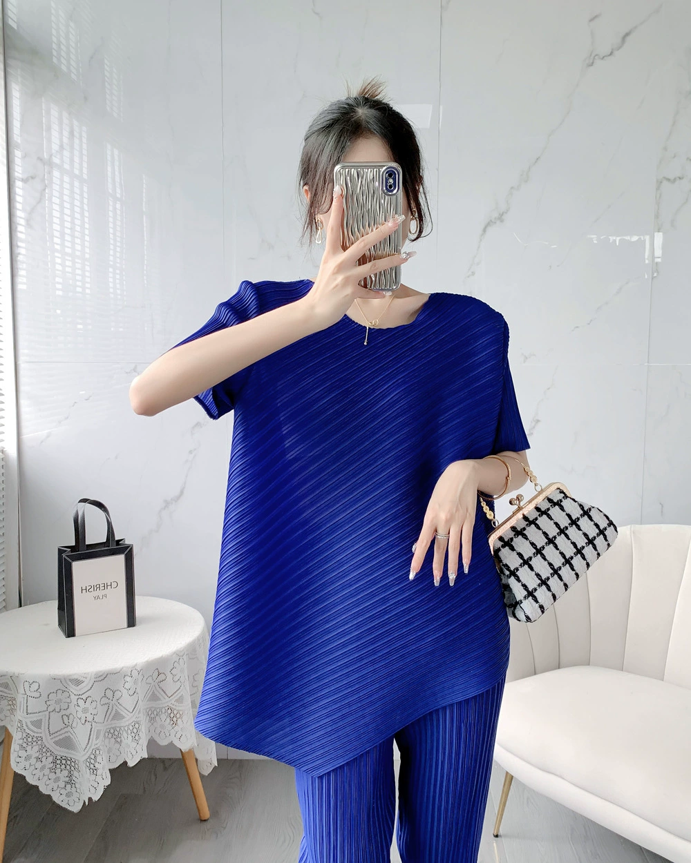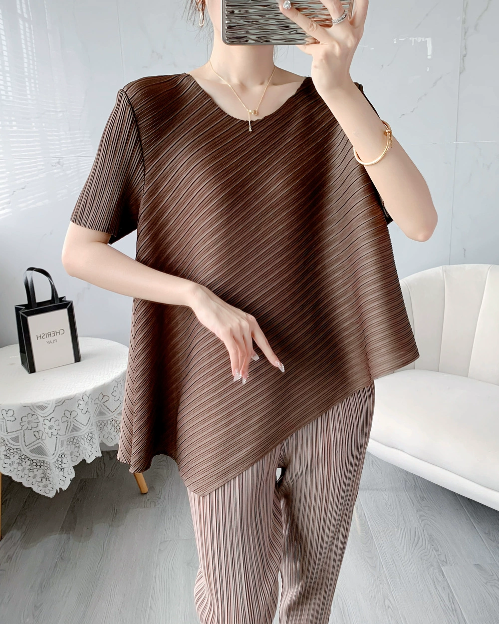 | nameOriginal | Miyake top Irregular sleeveless spring and summer style unique design niche pleated round neck slim pleated t-shirt for women |