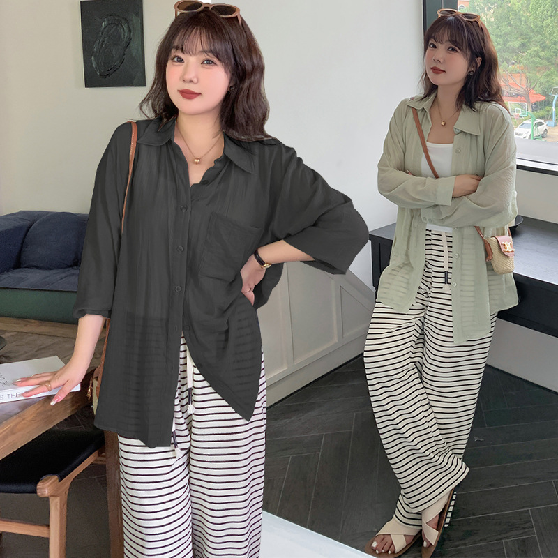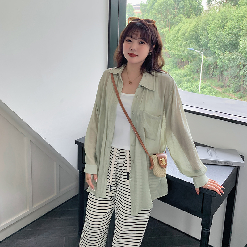 | nameOriginal | MJ201 Xuanchen chubby plus size micro-transparent long sleeve anti-screening shirt coat summer new long sleeve lightweight air conditioning shirt |