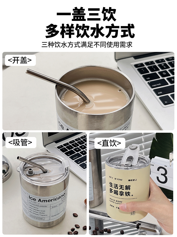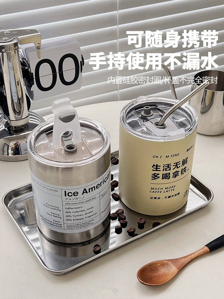 | nameOriginal | MJ43 coffee cup office stainless steel cup portable straw cup ice American outdoor insulated water cup ice |